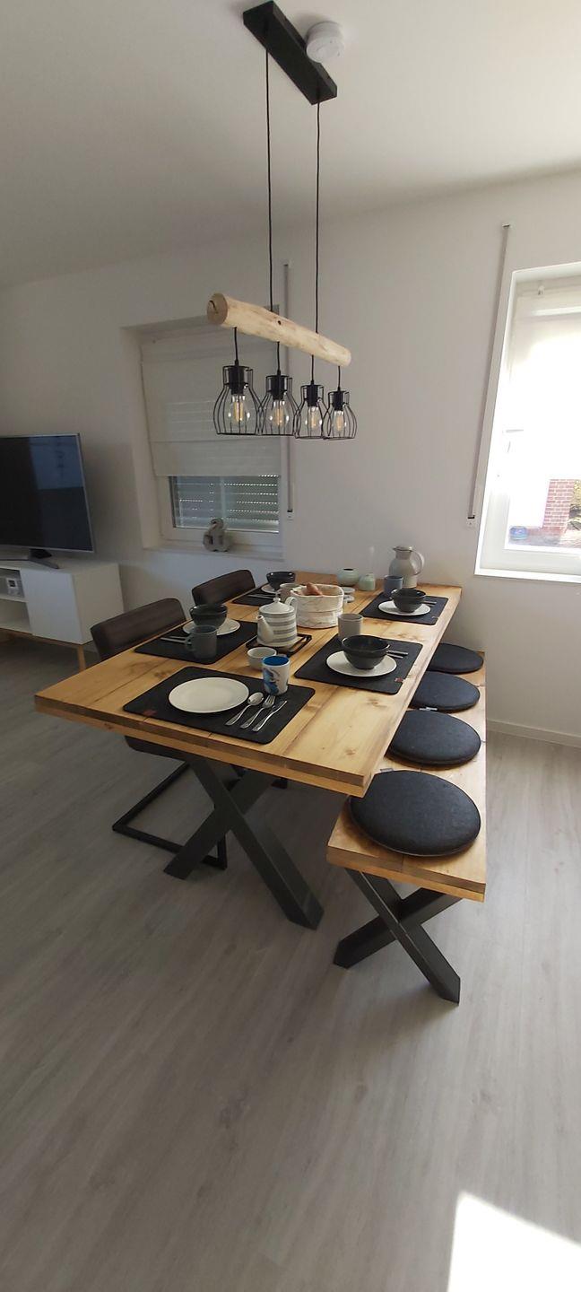 Am rustikalen großen Esstisch finden 4 Personen plus Kleinkind reichlich Platz, dieser lädt auch zu gemütlichen Spieleabenden ein, ein paar Gesellschaftsspiele sind vorhanden.
