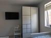Links vom Wohnzimmer kommen Sie in das zweite Schlafzimmer mit Doppelbett, offenem Schrank und einem dritten Fernseher.
