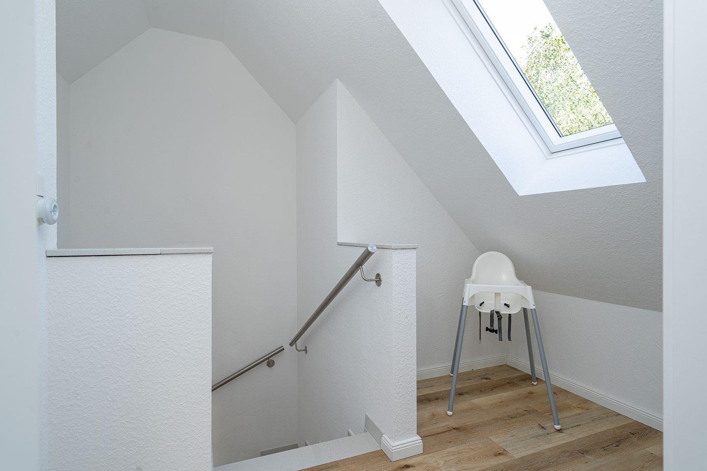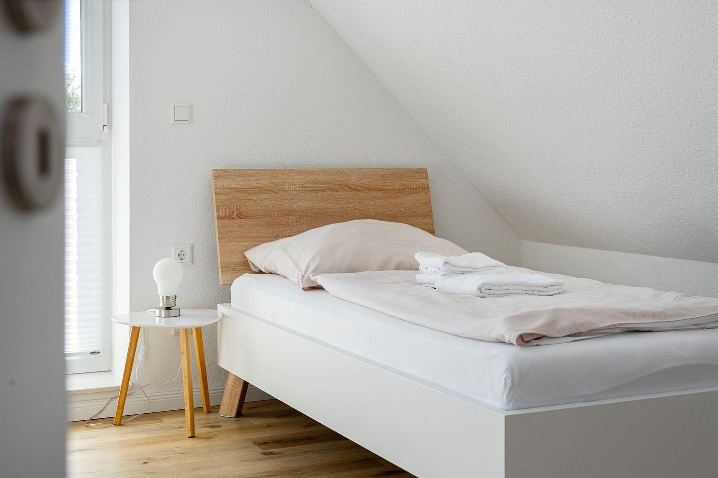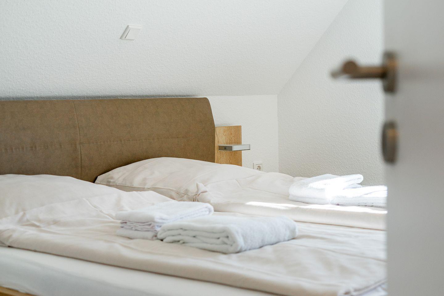 Im ausgebauten Dachgeschoss befindet sich hinter einer abschließbaren Tür das zweite Schlafzimmer mit zwei Einzelbetten.