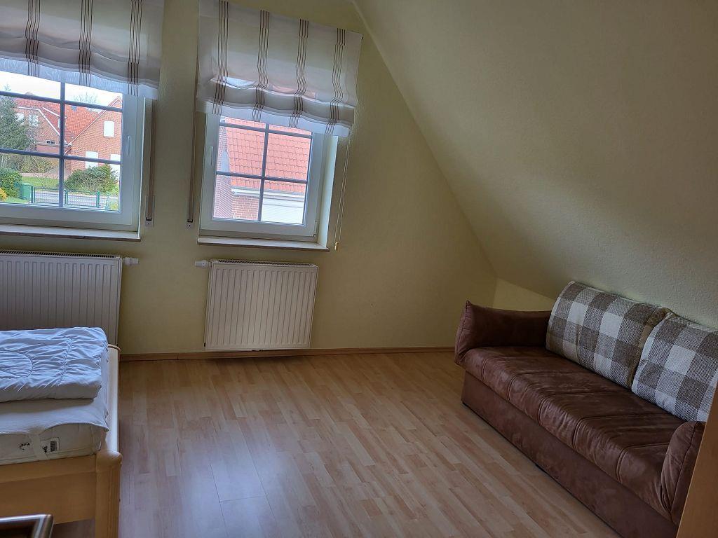 Dieses wunderschöne Ferienhaus bietet auf einer Wohnfläche von ca. 100m² Platz für 5 Personen (+ Schlafcouch). Kommen Sie herein ins Haus Janne! Ein großzügiger Flur erwartet Sie. Im Erdgeschoss befindet sich das Wohn-/Esszimmer und die Küche. Der helle Wohnbereich mit großen Fenstern mit Blick auf die Terrasse punktet mit einer gemütlicher Couch, einem Kaminofen und einem Flachbildschirm. Genießen Sie hier gemütliche Abende. In der gut ausgestattete Küche können leckere Speisen zubereitet und dann am großen Esstisch mit der gesamten Familie verspeist werden. Zusätzlich befindet sich im Erdgeschoss ein Schlafzimmer mit Doppelbett. Hier lässt es sich gut träumen. Ein Hauswirtschaftsraum mit Waschmaschine und Trockner steht zur Verfügung. Das helle Badezimmer mit Dusche/ WC rundet den unteren Bereich ab. Im Obergeschoss befinden sich ein Schlafzimmer mit Doppelbett und eines mit einem Einzelbett und einer Schlafcouch. In beiden Räumen stehen ebenfalls Flachbild-TVs. Das Bad mit Badewanne und WC komplettiert das OG. Das Haus verfügt über Außenrollos! Die Terrasse mit gemütlichen Gartenmöbeln lädt zum Sonnenbaden oder Grillen am Steingrill ein (Grillrost gegen 30,00 € Pfand). Ihr Hund ist ebenso herzlich willkommen. Der Garten ist eingezäunt. Eine Gartenhütte steht auf dem Grundstück. Kostenloses WLAN ist verfügbar. 2 Parkplätze befinden sich direkt vor dem Haus.