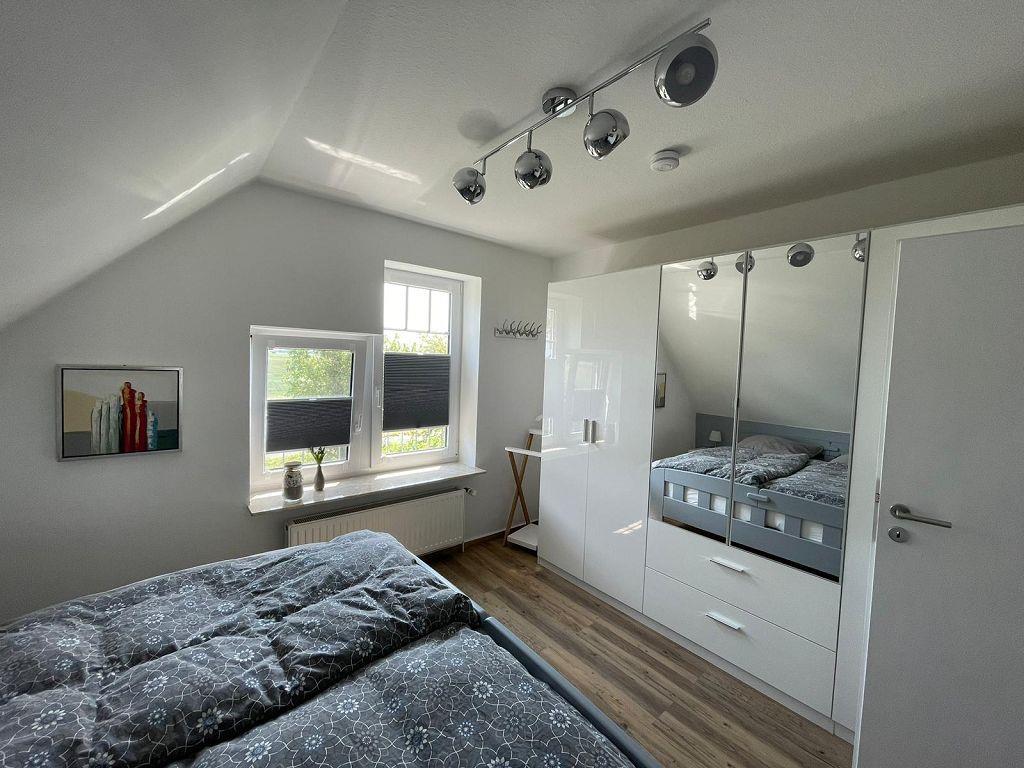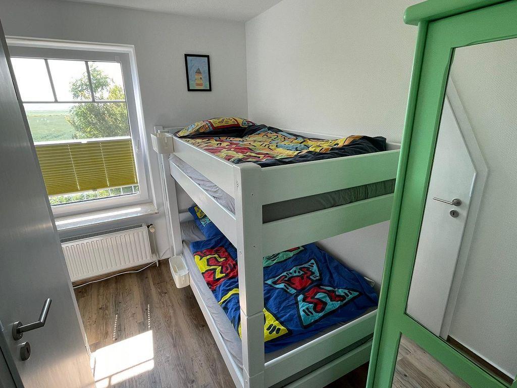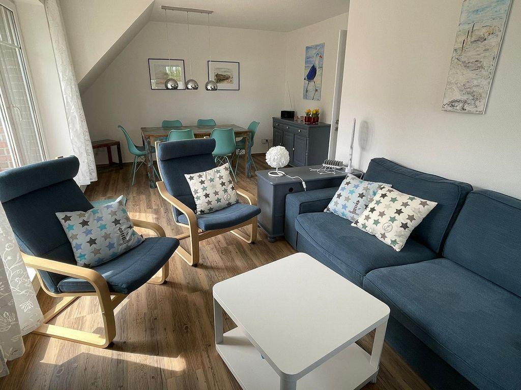 Kommen Sie herein in die im Frühjahr 2023 frisch renovierte Oberwohnung Achterliek! Über einen eigenen Hauseingang erreichen Sie über die Treppe den Flur. Die helle neue Küche lässt keine Wünsche offen und ist voll ausgestattet. Für Kaffeetrinker sind eine Senseo- sowie eine Filterkaffeemaschine vorhanden. Nebenan befindet sich das Schlafzimmer mit Doppelbett und großem Kleiderschrank, das zum Träumen und Entspannen einlädt. Gegenüber liegt das geräumige helle Duschbad. Ideal für Kinder ist das zweite Schlafzimmer ist mit einem Etagenbett ausgestattet. Ein Sekretär und ein Kleiderschrank runden diesen Raum ab. Im großen hellen Wohn-/Essbereich können Sie die Seele baumeln lassen. Auf der gemütlichen Sofa-/Sessellandschaft können schöne Spiele- oder Klönabende verbracht werden. Ein Flachbild-TV, eine Musikanlage mit Bluetooth-Verbindung und Smartphone-Ladestationen sorgen für moderne Technik. Von hier gelangen Sie auf den großzügigen Südbalkon, der mit Gartenmöbeln, Liegestuhl und Sonnenschirm ausgestattet ist. Genießen Sie die frische Nordseeluft und die Sonnenstrahlen. Die Eigentümer haben die Wohnung liebevoll eingerichtet und dekoriert - eine Wohlfühloase! Zur Wohnung gehört ein Schuppen, wo 3 verschiedene Kinder- und 2 Erwachsenenfahrräder zur Verfügung stehen (Benutzung auf eigene Gefahr). Außerdem bietet der Raum noch Platz für 4 weitere Gästefahrräder. Der Parkplatz befindet sich direkt vor dem Haus. WLAN ist verfügbar! Haustiere sind nicht erlaubt.