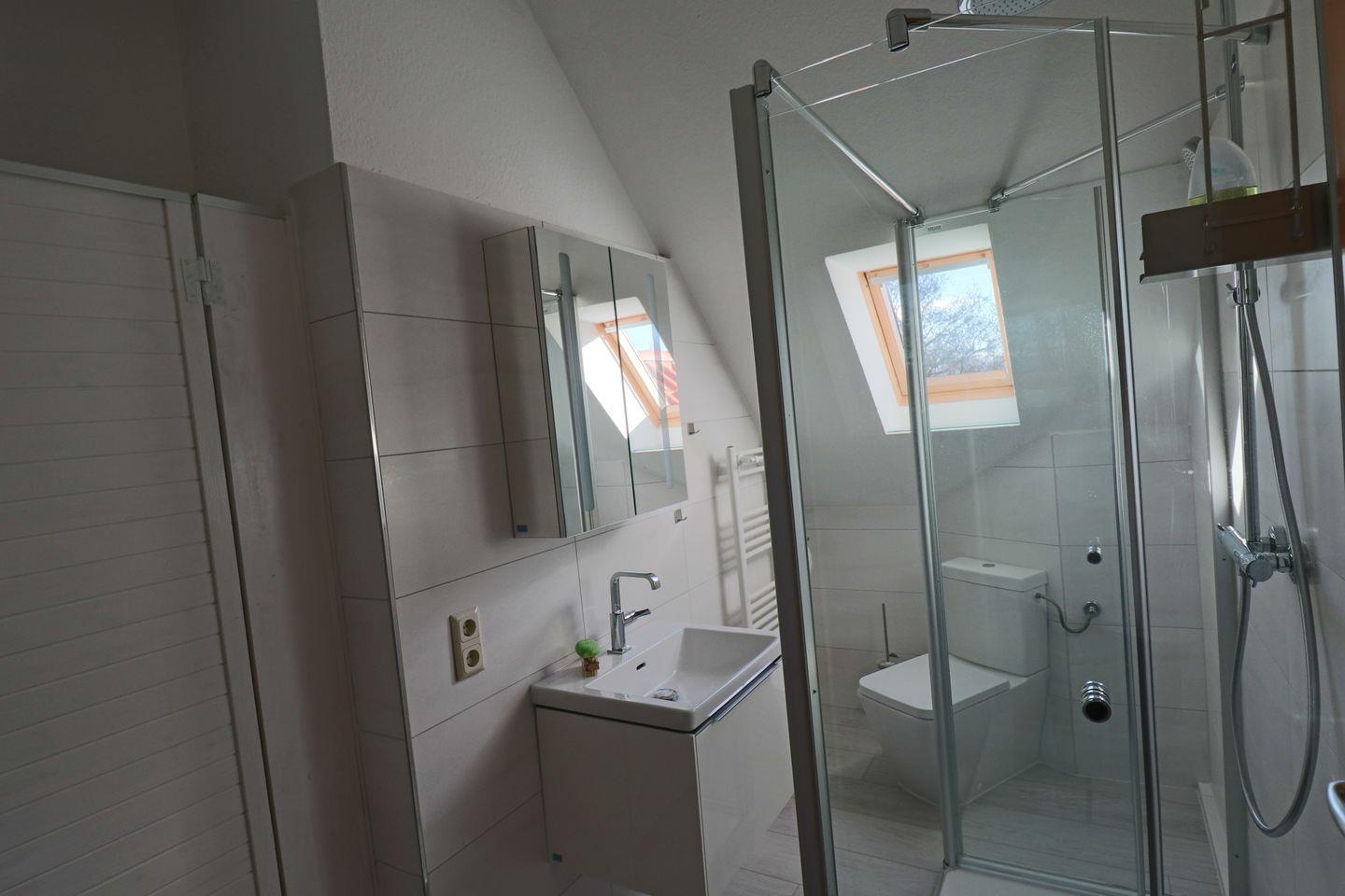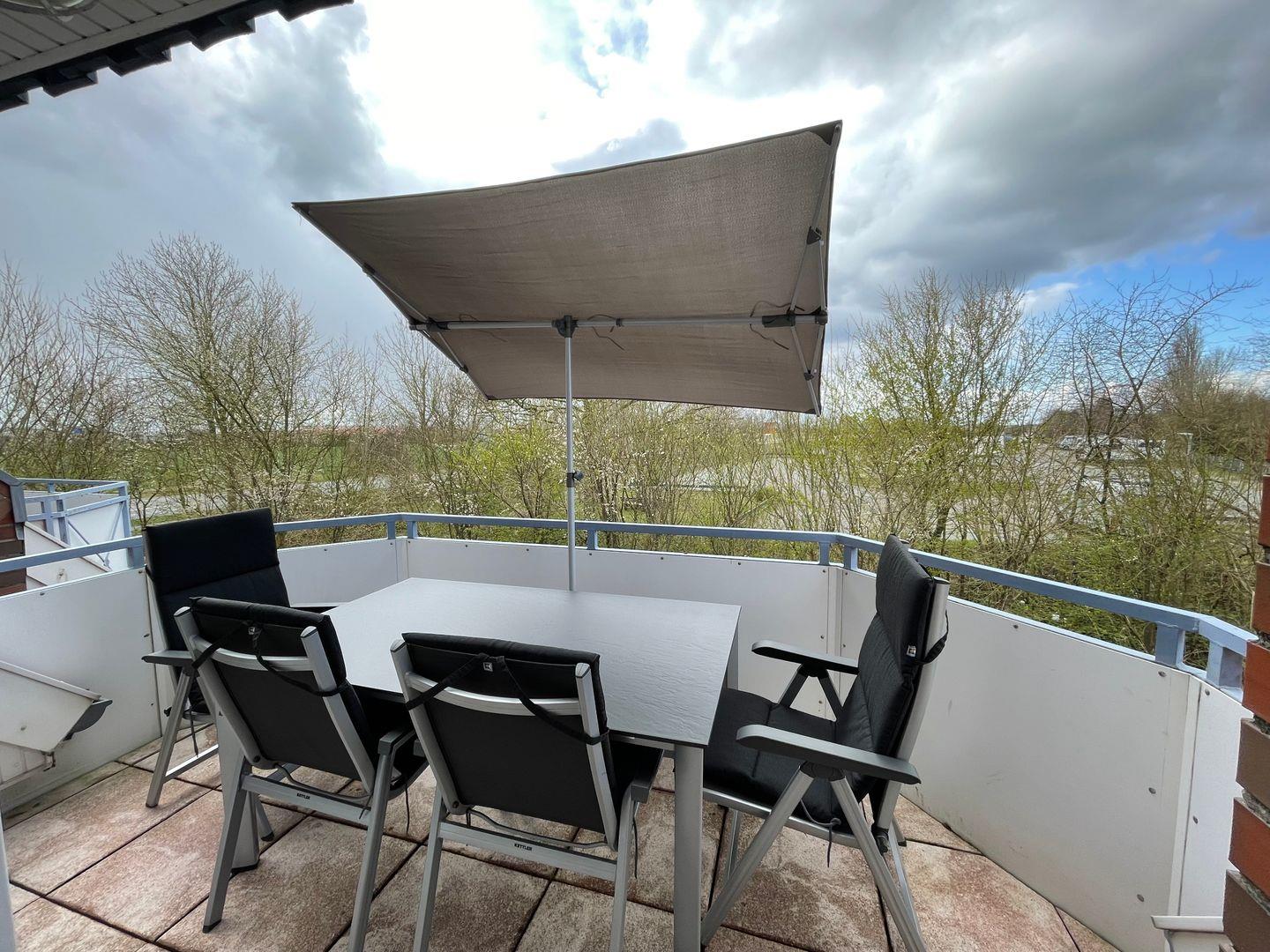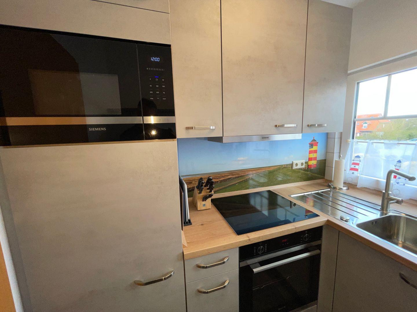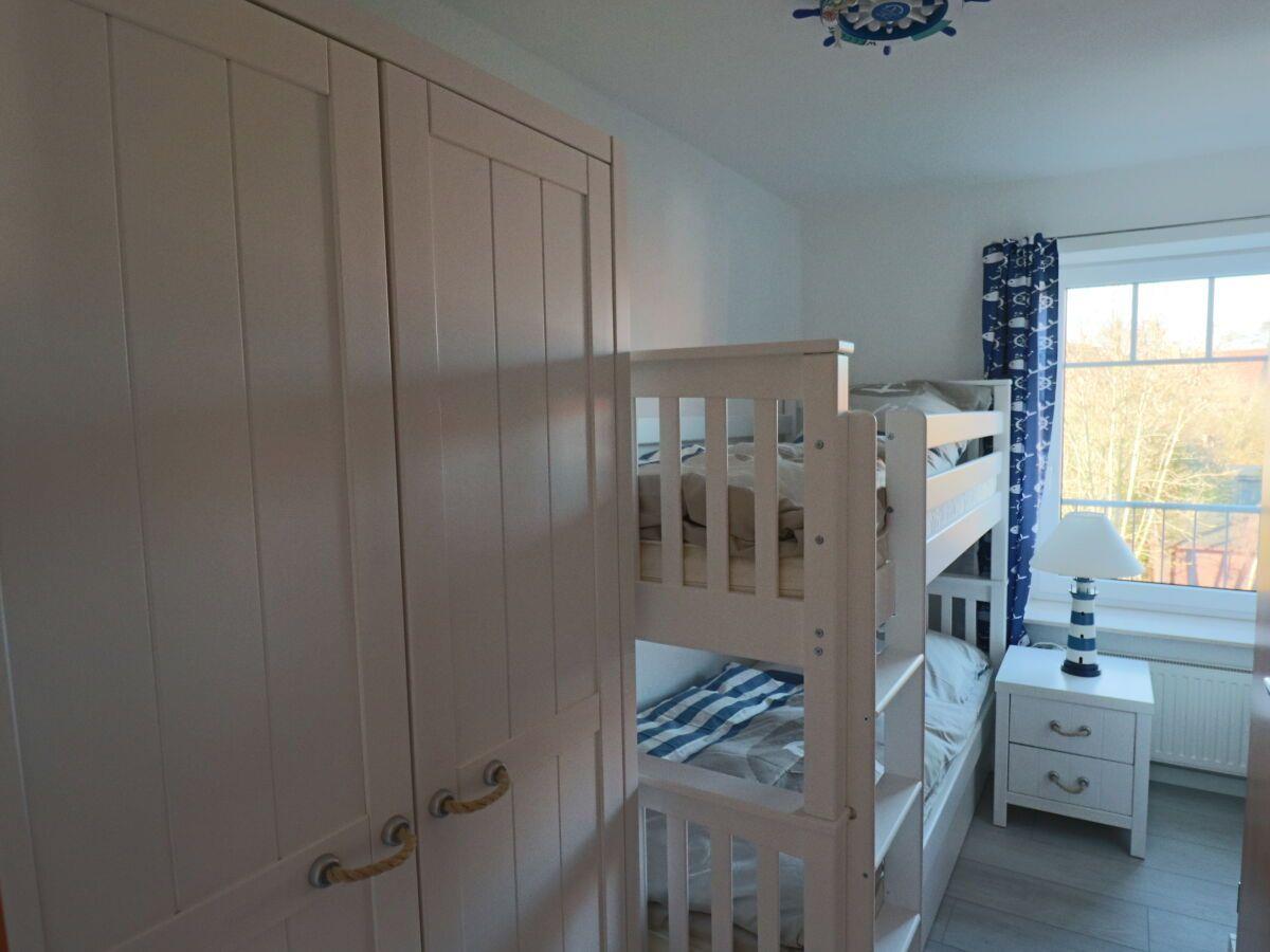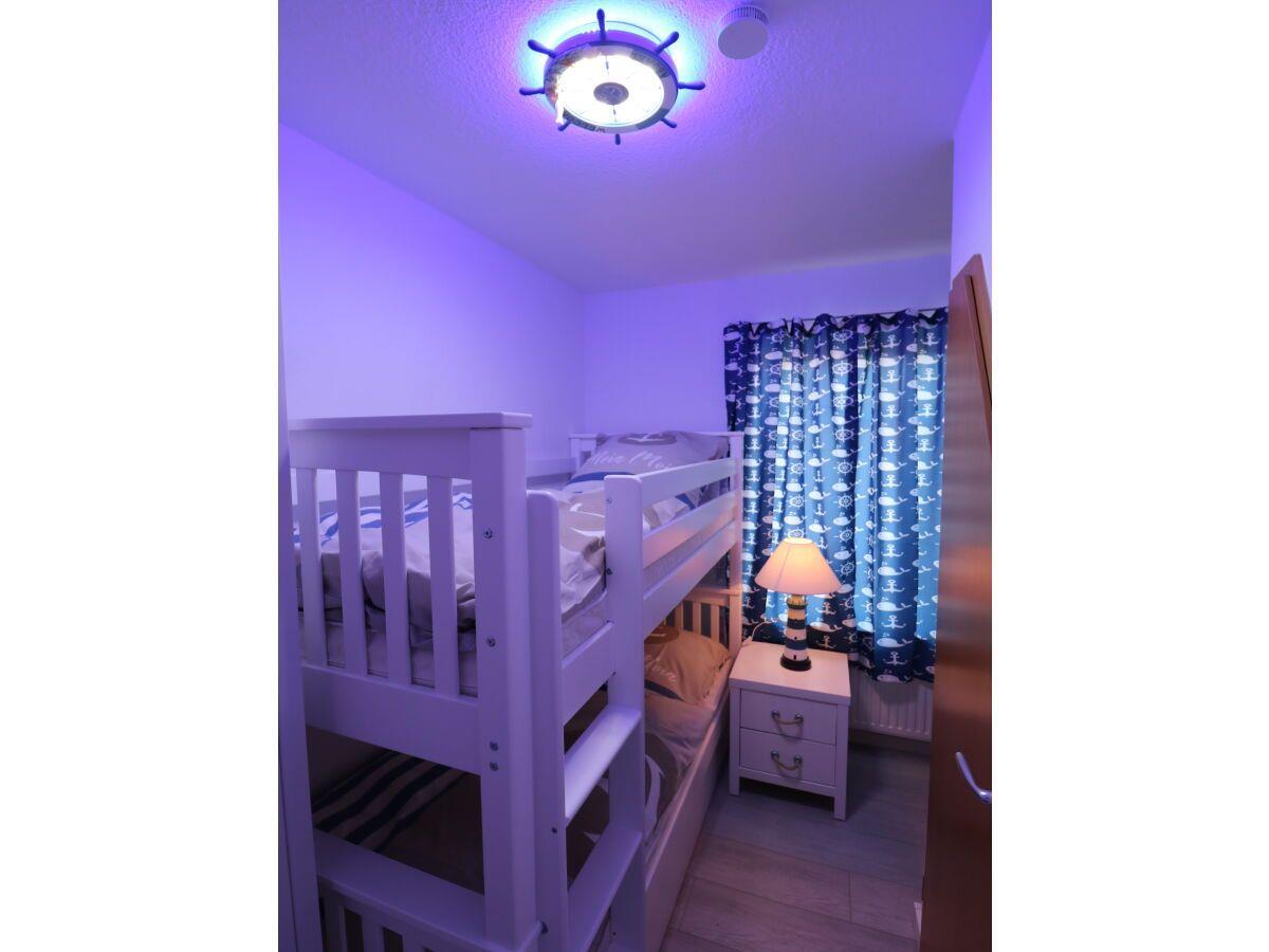 Genießen Sie Ihren Urlaub in dieser großen modernen Maisonettewohnung für bis zu 6 Personen! Ahoi und herzlich Willkommen! Die Oberwohnung liegt in ruhiger Lage, unweit der Zwillingsmühlen. Das großzügige Ferienobjekt im maritimen Look wurde im Jahre 2021/22 komplett renoviert. Sie gelangen über einen separaten Eingang in die Wohnung. Vom Flur aus erreichen Sie alle Räume. Gleich vorne befindet sich die neuwertige vollausgestattete Küche mit Geschirrspüler, Mikrowelle, Senseo- und Kitchenaid-Kaffeemaschine. Nebenan liegt das erste Schlafzimmer, die Käptn´s Koje, mit Doppelbett, das zum Kuscheln und Träumen einlädt. Ein 43" Fernseher sorgt für kuschelige Stunden. Sie finden in der gesamten Wohnung viele liebevolle maritime Details. Das zweite Schlafzimmer, die Matrosenkoje, ist mit einem weißen Etagenbett und Kleiderschrank eingerichtet. Die Deckenlampe als Steuerrad und die Leuchtturmlampe faszinieren so Manchen. Hier gibt es noch einen kleinen Abstellraum. Geradeaus geht es in den Wohn-/Essbereich, in die Käptns-Lounge. Der Raum ist hell und freundlich. Lassen Sie sich das Essen am großen Esstisch aus Massivholz mit modernen Sitzmöbeln schmecken. Ein Internetradio sorgt für jede Stimmung. Im Wohnbereich ist Wohlfühlen groß geschrieben. Die gemütliche Couch und die Sessel laden zum Entspannen ein. Die Deckenlampe mit Farbwechsler und der große Flachbild-TV (50") runden die Gemütlichkeit ab. Von hier haben Sie Zugang zum großen Südbalkon, wo Sie die frische Luft und die Sonnenstrahlen genießen können. Das Bad ist ebenfalls komplett renoviert und lässt mit einer Regendusche keine Wünsche offen. Ein Waschtrockner steht zur Verfügung. Den oberen Bereich erreichen Sie über eine Raumspartreppe. Ein heller Schlaf- und Relaxbereich erwartet Sie! Im Doppelbett lässt es sich fabelhaft schlafen und träumen. 2 Relaxsessel und ein Flachbild-TV sorgen für Entspannung. Das I-Tüpfelchen ist das anliegende neuwertige Bad en Suite mit Regendusche und WC. Dem Eigentümer ist es gelungen, dass Sie sich in dieser Wohnung mit maritimem Flair sofort zu Hause fühlen. WLAN ist verfügbar! Ein Schuppen, wo Sie Ihre mitgebrachten Fahrräder unterbringen können, steht bereit. Ein Parkplatz befindet sich vor dem Haus. Ihr Hund ist hier herzlich willkommen!