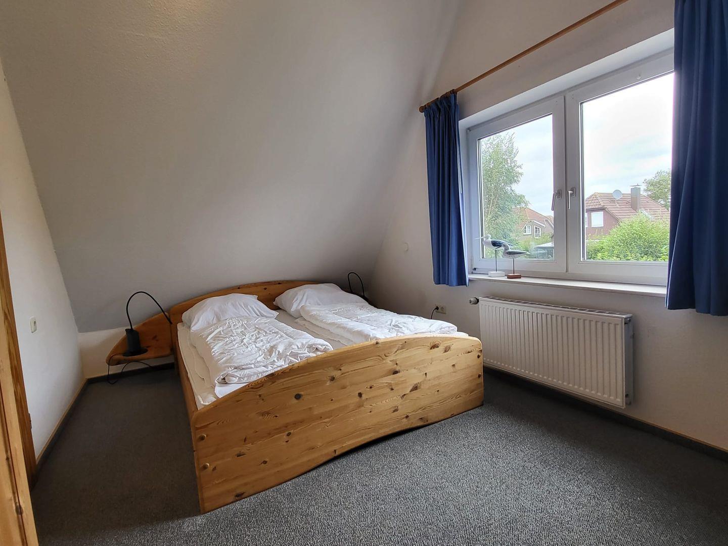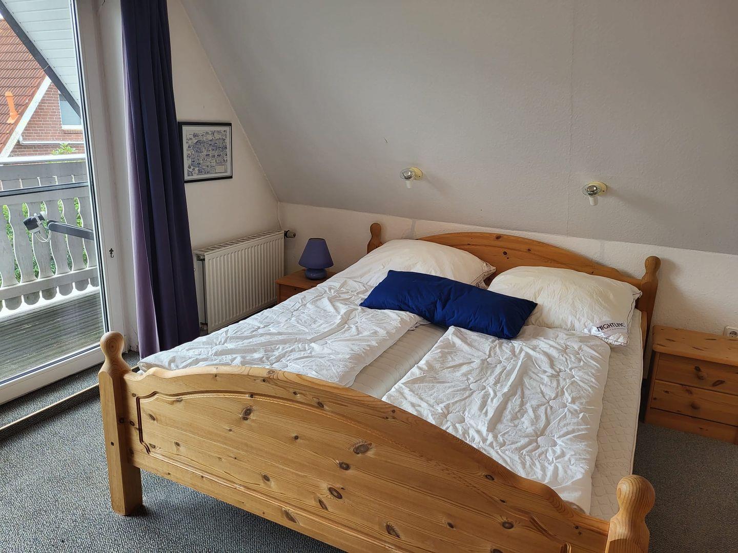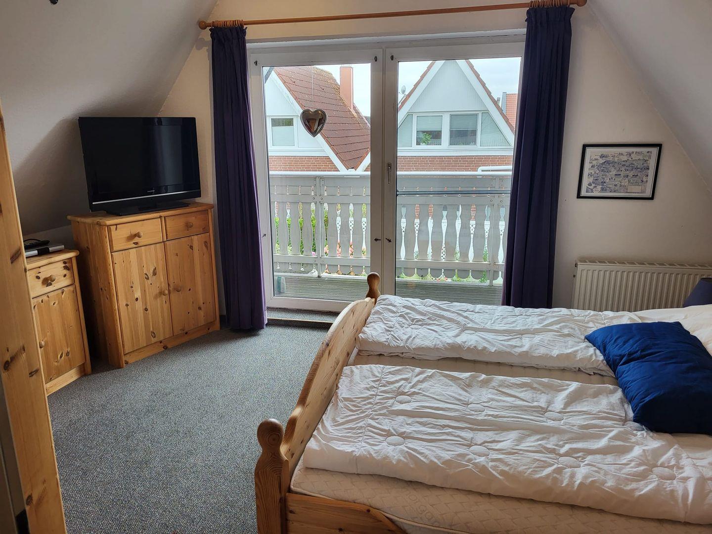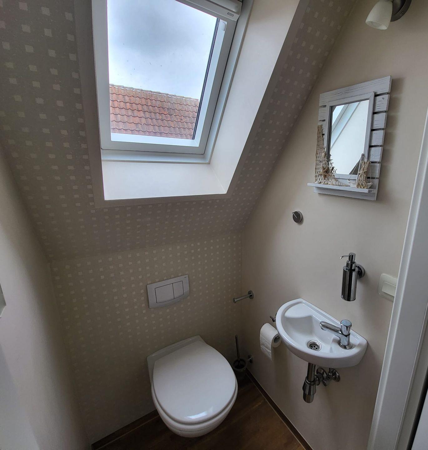 Moin und herzlich Willkommen! Vom Flur gelangen Sie in die gemütliche Küche mit Küchenzeile und ein Essplatz direkt am Fenster. Hier kann in Ruhe gefrühstückt und gegessen werden. Gegenüber liegt das helle Badezimmer mit geräumiger Dusche. Der große Wohnbereich mit Balkenlage strahlt Gemütlichkeit aus. Auf der bequemen Couch mit Drehsessel können Sie fabelhaft entspannen. Durch die großen Fenster haben Sie einen tollen Blick in den Garten. Von hier gelangen Sie auf die überdachte Terrasse. So können Sie bei jedem Wetter die frische Nordseeluft genießen. Das Obergeschoß bietet 2 Schlafräume, die beide mit jeweils einem Doppelbett (Größe je 160 x 200 cm) und einem Fernseher ausgestattet sind. Hier kann man so manche Abende entspannt ausklingen lassen. Ein Gäste-WC rundet die obere Etage ab.