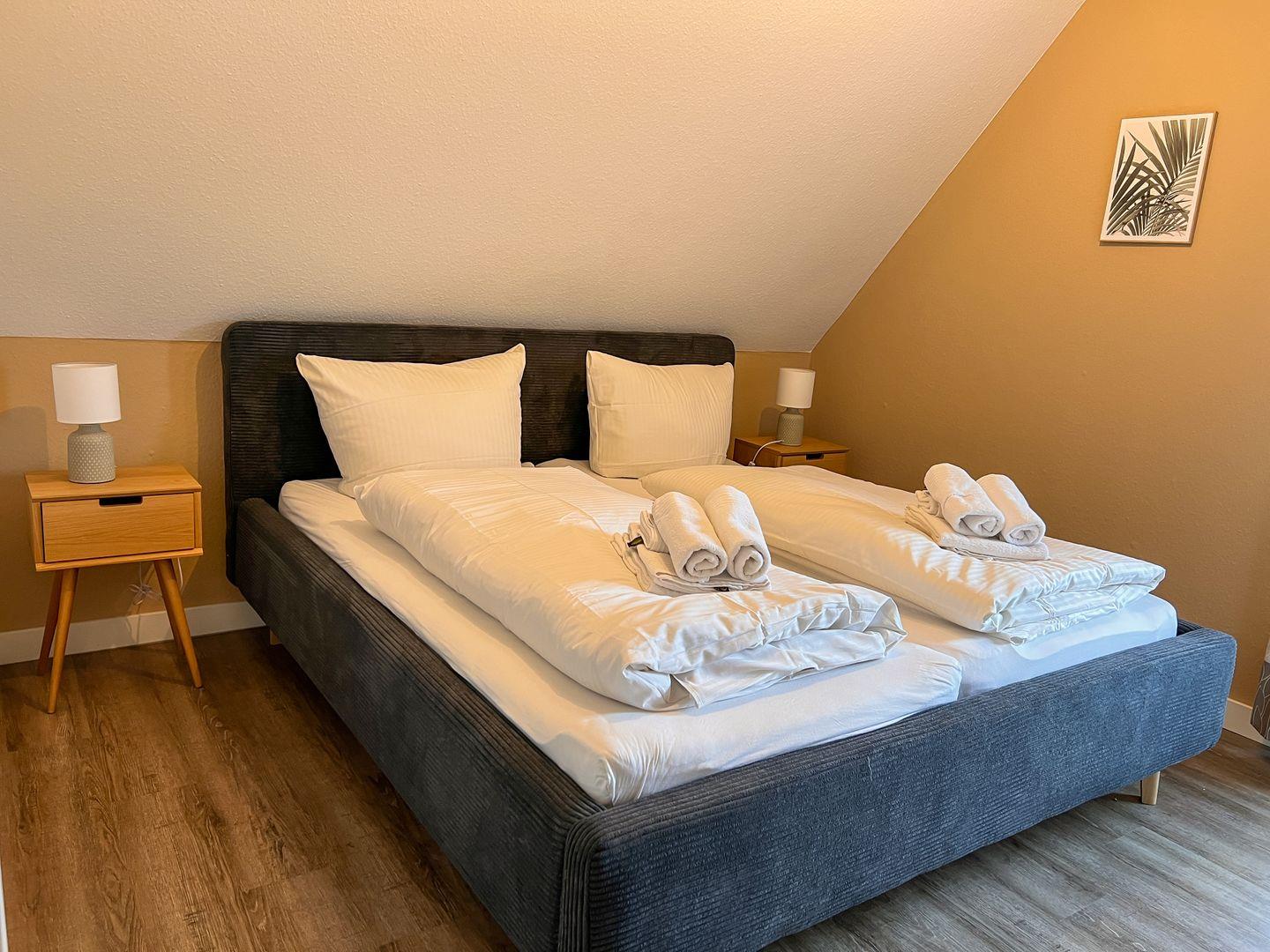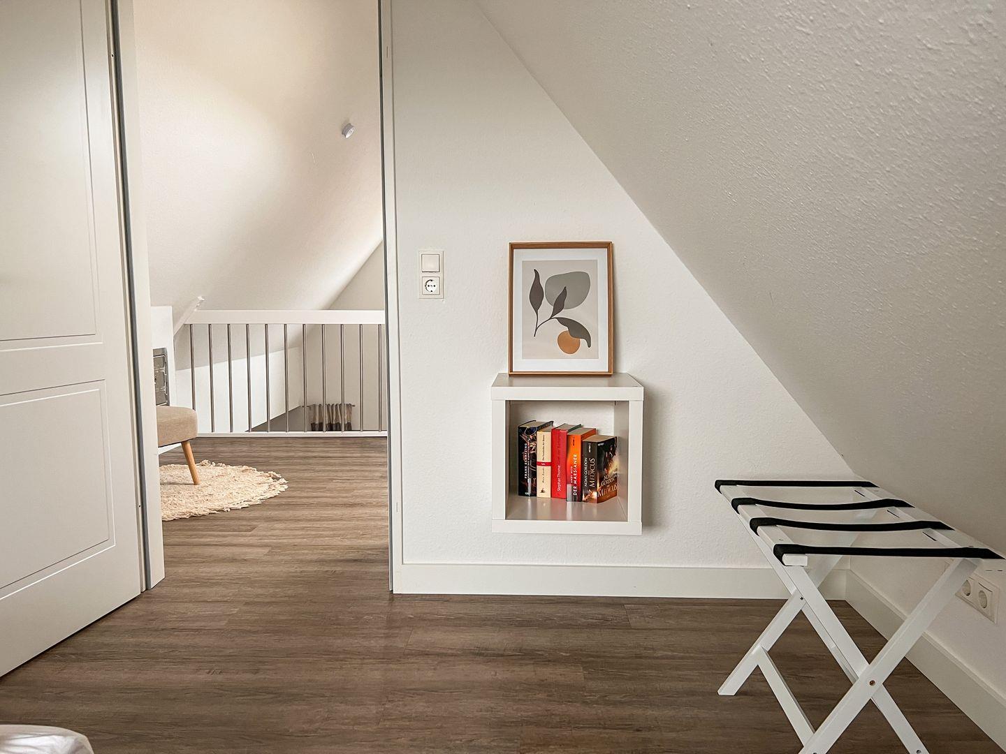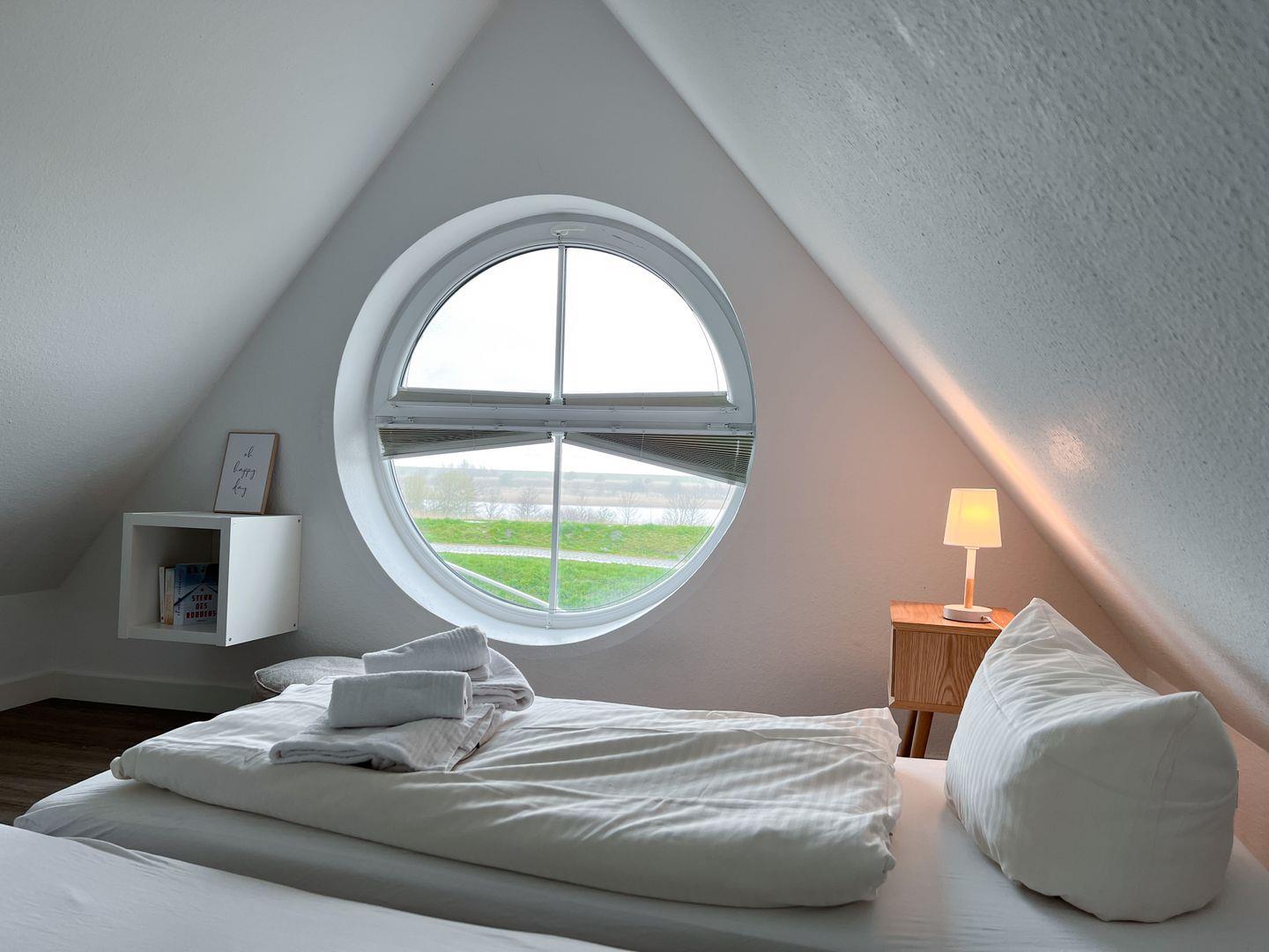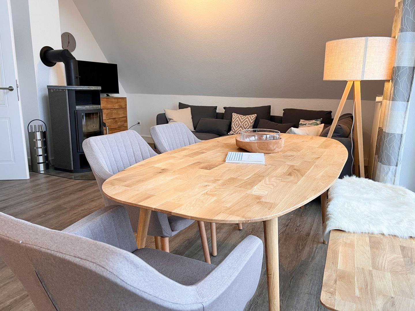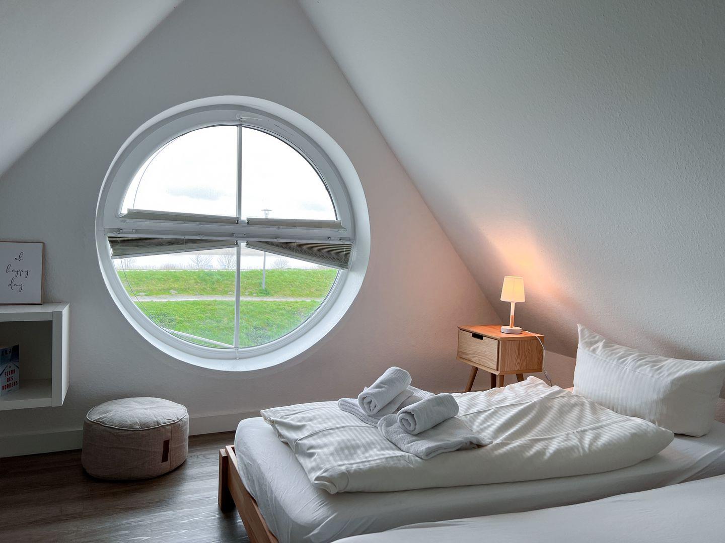 In unserer schönen Ferienwohnung Möwenkieker (ehem. Ferien hinterm Deich OG) behalten Sie auch während Ihrer Auszeit den Überblick. Die ca. 80qm große Obergeschosswohnung erstreckt sich auf 2 Etagen und bietet bis zu zu 6 Personen Platz. Sie besticht unter anderem durch ein großzügiges Badezimmer mit Eckbadewanne, einem Kamin und einem ungestörten Blick aus allen Schlafzimmern, über den Deich auf das Naturschutzgebiet Leyhörn. Zudem gehören ein Balkon sowie ein PKW-Stellplatz zur Wohnung.