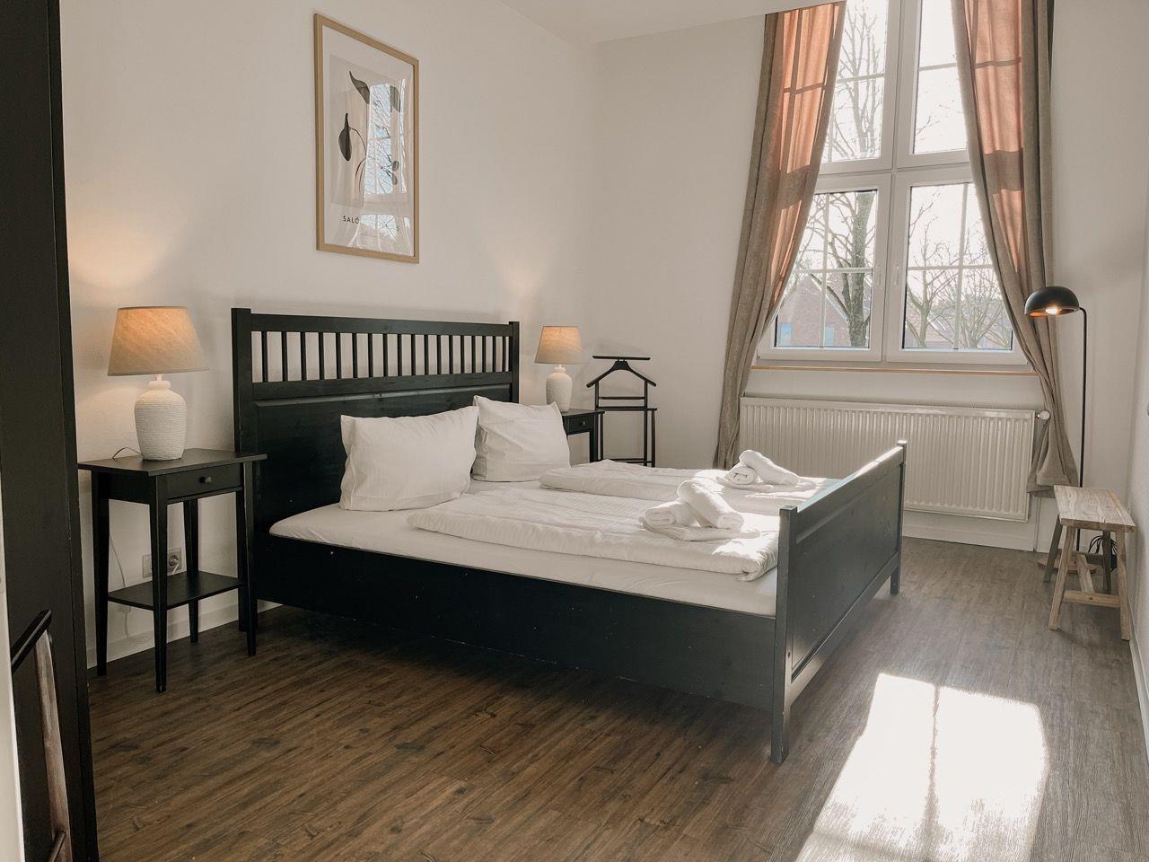 Die Ferienwohnung verfügt über zwei komfortable Schlafzimmer, die Ihnen erholsamen Schlaf garantieren. Das kompakte Badezimmer bietet eine große Dusche. Selbstverständlich stehen Ihnen frische Handtücher und Bettwäsche zur Verfügung. Zusätzlich gibt es ein Gäste-WC, das besonders praktisch für Familien ist.