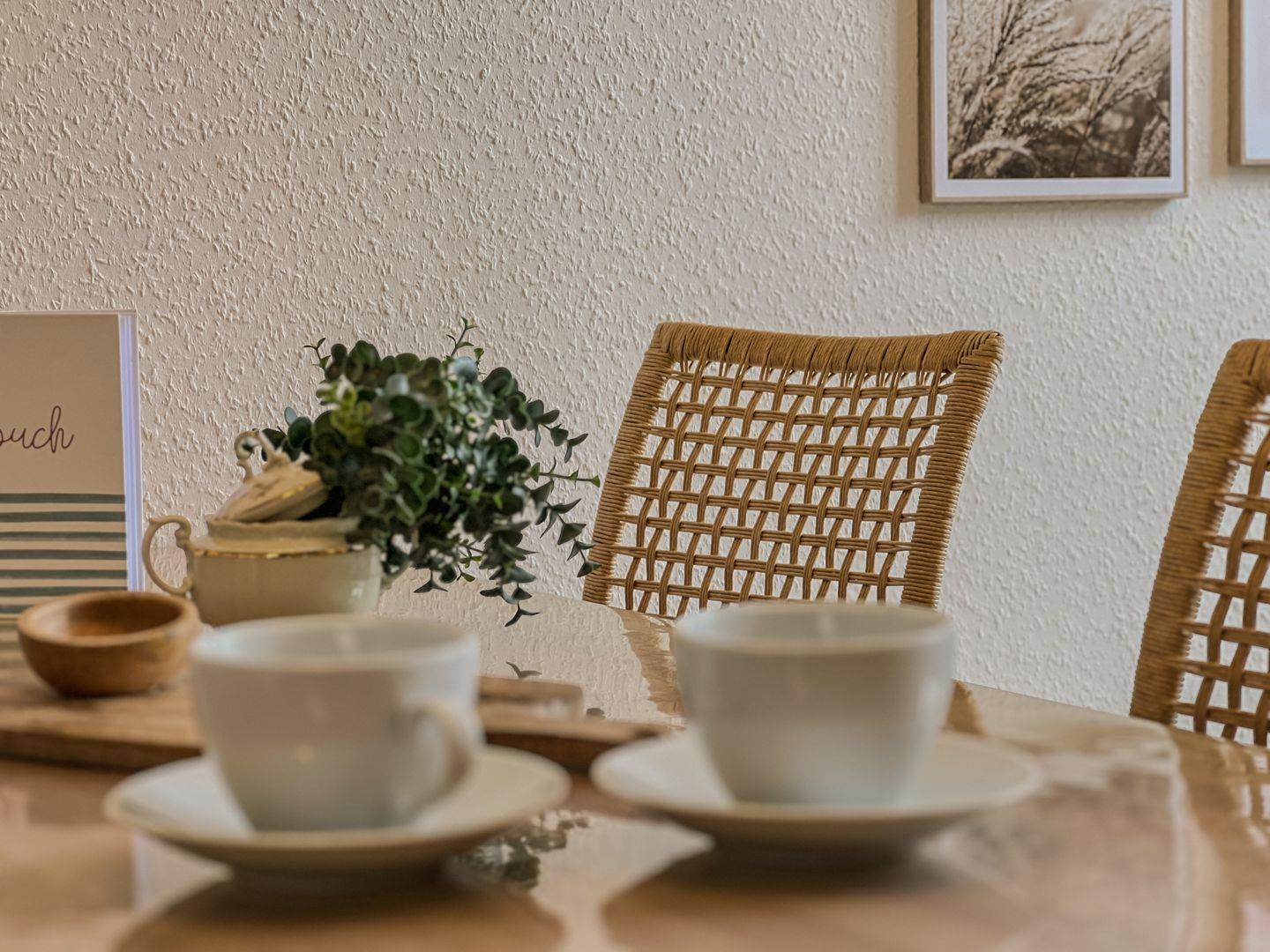 Mit einer großzügigen Fläche von 120 m² erwartet Sie Wohnraum, der zu Entspannung und Geselligkeit einlädt. Die offene Küche, ausgestattet mit hochwertigen Geräten wie einem Cerankochfeld, Backofen, Kühlschrank und Geschirrspüler, bietet alles, was Sie für die Zubereitung köstlicher Mahlzeiten benötigen. Der einladende Essbereich und die Sofaecke im Wohnzimmer laden zum gemeinsamen Essen und Verweilen ein. Genießen Sie gemütliche Abende in einen der zwei geschmackvoll eingerichteten Schlafzimmern, während Sie den Tag Revue passieren lassen oder einen Film auf einem der zwei Fernseher anschauen.