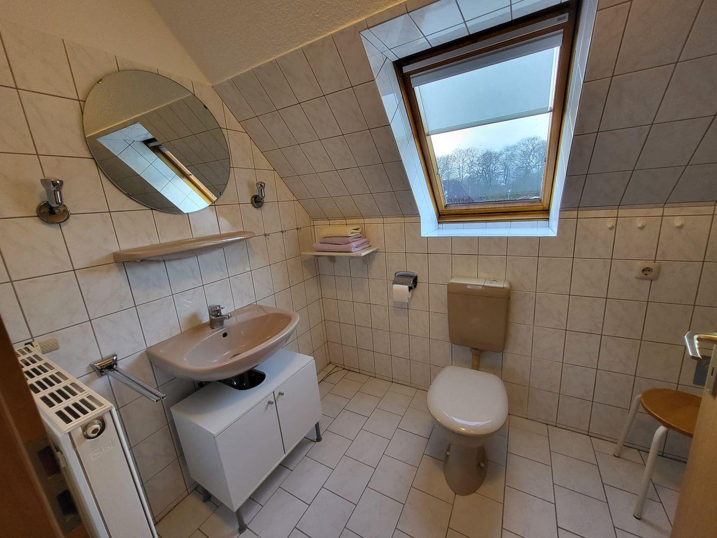Im Wohn-/Essbereich mit Küche können Sie Ihren Urlaub genießen. Die gemütliche Couch lädt zu entspannten Abenden bei einem Gläschen Wein und spannenden Filmen ein. In der gut ausgestatteten Küchenzeile (Spülmaschine ist in Planung) können Sie Ihren Kochkünsten freien Lauf lassen und am Esstisch tolle Speisen servieren. Die Sitzgruppe ist ebenfalls perfekt um bei einer Tasse Ostfriesentee zu Klönen. Nebenan befindet sich das Schlafzimmer mit Doppelbett. Genießen Sie die ruhigen Nächte. Vom Flur gelangen Sie in ein weiteres Schlafzimmer mit einem Einzelbett. Das Duschbad mit Fenster und ein Abstellraum runden das Obergeschoß ab. WLAN ist verfügbar. Zur Wohnung gehört im Garten noch eine gemütliche separate Terrasse zum Relaxen und frische Nordseeluft schnuppern. 2 Parkplätze stehen zur Verfügung. Ein Schuppen zum Unterbringen mitgebrachter Fahrräder ist vorhanden.
