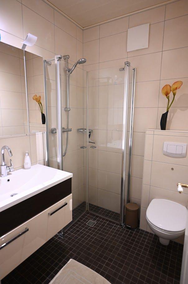 Badezimmer: Mit einem Föhn und einer ebenerdigen Dusche ausgestattet, darf es hier ruhig mal feucht-fröhlich zugehen.