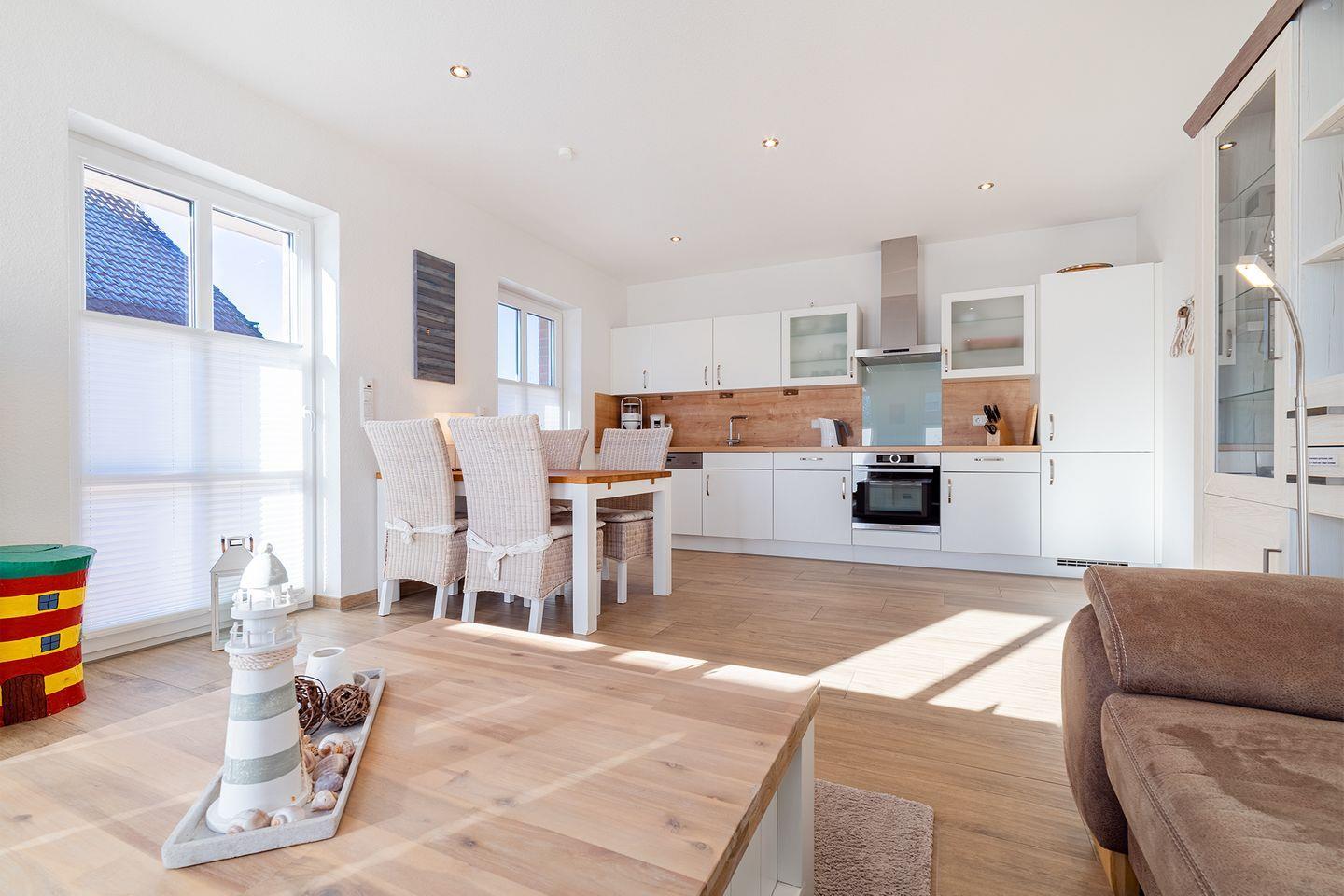 Ein großzügiger und heller Wohnbereich mit einer voll ausgestatteten Küche