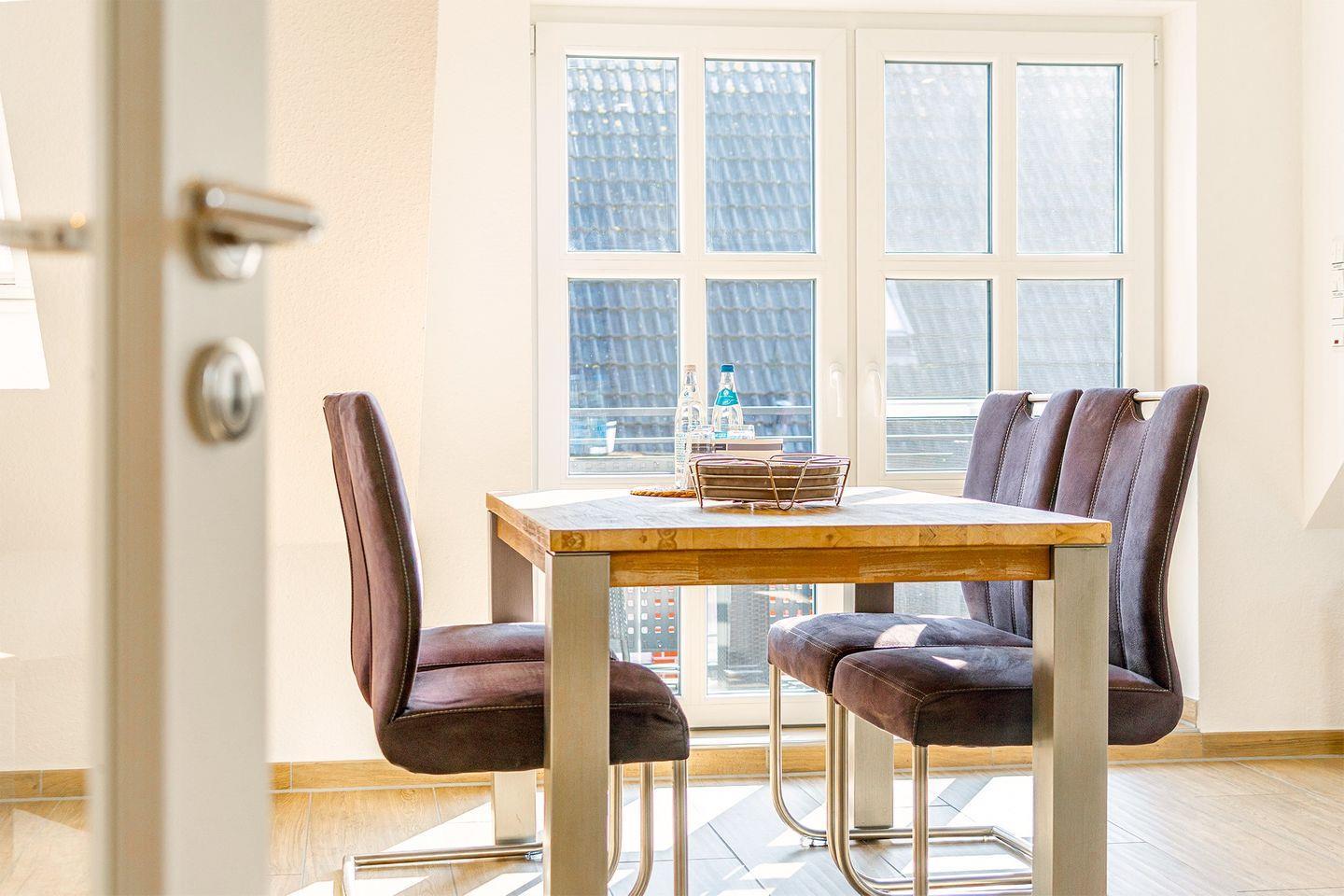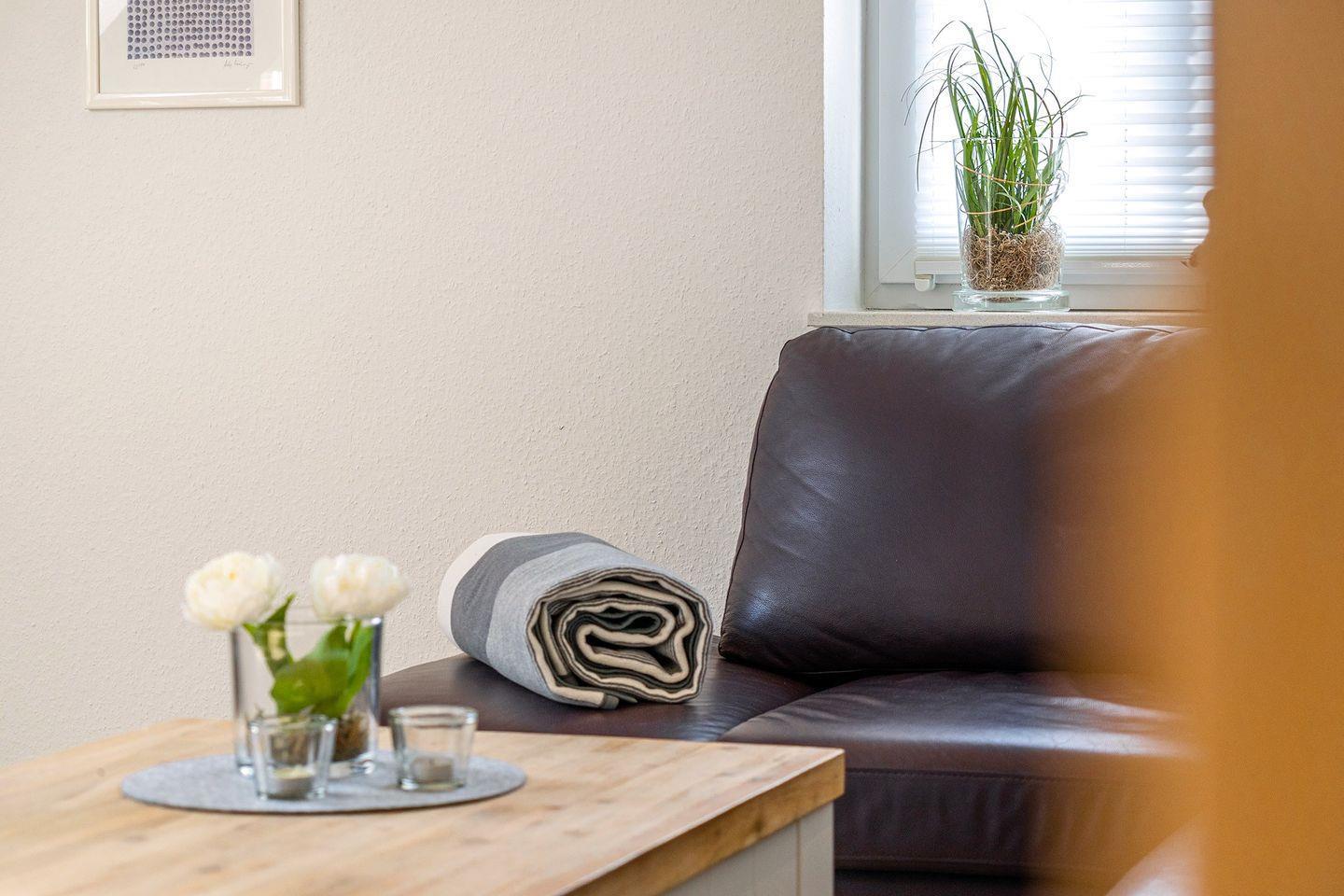 Hochwertige Ferienwohnung im Obergeschoss mit Balkon und zusätzlichem Wohnraum (Fernseh-/Leseraum) im Studio. Kostenfreies WLAN. Ruhe und Erholung in Hafennähe.