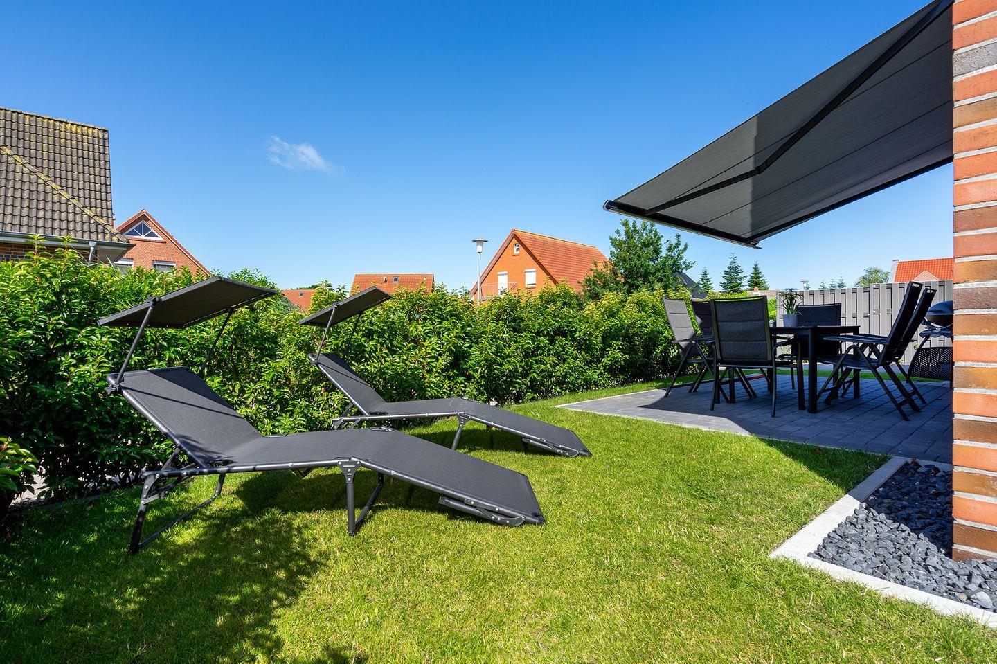 Ein schöner Gartenbereich mit einer Terrasse (südwestlich) und elektrischer Markise