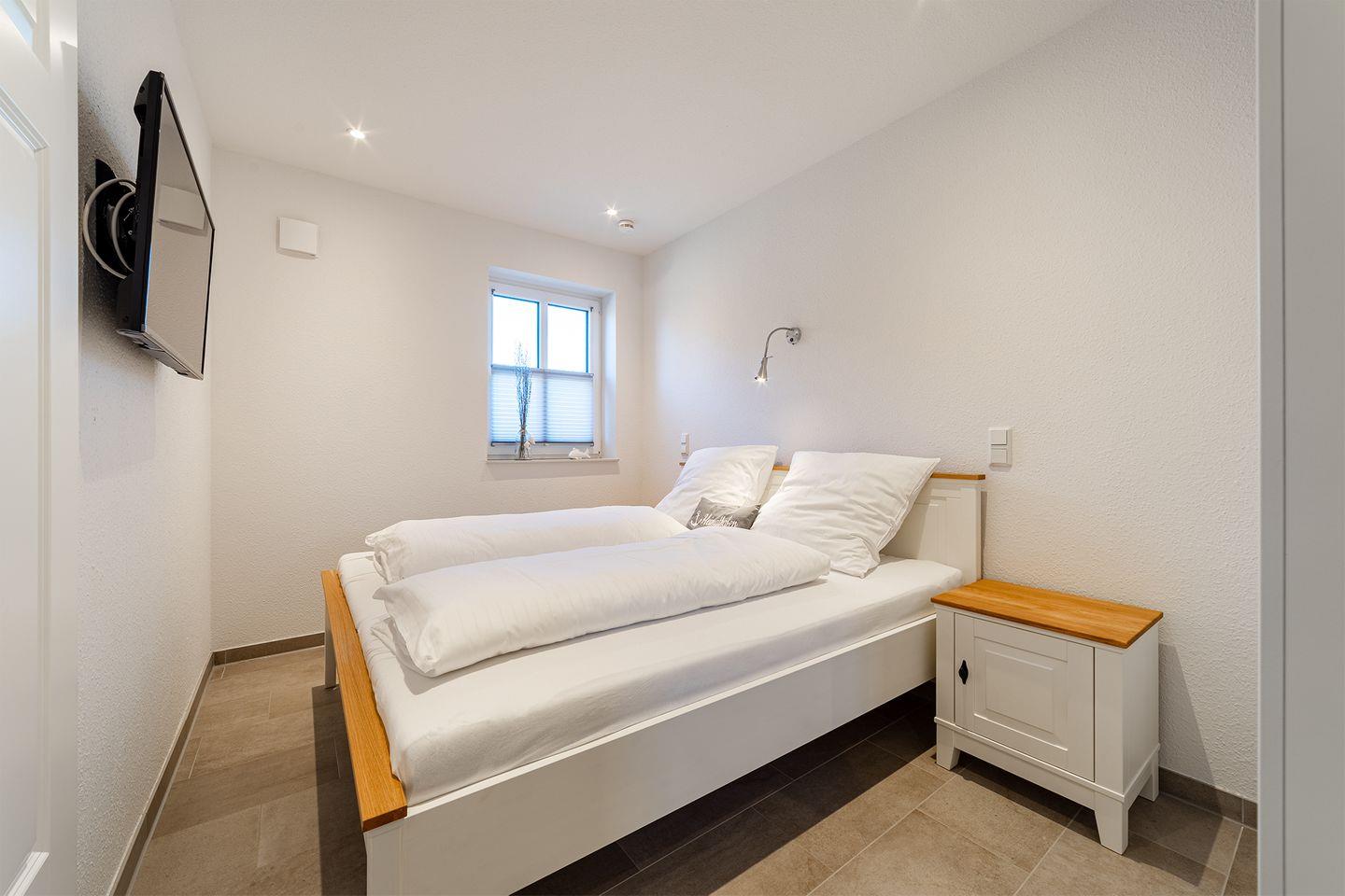Schlafzimmer 3: Doppelbett (180x200cm) und TV im Erdgeschoss.