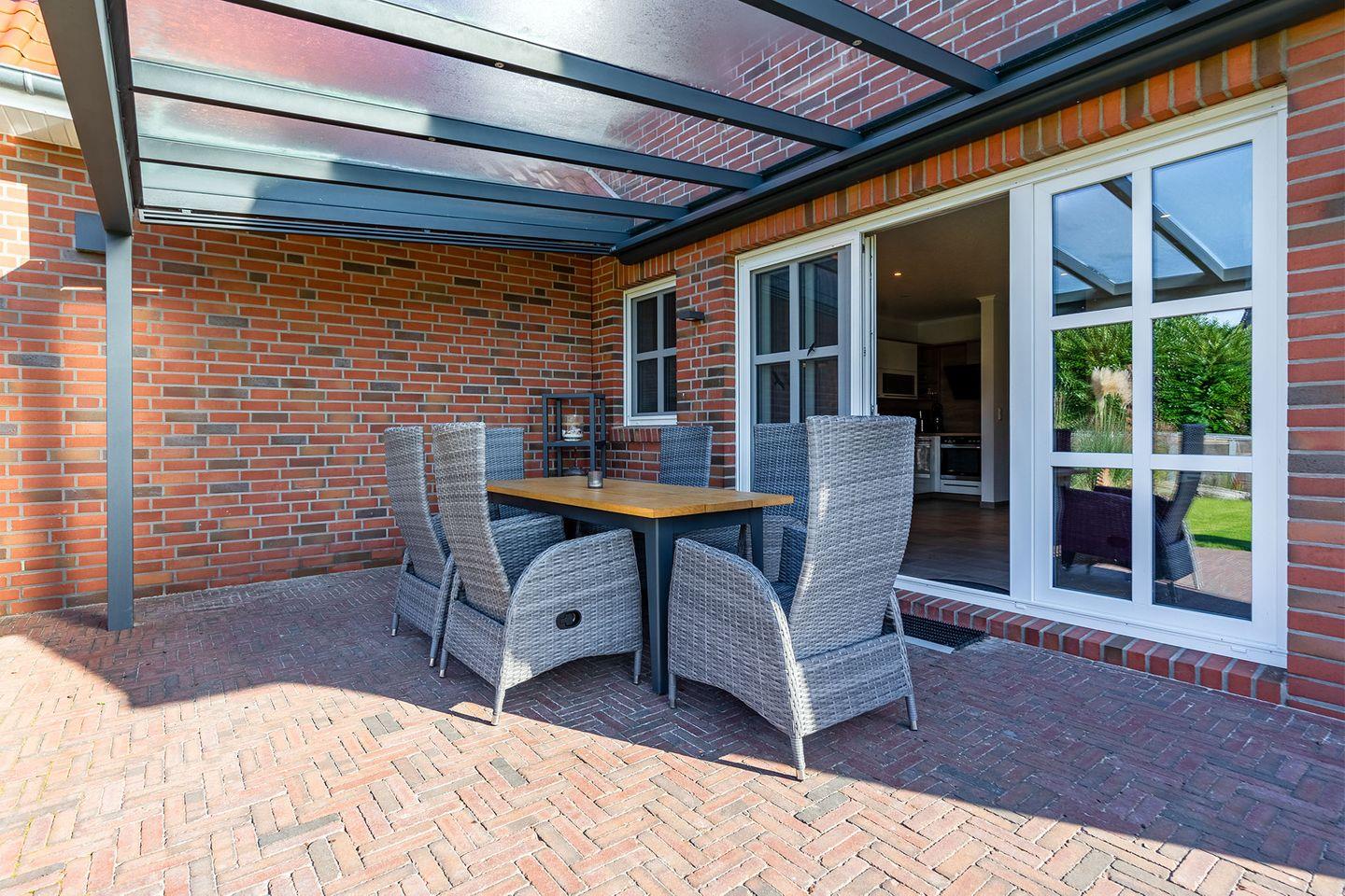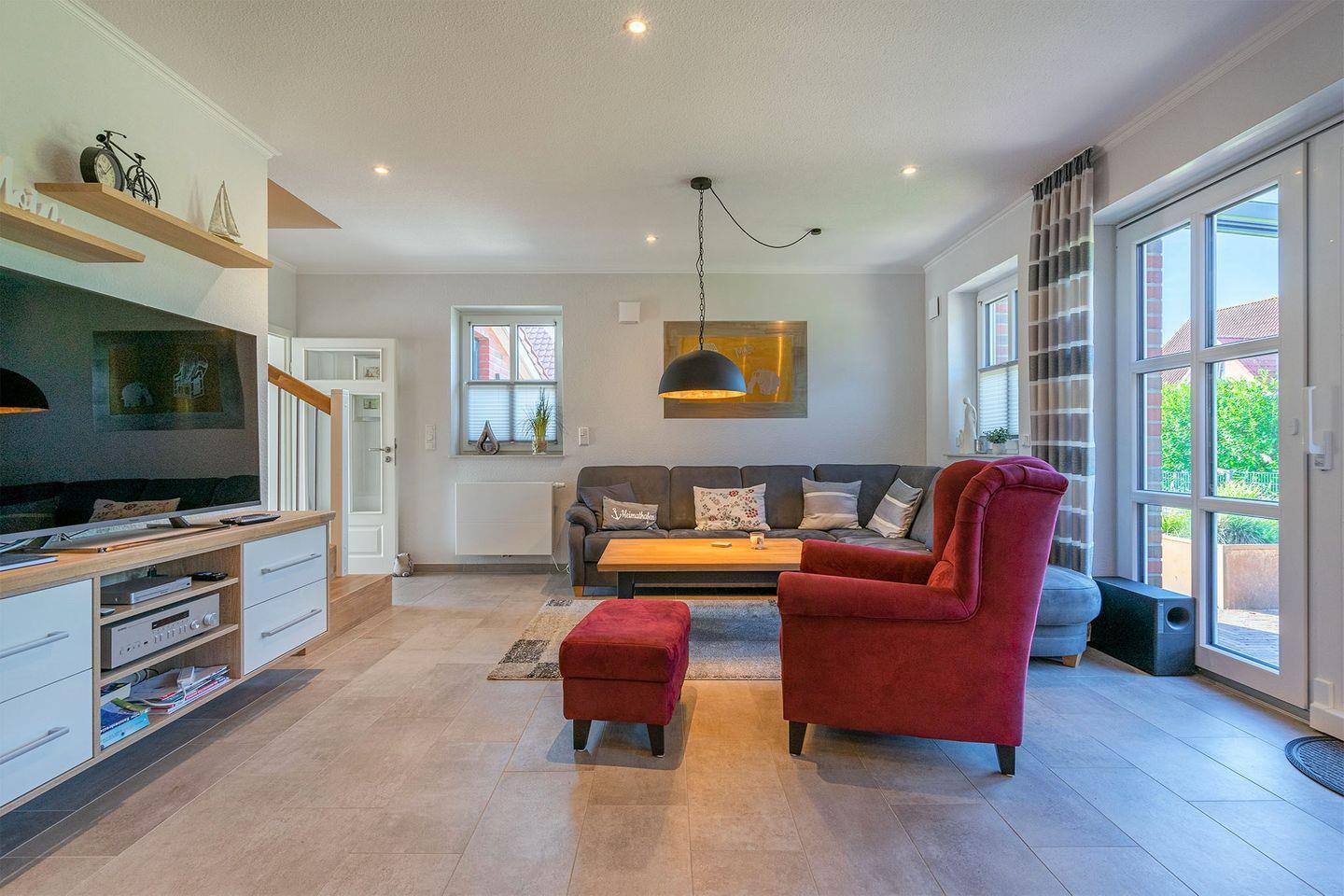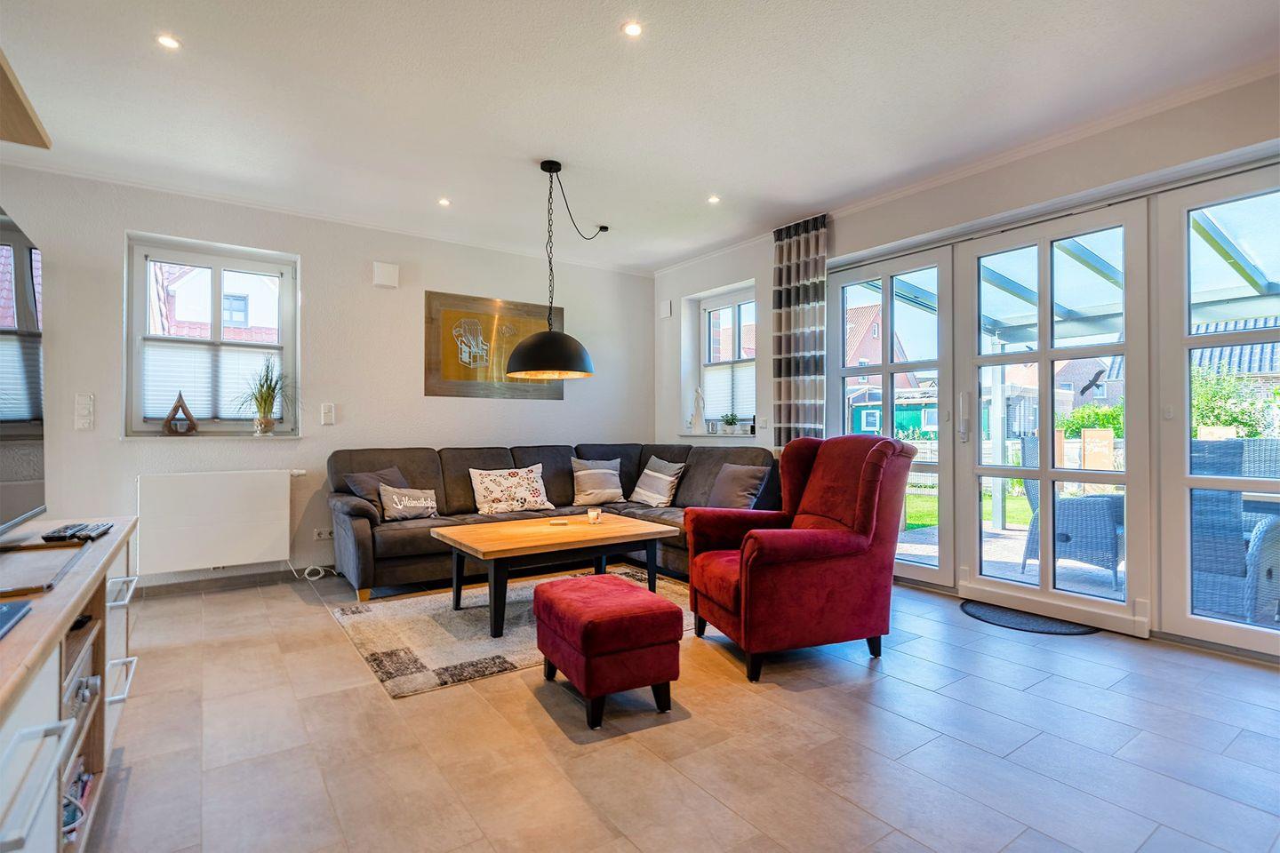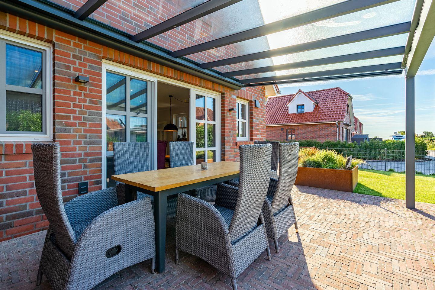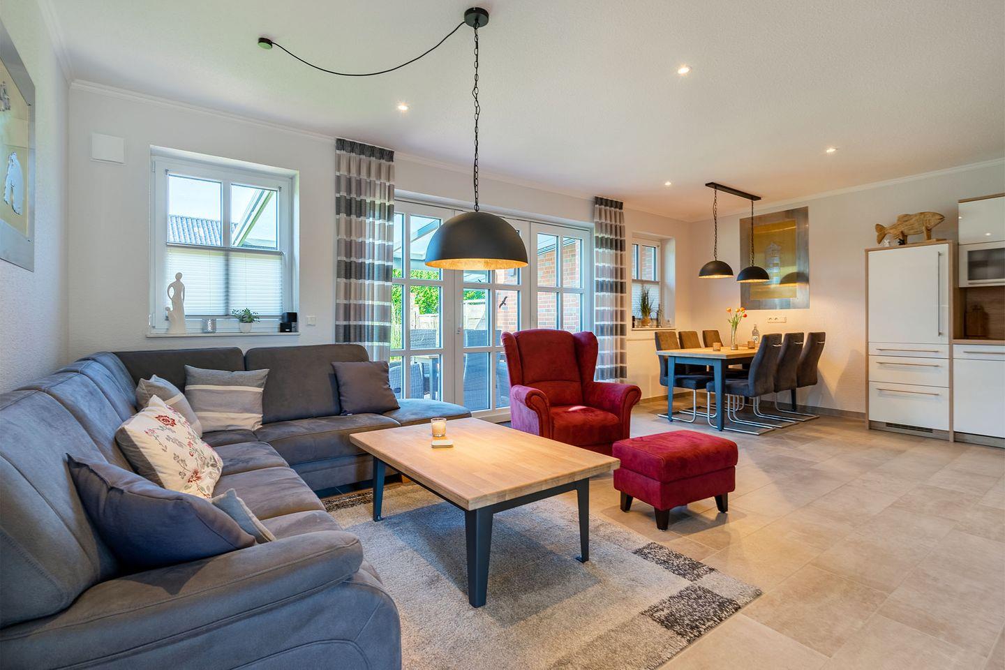 "Skippers Hus" ist eine luxuriöse Doppelhaushälfte, die Platz für bis zu sechs Personen bietet. Der große Garten mit überdachter Terrasse lädt zum Entspannen ein. Zu den Highlights gehören Fußbodenheizung, Fliegengitter, elektrische Rollläden, PKW-Stellplatz, Fahrradraum mit E-Bike-Lademöglichkeit sowie Babybett und Hochstuhl. Ein perfektes Zuhause für Ihren Familienurlaub!
