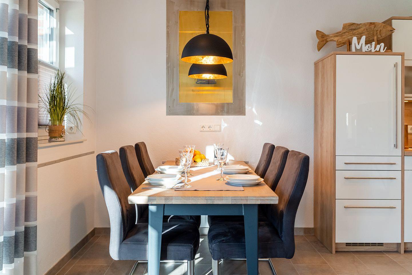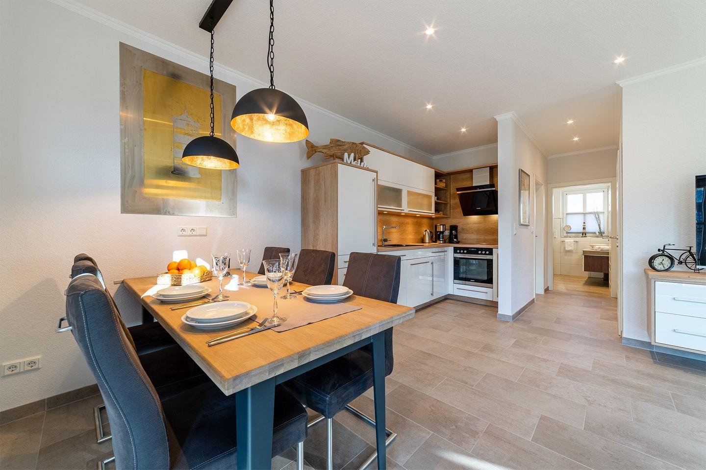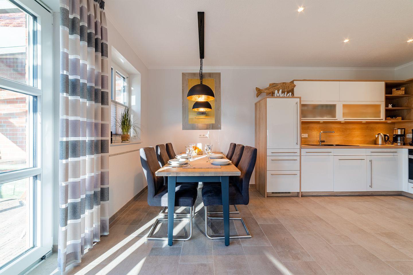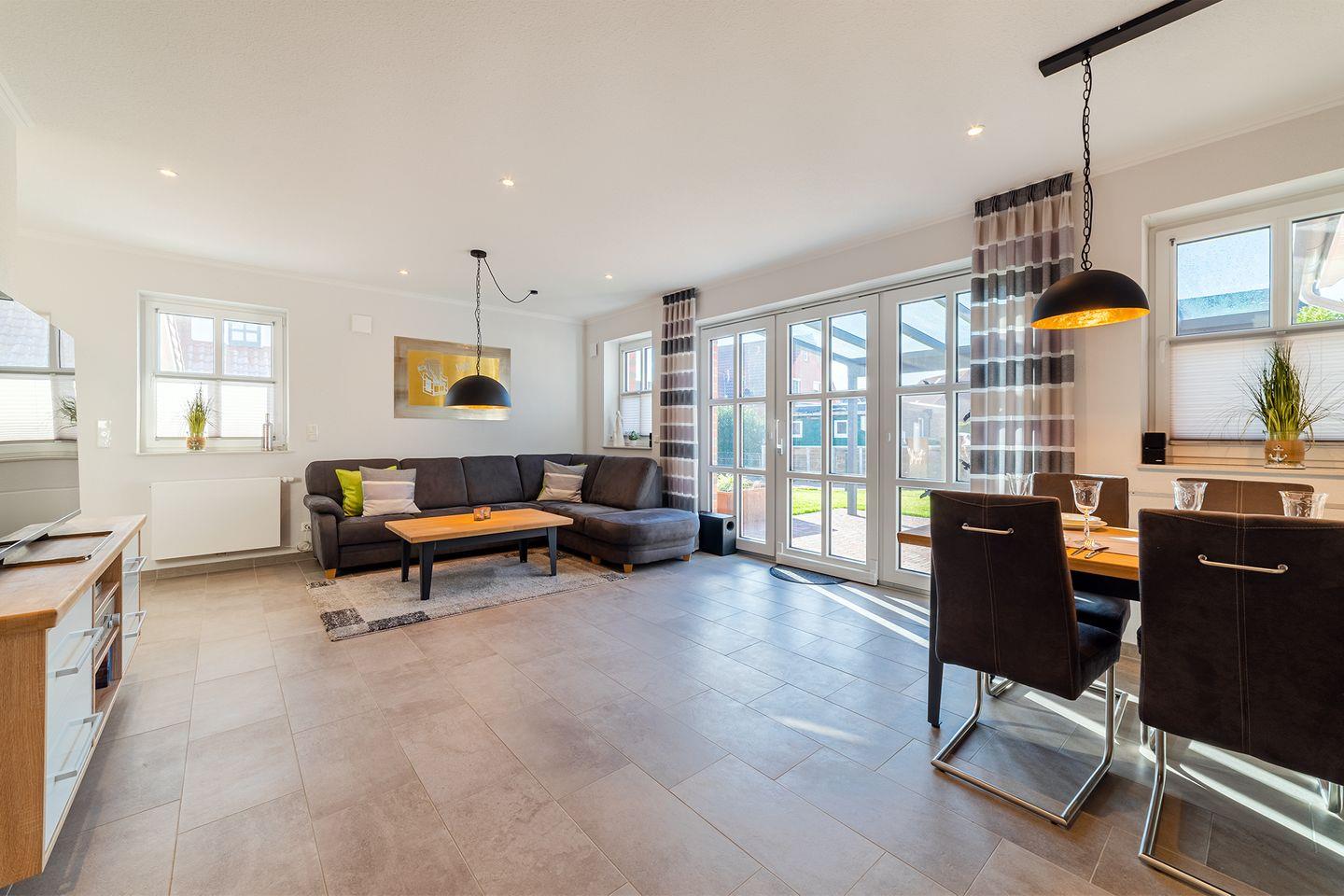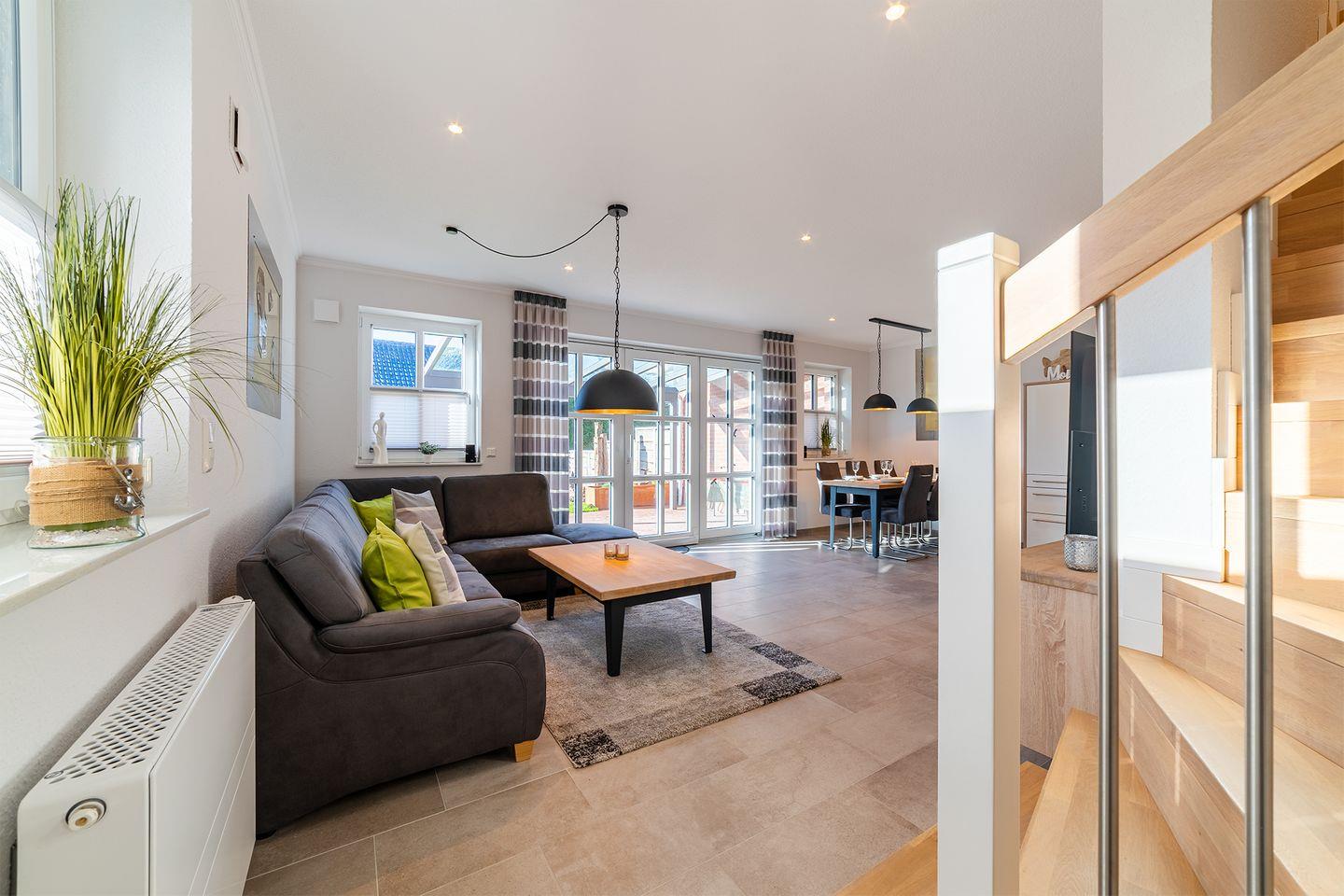Wohnbereich: Der große Wohn- und Essbereich mit einer umfassend ausgestatteten Küche bildet das Herzstück des Hauses – ideal für gemeinsame Stunden.