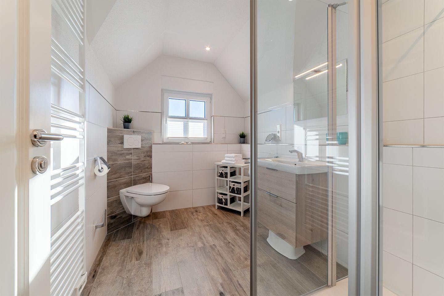Badezimmer 1: Mit Dusche im Obergeschoss.