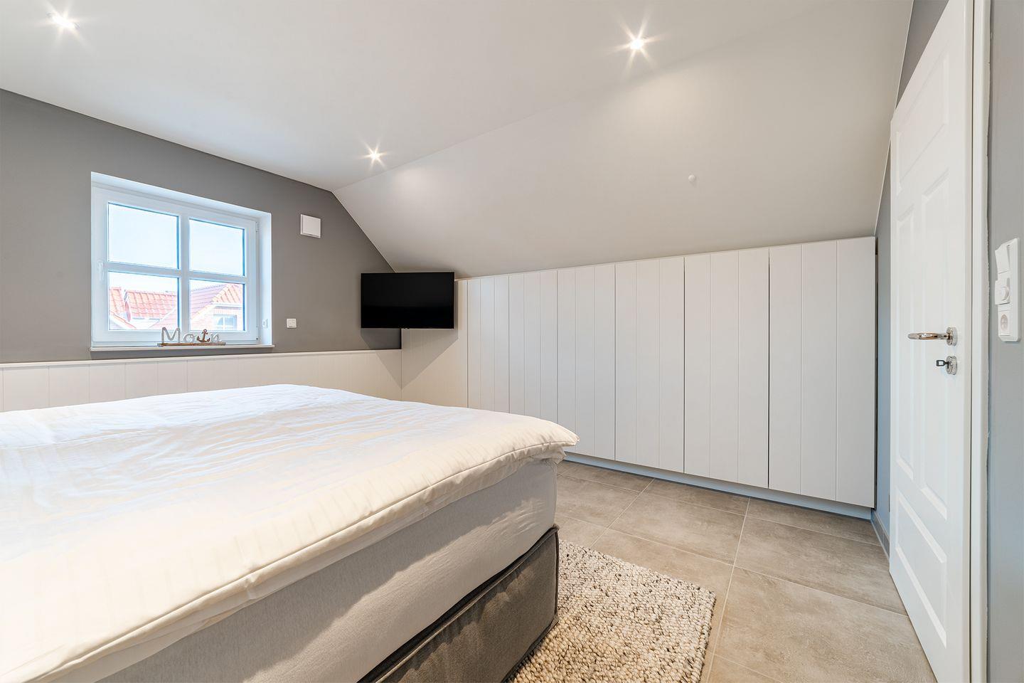EG Schlafzimmer mit Boxspring-Doppelbett (180x200 cm) und TV