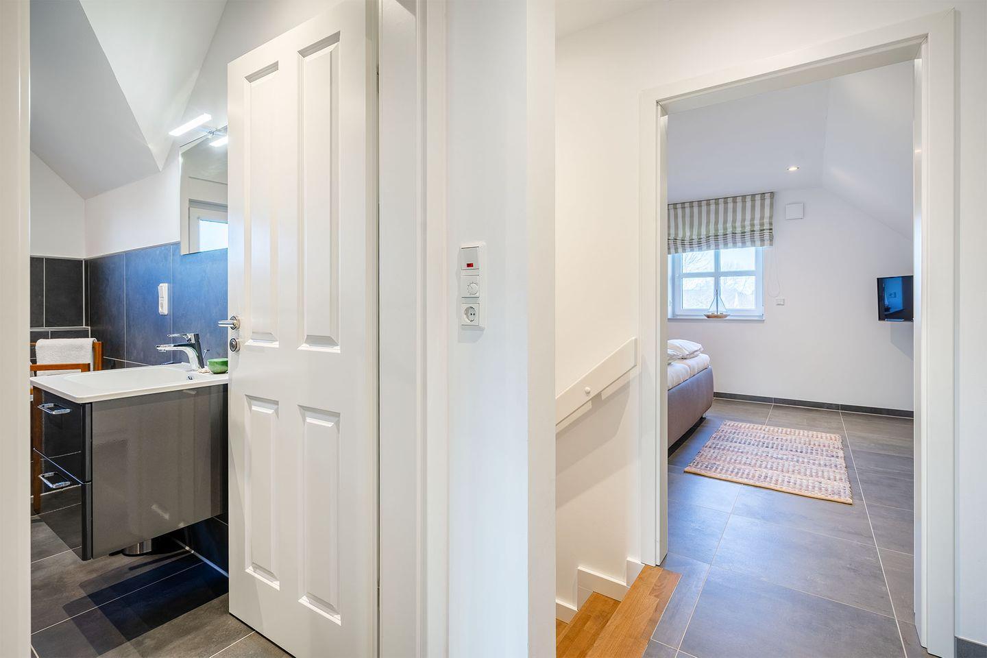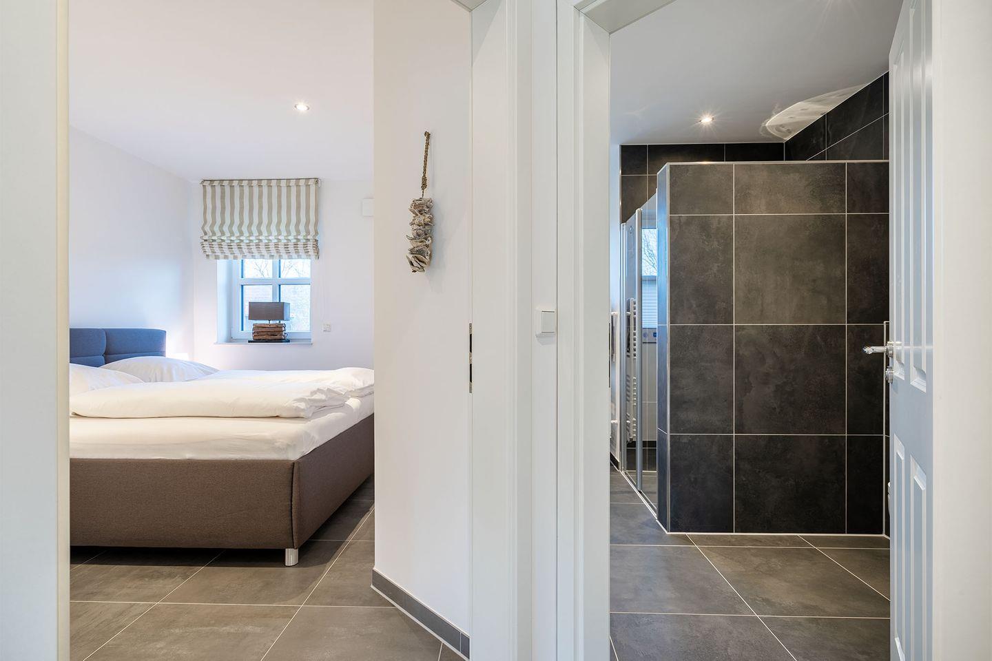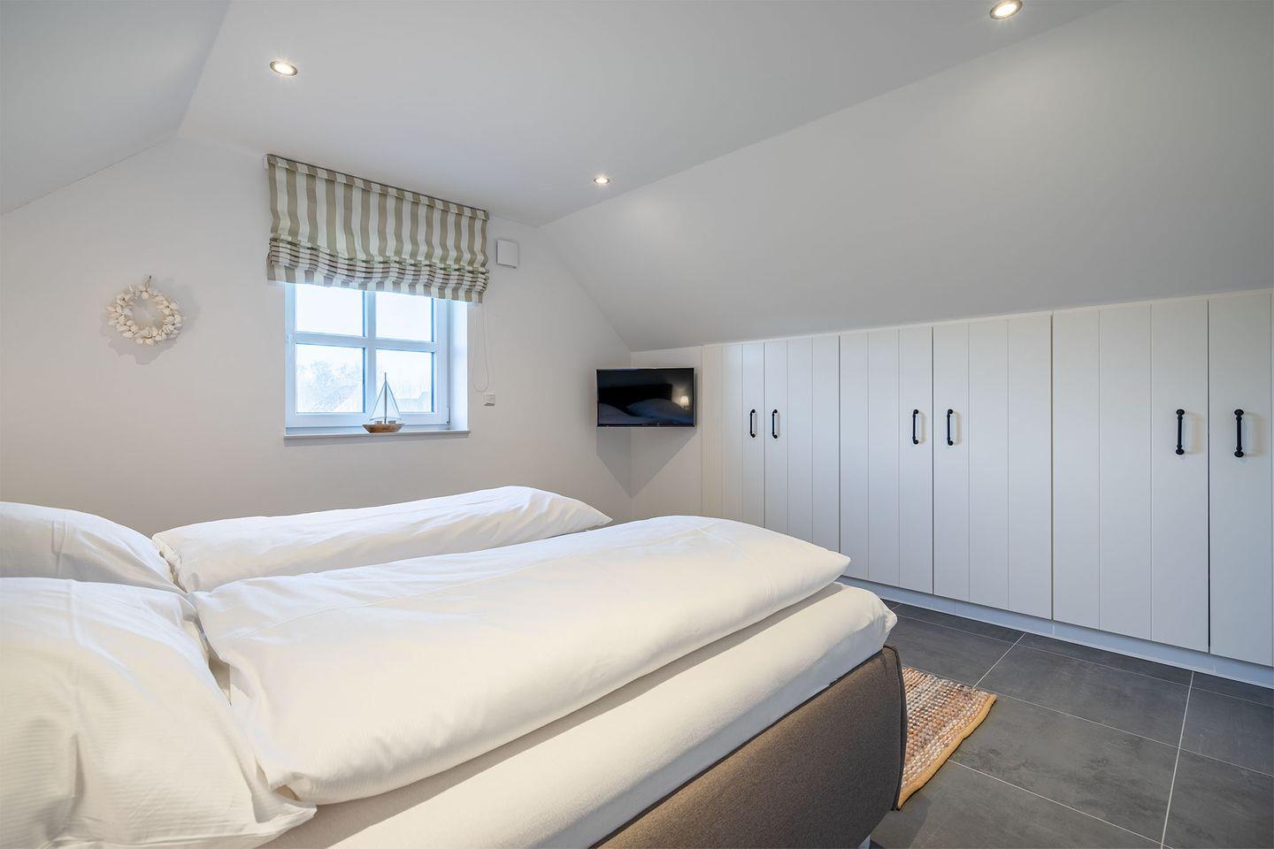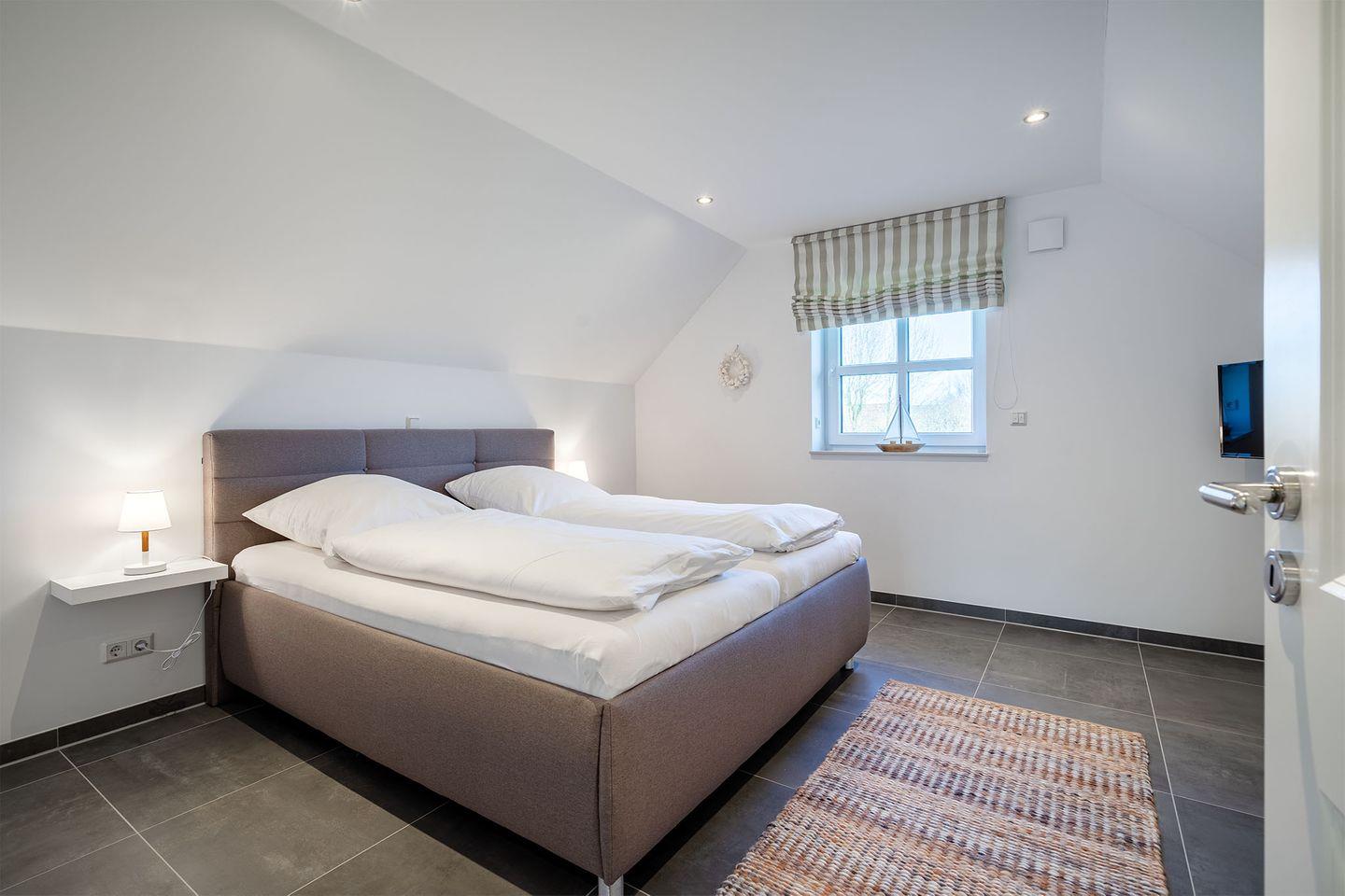 Das Haus bietet zwei Schlafzimmer, jeweils mit einem Doppelbett (180x200 cm), eines im Obergeschoss und das andere im Erdgeschoss, für optimalen Schlafkomfort.