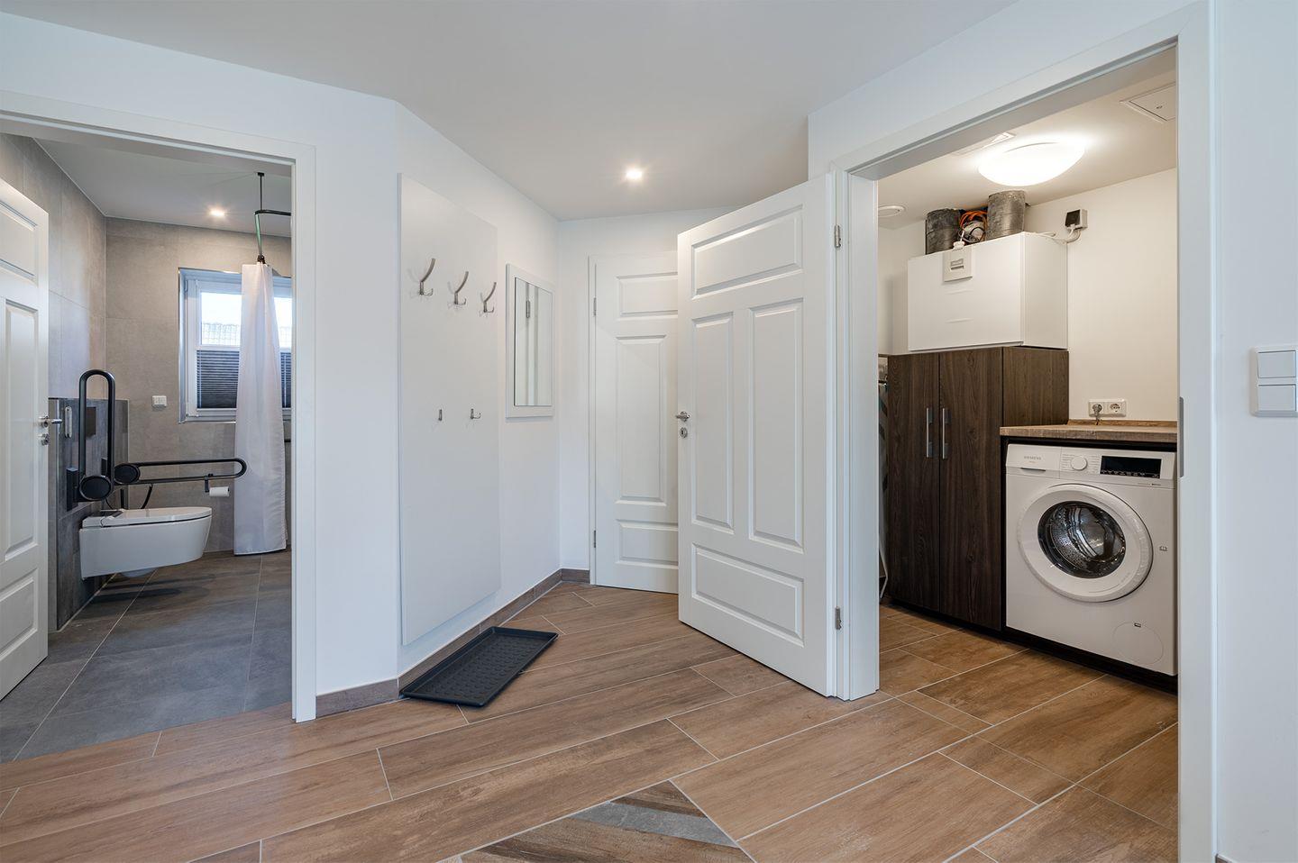 Lüftungs- und Heizsystem: Ein automatisches Belüftungssystem und Fußbodenheizung im gesamten Wohnbereich sorgen für ein angenehmes und allergikerfreundliches Raumklima.