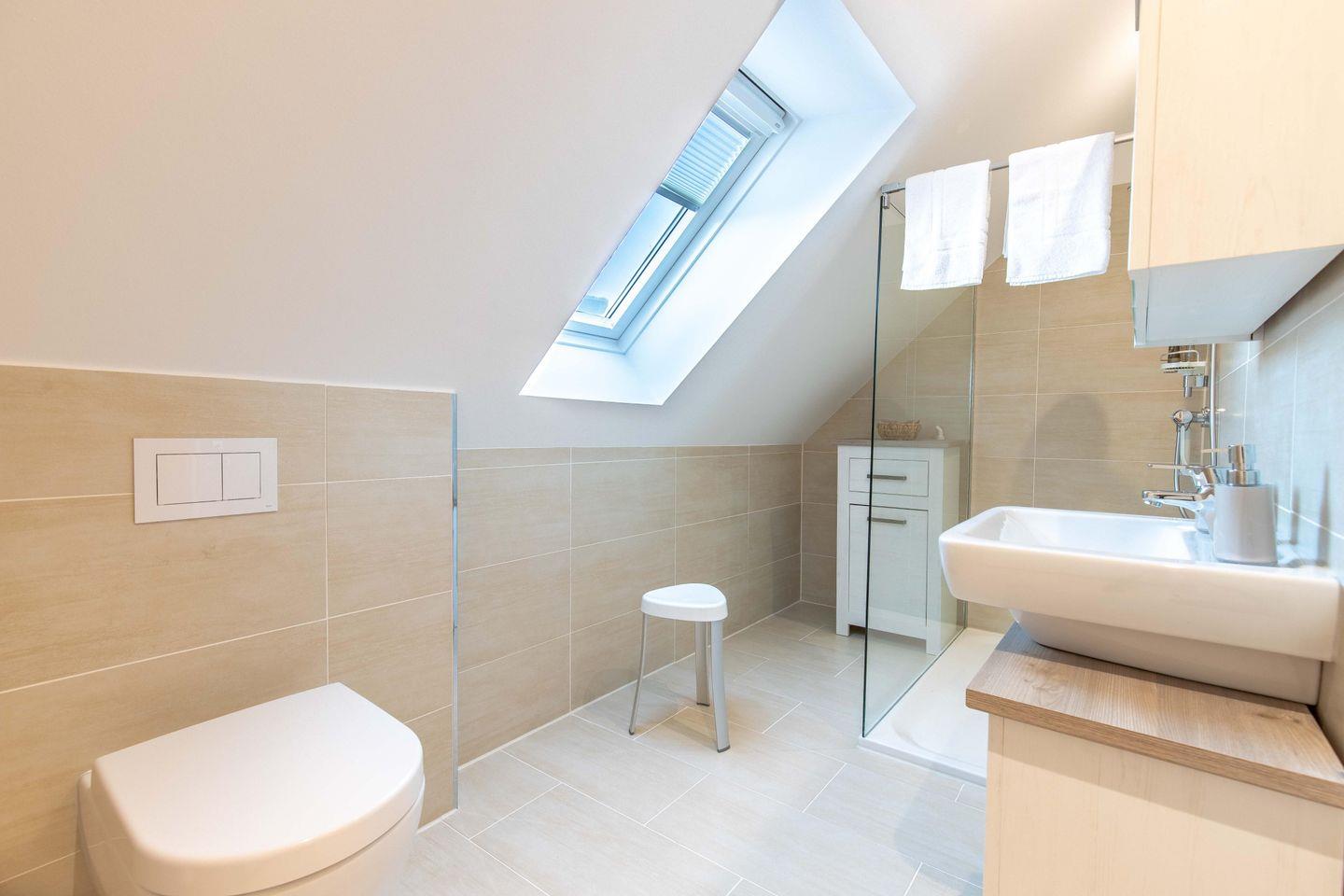 Das neue Badezimmer bietet alles, was Sie für Ihre tägliche Pflege benötigen.