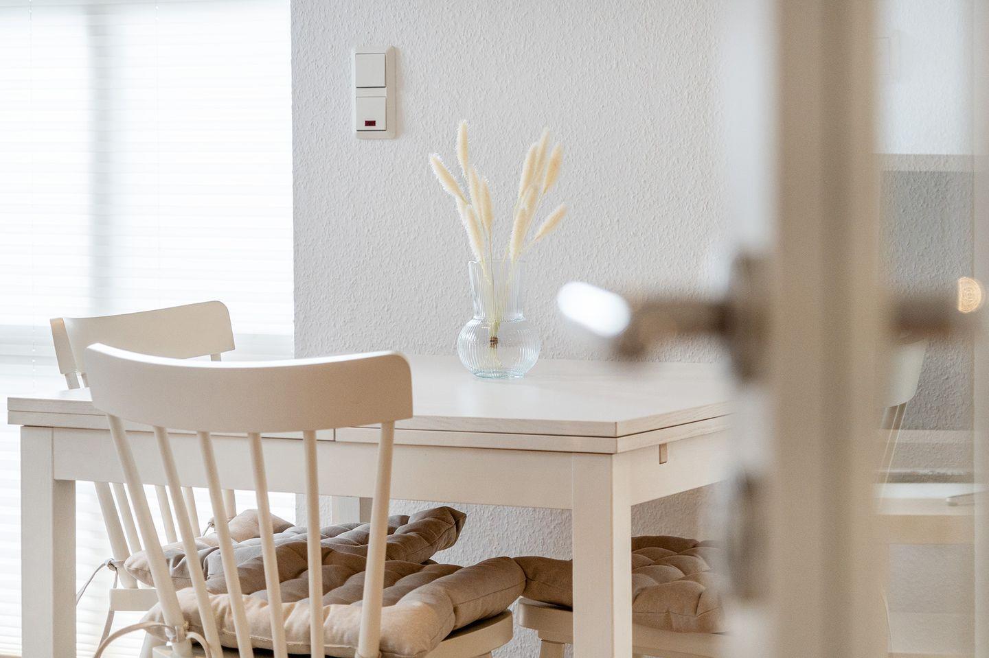 Der offene Wohn-Essbereich lädt zum Verweilen ein. Hier können Sie sich in der modernen Küche mit allem, was Sie zum Kochen oder für ein gemütliches Frühstück brauchen, austoben. Durch die bodentiefen Fenster ist der Raum lichtdurchflutet, was eine angenehme Wohlfühl-Atmosphäre schafft. Vom Wohnzimmer aus gelangen Sie direkt auf die Terrasse und den kleinen Garten, der im Sommer zum Entspannen einlädt.