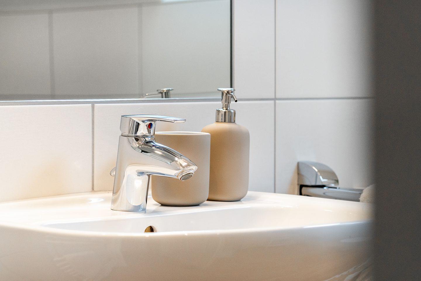 Das Bad ist mit einer bodengleichen begehbaren Dusche ausgestattet und bietet Ihnen alles, was Sie für Ihre morgendliche Erfrischung benötigen.