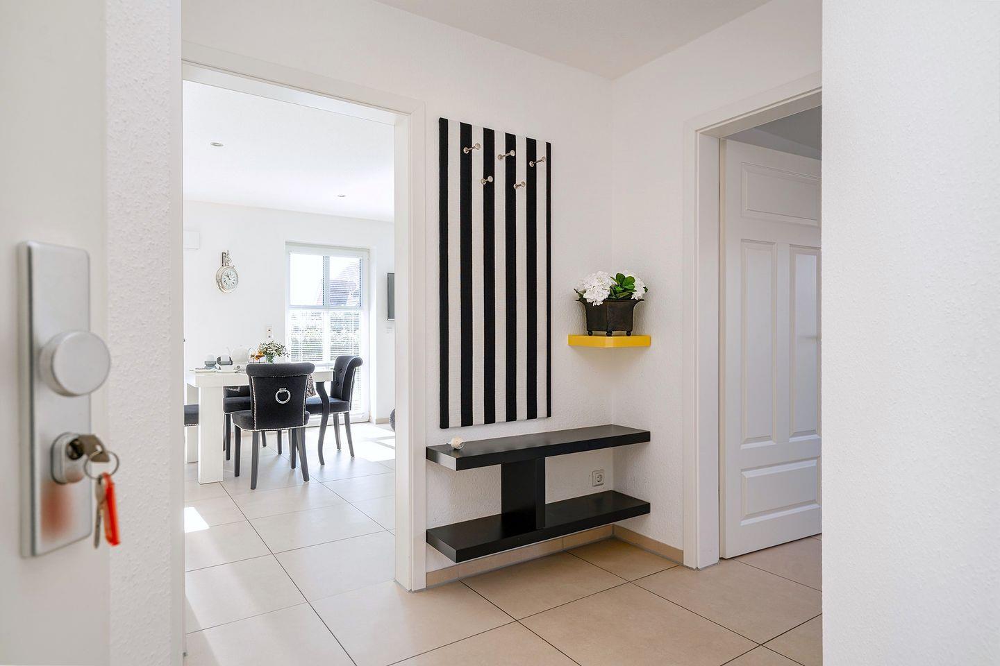 Die Wohnung verfügt außerdem über Annehmlichkeiten wie eine möblierte Terrrasse mit Sonnenliegen, überdachten Fahrradstand mit Anschließ- und Lademöglichkeit für E-Bikes, einen eigenen Parkplatz direkt am Haus, elektrische Jalousien und Insektenschutzgitter.