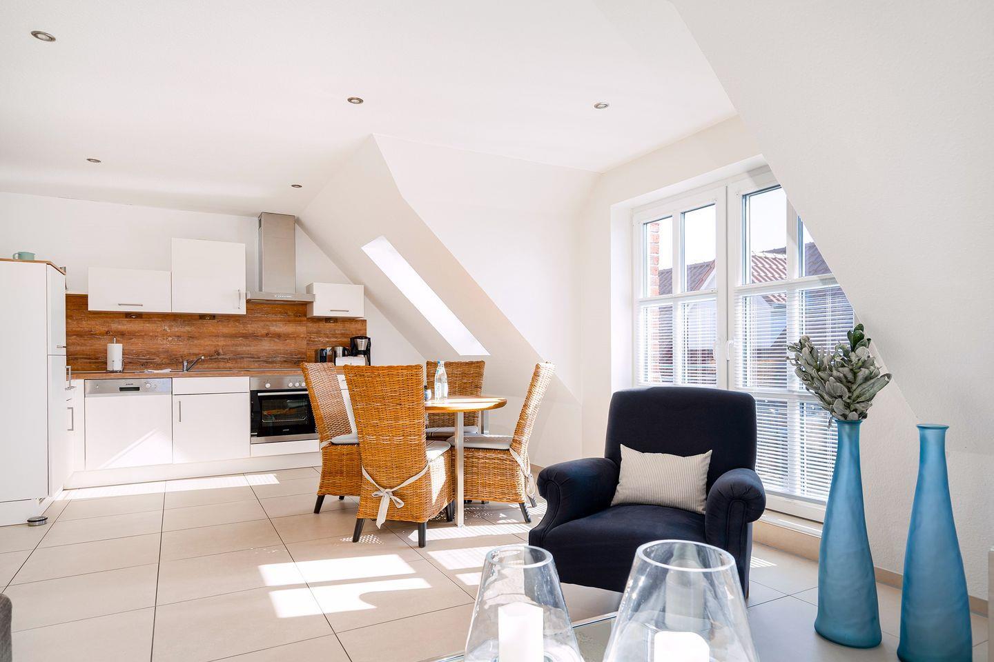Die Obergeschosswohnung "Schuppen deluxe 04" bietet Ihnen eine ruhige, aber dennoch zentrale Lage im Ortskern von Greetsiel. Mit einer modernen und geschmackvollen Einrichtung wird diese Ferienwohnung zu einem echten Rückzugsort, an dem Sie sich rundum wohlfühlen können.