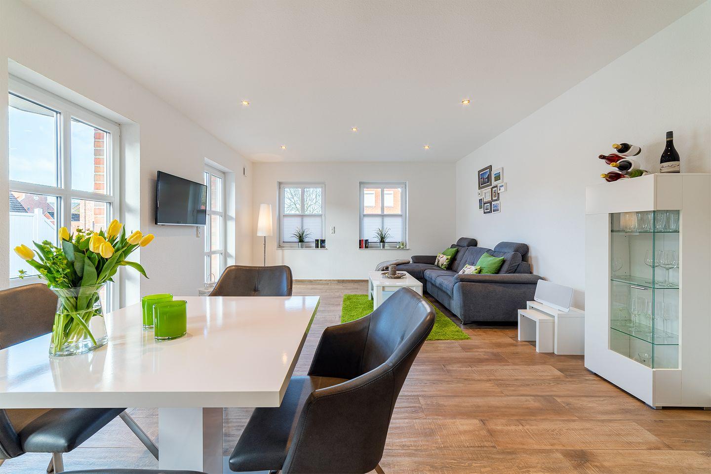Erleben Sie die Ruhe und Schönheit der Deiche in unserer hochwertig ausgestatteten Ferienwohnung. Genießen Sie den modernen Wohnbereich mit bodentiefen Fenstern und die Süd-Terrasse mit Strandkorb. Ihr Urlaubsglück steht bei uns an erster Stelle - wir sind jederzeit für Sie da, um sicherzustellen, dass keine Wünsche offen bleiben.