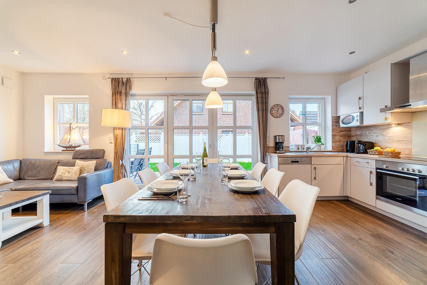 Willkommen in diesem modernen Ferienhaus in Greetsiel, das mit drei Schlafzimmern, zwei davon mit TV, und einer großzügigen Terrasse mit Strandkorb ausgestattet ist. Der Wohn-Essbereich mit Ofen und integrierter Küche lädt zu geselligen Stunden ein. Die hochwertige Ausstattung umfasst Fußbodenheizung, bodengleiche Duschen, freies WLAN, elektrische Rollläden und Fliegengitter. Ein abschließbarer Abstellraum für Fahrräder und ein PKW-Stelllplatz runden das Angebot ab.
