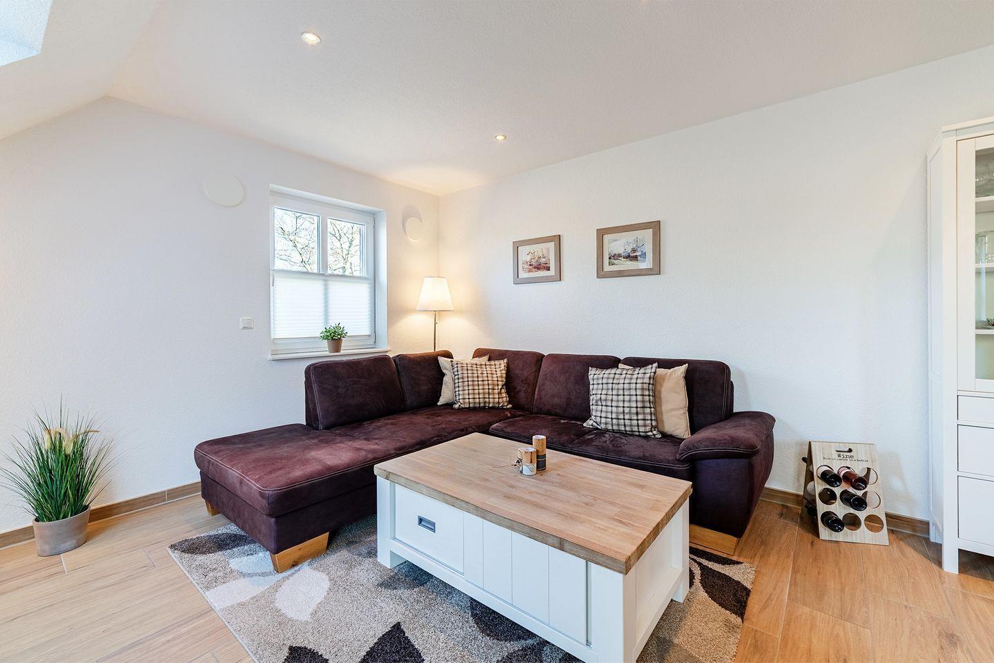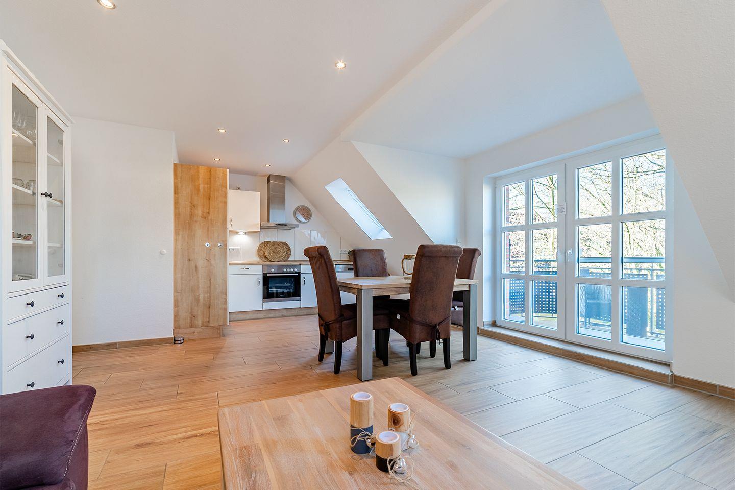 Der gemütliche Wohnraum mit einem kombinierten Küchen- und Essbereich lädt zum Entspannen und gemeinsamen Verweilen ein.