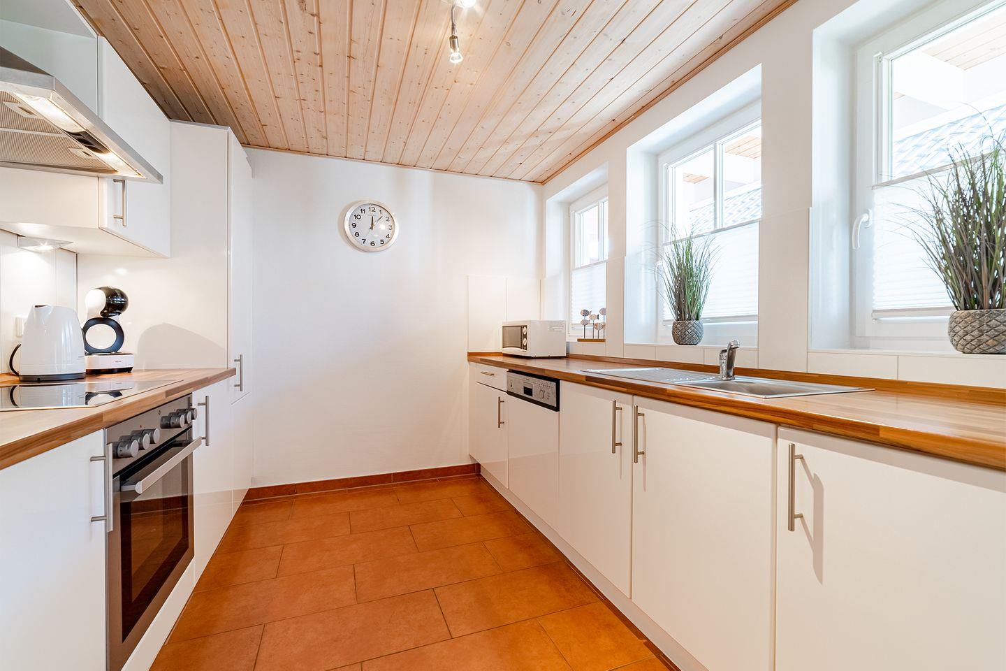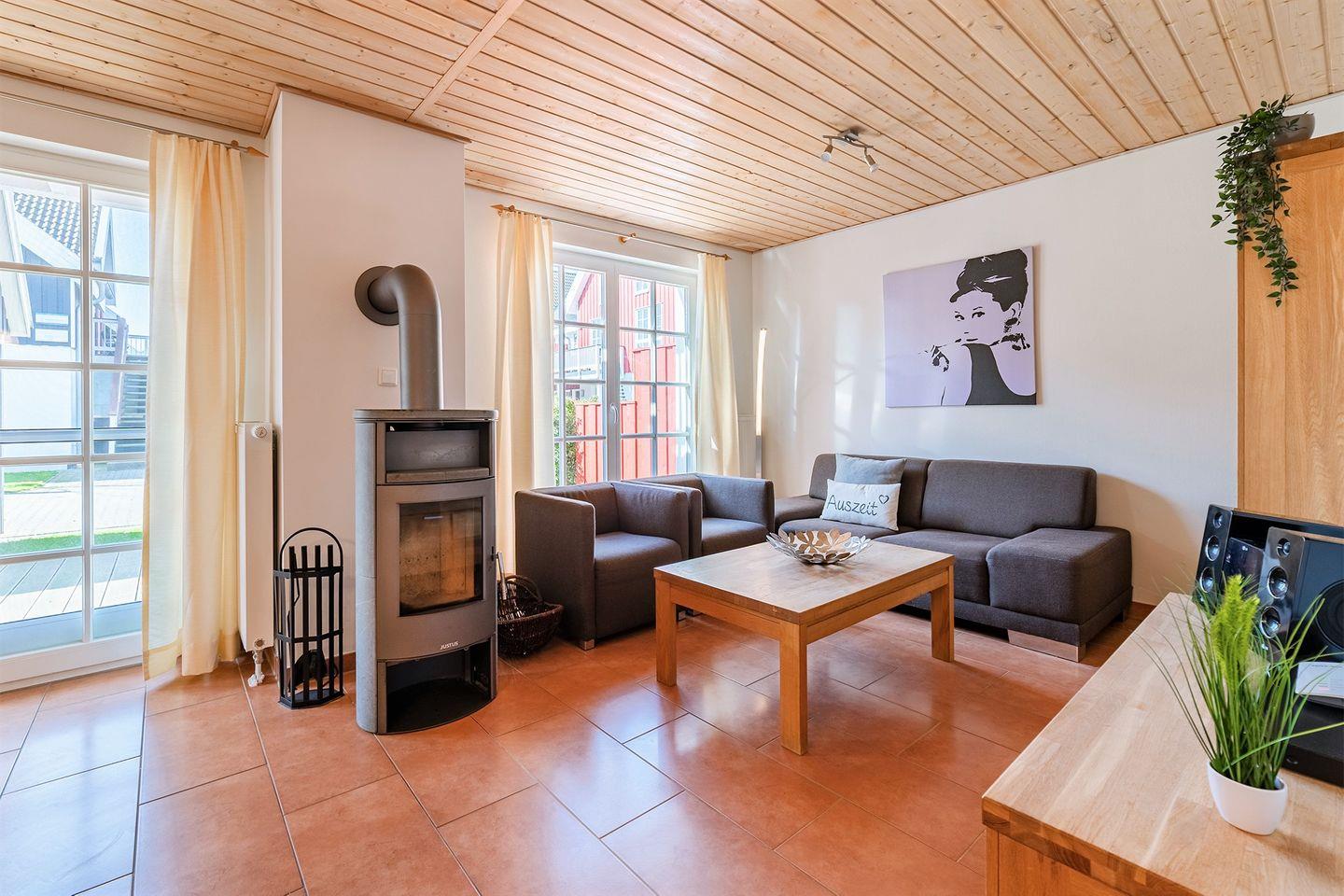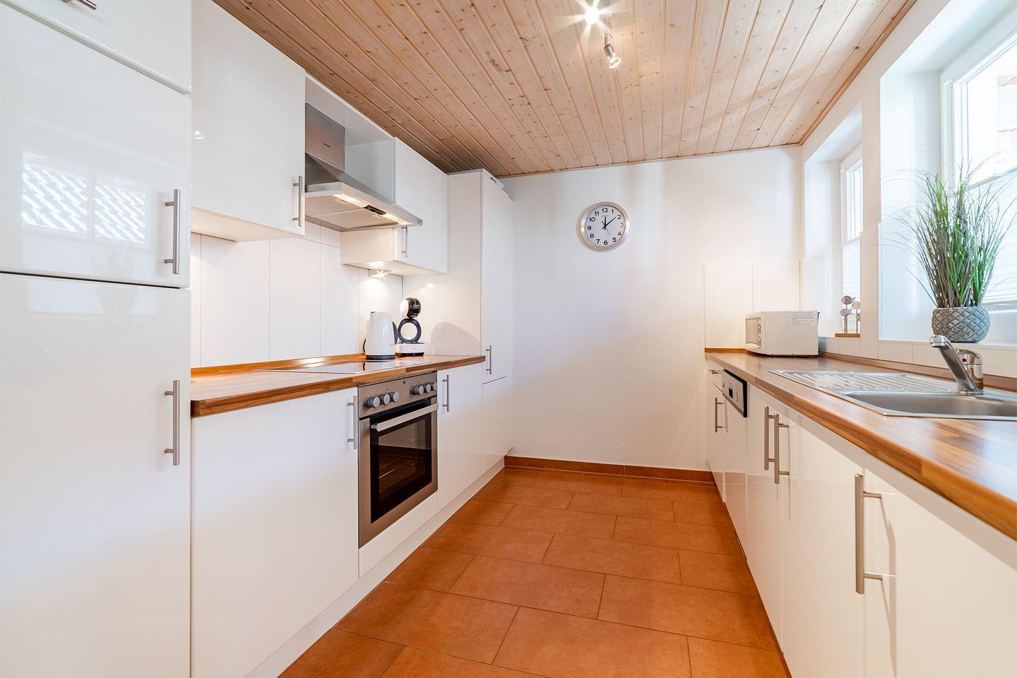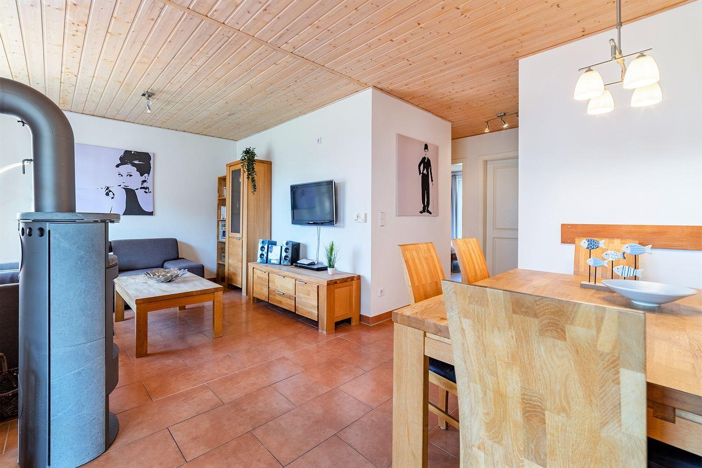 Die Wohnung ist modern und hochwertig eingerichtet, sodass keine Wünsche offen bleiben. Sie bietet Ihnen alle Annehmlichkeiten für einen erholsamen und komfortablen Urlaub. Der Wohnraum verfügt über einen Ofen, der besonders an schlechten Tagen für eine gemütliche Atmosphäre sorgt.