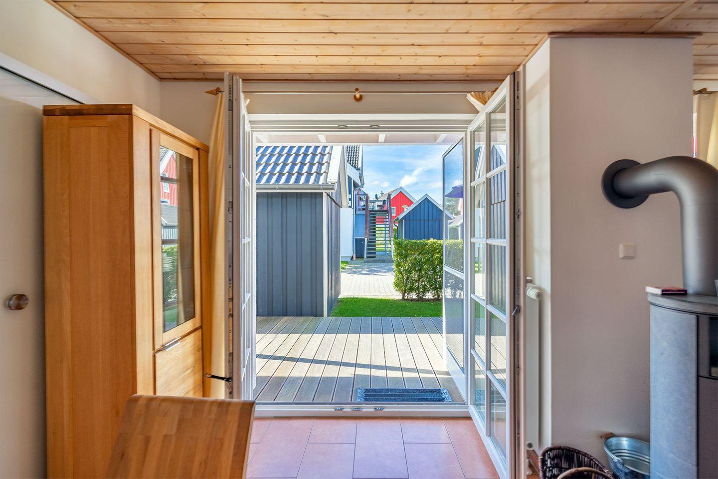 Das Möwennest ist eine moderne Ferienwohnung im Hafendorf mit zwei Schlafzimmern, einem lichtdurchfluteten Wohnraum, einer voll ausgestatteten Küche und einem komfortablen Badezimmer. Die Wohnung verfügt über eine schöne Terrasse mit Elektrogrill und ein abschließbares Gartenhaus für Fahrräder. Mit hochwertiger Einrichtung, einem Ofen für gemütliche Stunden und der Möglichkeit, ein Wäschepaket zu buchen, bietet das Möwennest alle Annehmlichkeiten für einen erholsamen Urlaub.