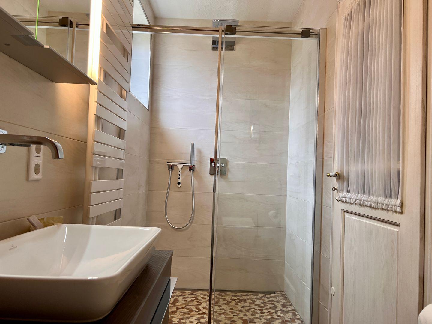 Das Haus erstreckt sich über zwei Etagen und bietet eine durchdachte Raumaufteilung. Im Erdgeschoss erwarten Sie ein beeindruckender Wohn- und Essbereich, ein stilvolles Hauptbad mit bodentiefer Dusche und ein geschmackvoll eingerichtetes Hauptschlafzimmer, das absolute Entspannung verspricht.