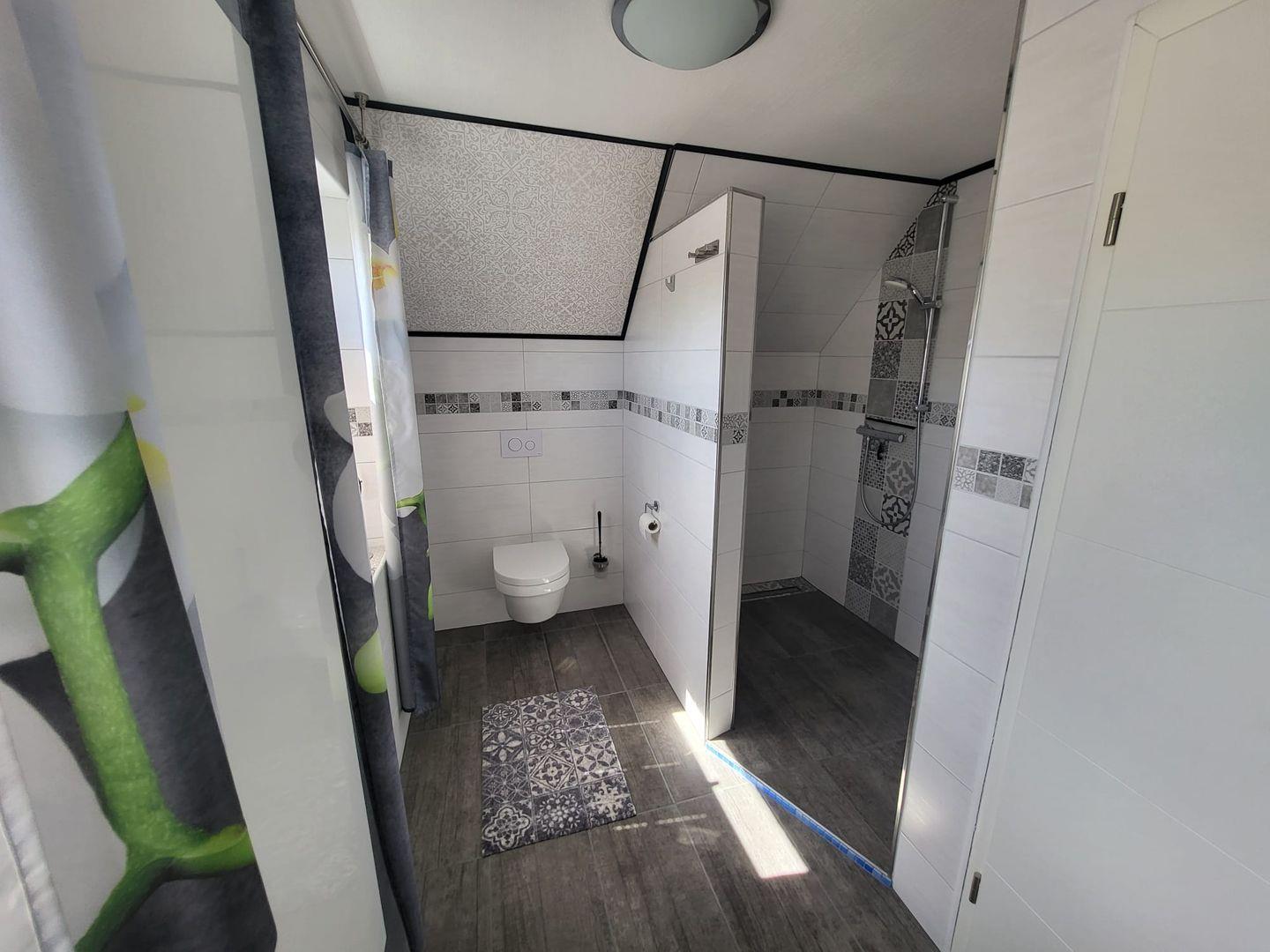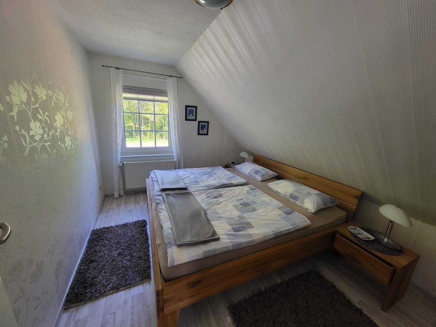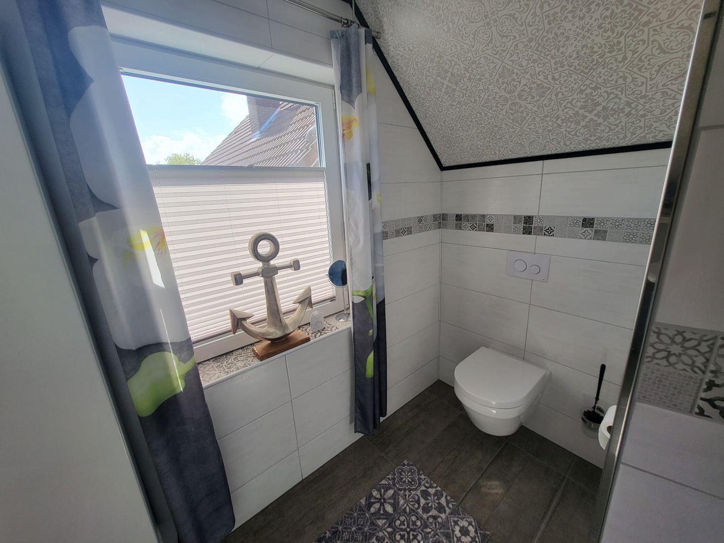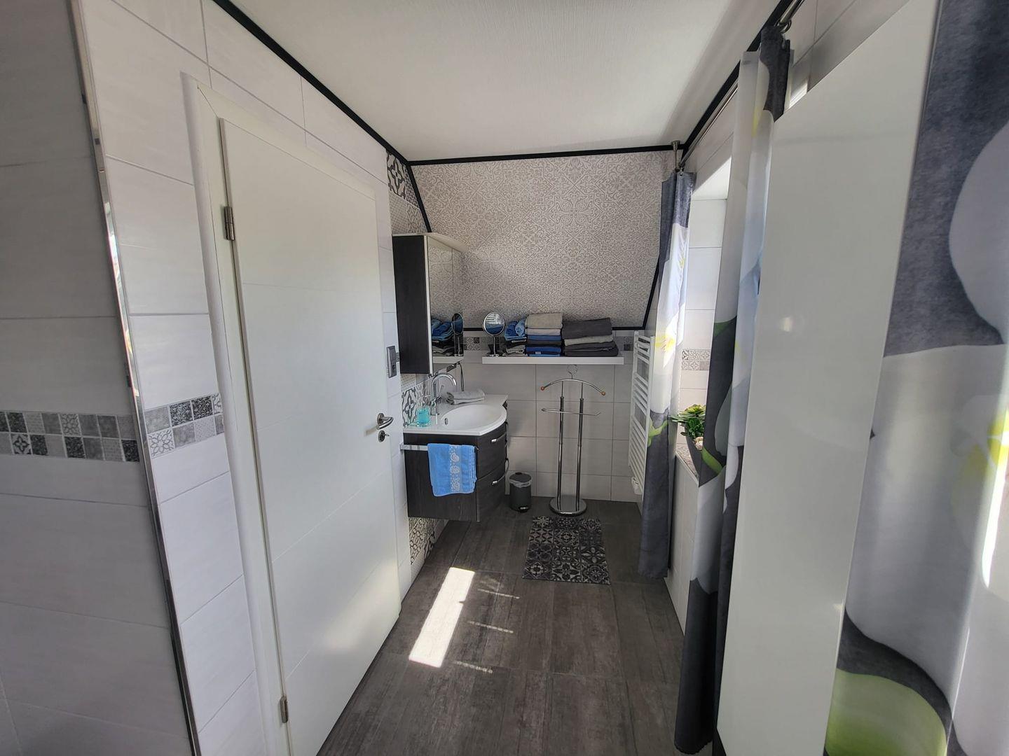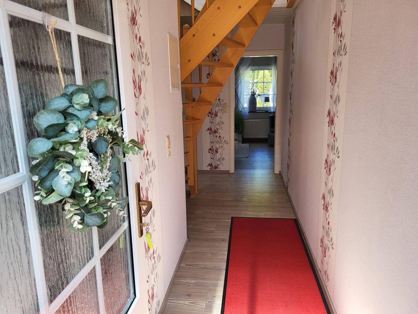 Kommen Sie herein! Vom Flur gelangen Sie in den großzügigen Wohn-/Essbereich. Genießen Sie entspannte Stunden auf dem gemütlichen Sofa mit einem Gläschen Wein und schauen einen schönen Film. Am Esstisch können zubereitete Speisen serviert werden. Die moderne helle Küche ist voll ausgestattet. Hier hat der Hobbykoch seine Freude. Ein Gäste-WC befindet sich ebenfalls im Erdgeschoss. In der oberen Etage erwarten Sie 2 helle Schlafzimmer, eines mit einem Doppelbett und eines mit 2 Einzelbetten. Die Eigentümer vermieten das Objekte nur an max. 2 Gäste! Das Bad ist eine kleine Wellnessoase. Mit heller Ausstattung überzeugt das Bad u. a. mit einer begehbaren großen Dusche und 2 Fenstern.