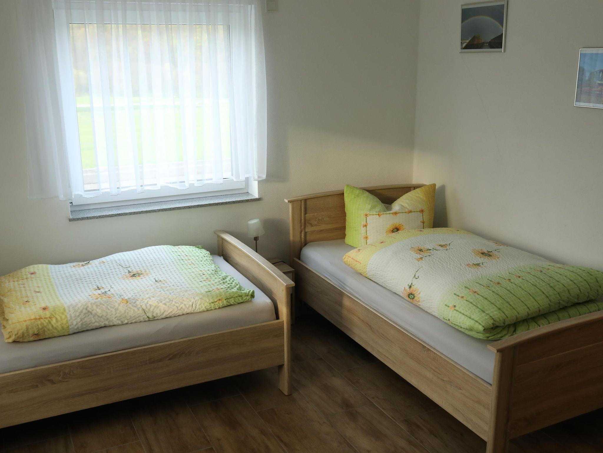 Unsere Ferienwohnung hat eine Größe von 160 qm mit 4 Zimmen, davon 2 separate Schlafzimmer (1 Doppelbett, 2 Einzelbetten) sowie eine Schlafcouch oder Zustellbett nach Bedarf.