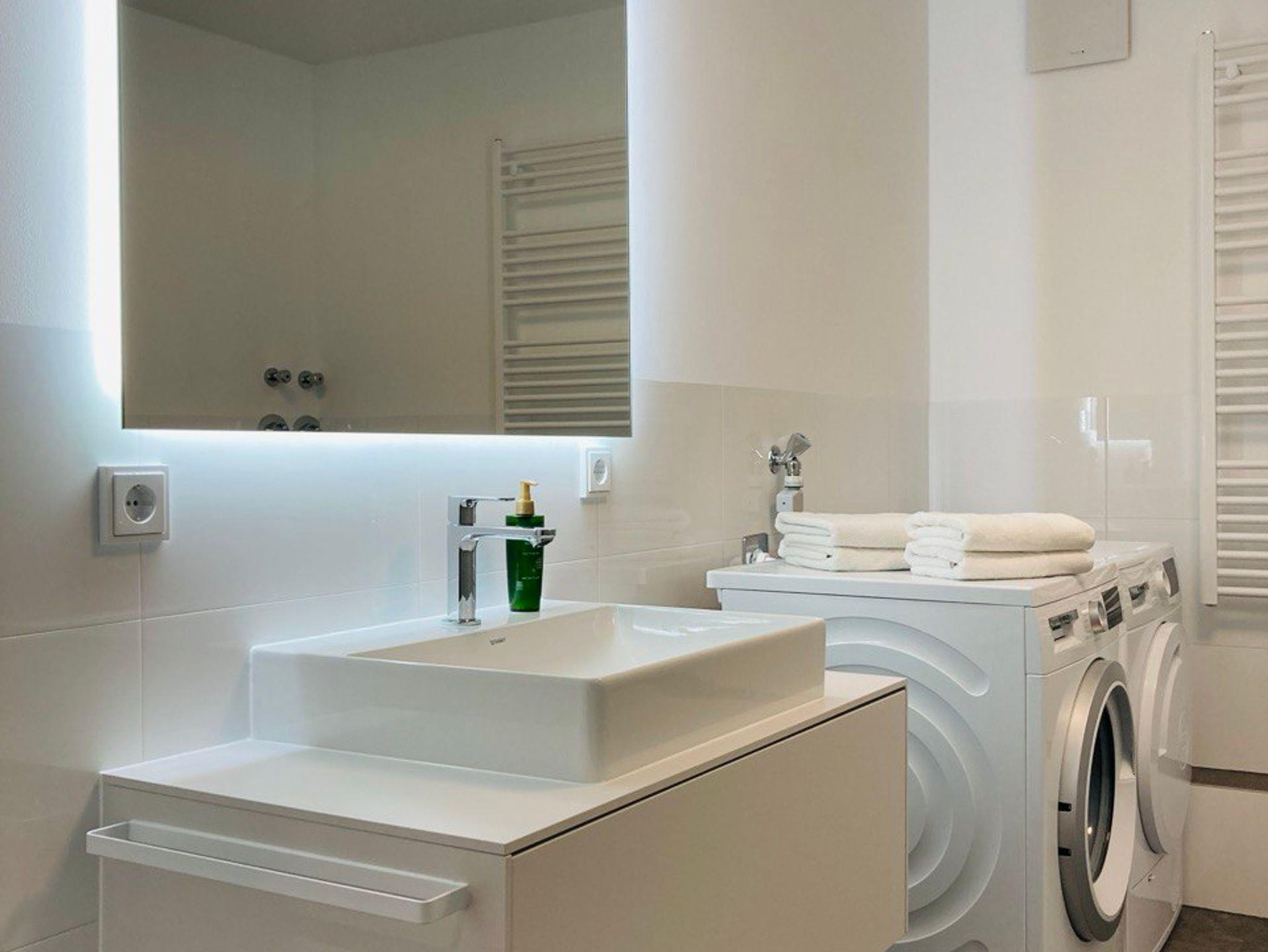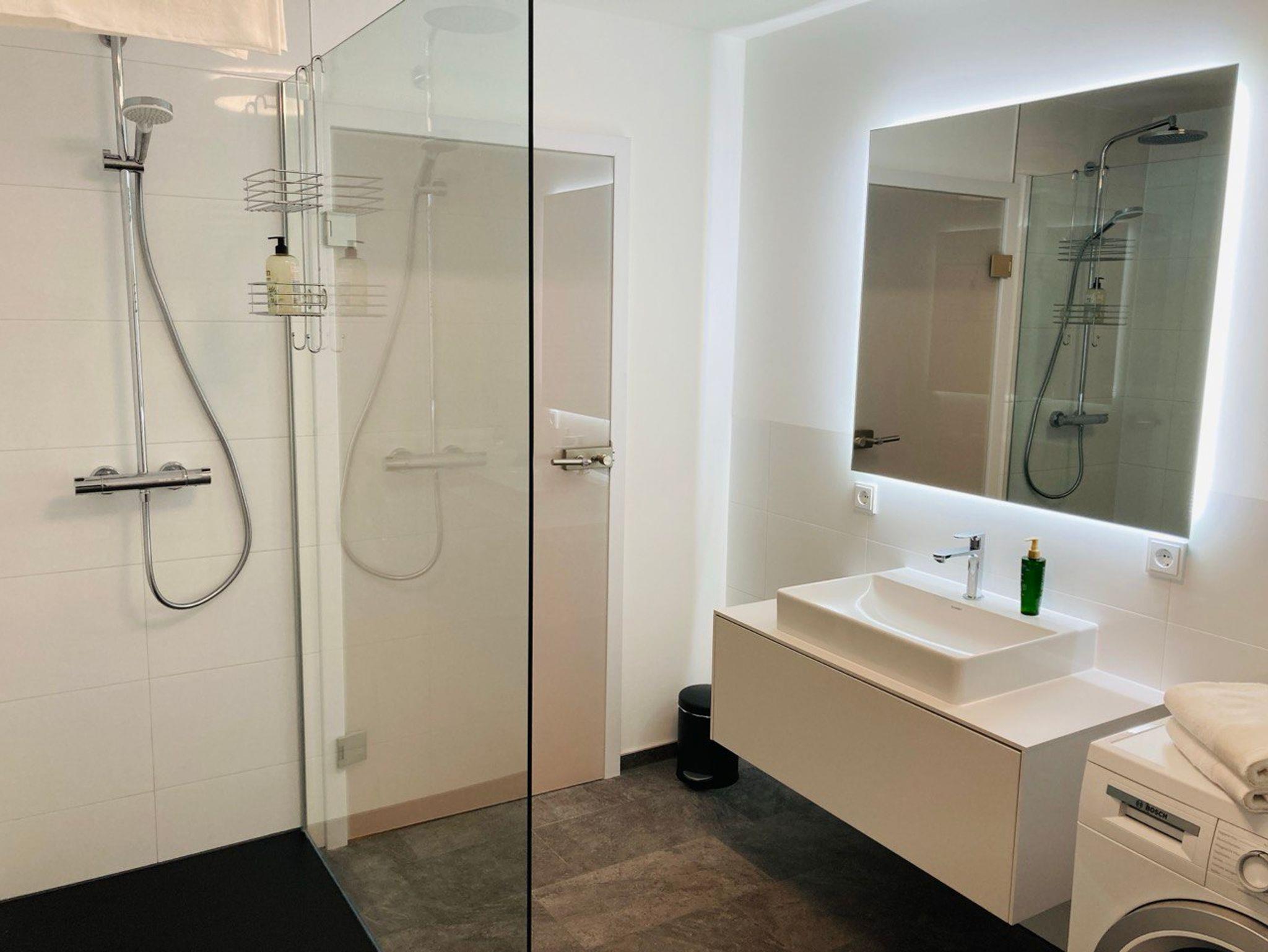 Das Studio-Apartment ist modern und hochwertig ausgestattet. Auf großzügigen 110qm befinden sich vier Schlafzimmer. Diese sind jeweils mit einem französischen Doppelbett und je einem Flachbild-TV ausgestattet. Drei Schlafzimmer bieten jeweils zusätzlich noch eine (Schlaf)Couch, die entweder als Sofa benutzt oder auf Wunsch als Einzelbett bzw. franz. Doppelbett vorbereitet werden können. Ein schöner, gemütlicher Balkon lädt zum Verweilen ein. Die (Wohn)Küche ist mit allen wichtigen Küchenutensilien ausgestattet. Auch zwei Esstische befinden sich in der Wohn- /Essküche. Das eine Badezimmer ist mit Dusche, WC, Waschmaschine und Kondenstrockner ausgestattet, das zweite Badezimmer ist mit großer Dusche sowie WC ausgestattet. Die gesamte Wohneinheit befindet sich im 1. Stock. Selbstverständlich sind Bettwäsche und Handtücher inklusive. Das WLAN ist kostenfrei verfügbar.