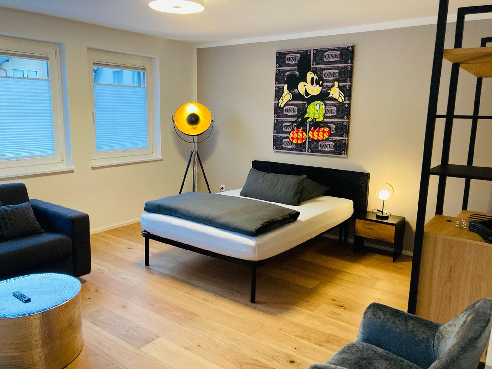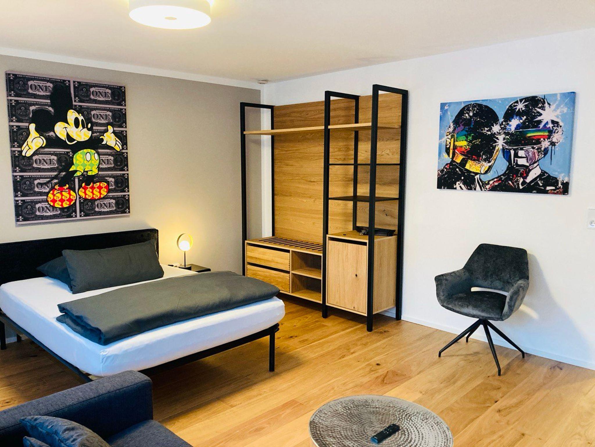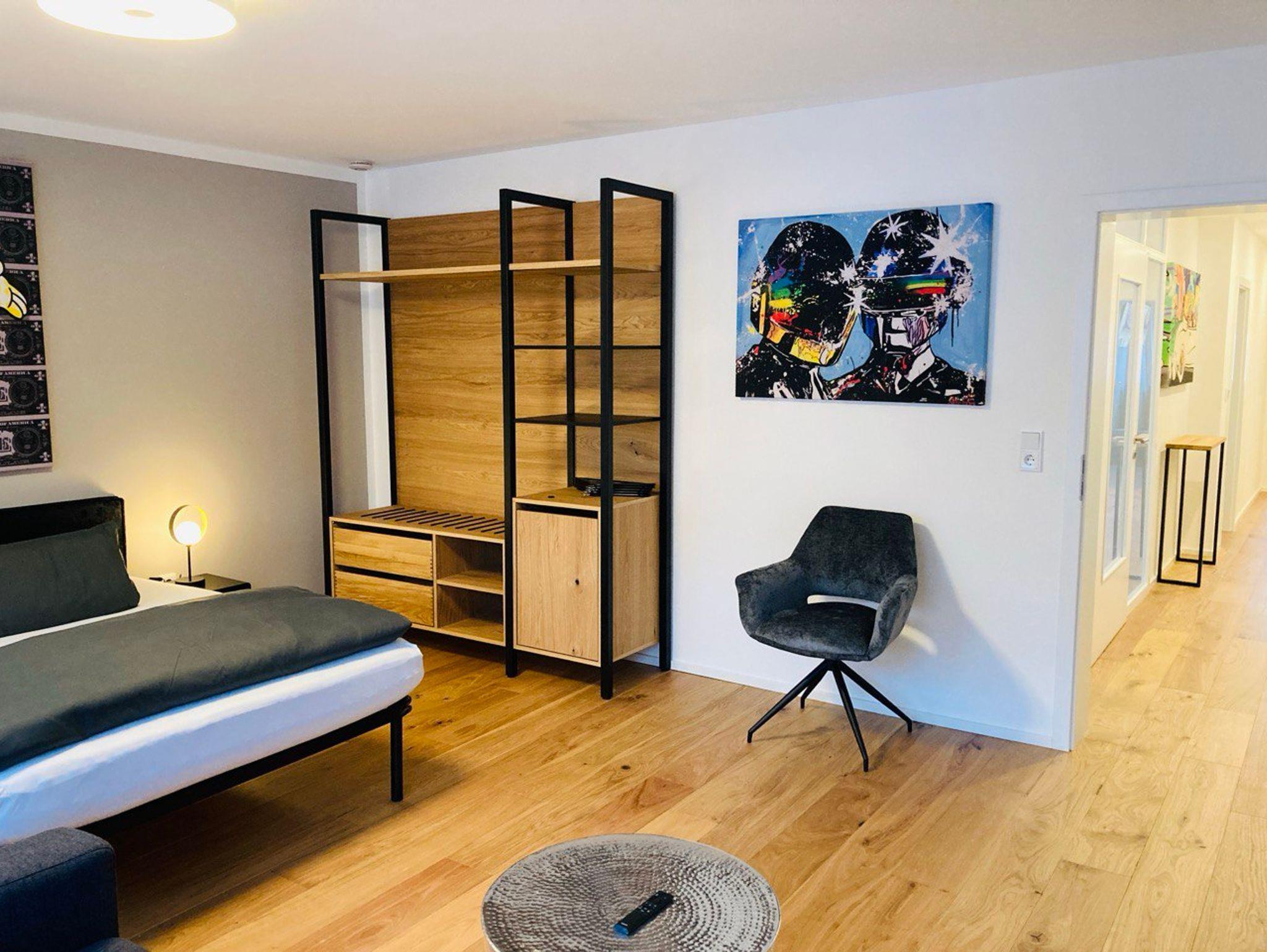 Das Studio-Apartment, modern gestaltet im Atelier-/Studiostil, mit einer Wohnfläche von 110m² befindet sich in Untereuerheim. Die Unterkunft ist mit vier Flachbild-TVs ausgestattet. WLAN nutzen Sie kostenfrei. Das Apartment besteht aus vier Schlafzimmer, einer voll ausgestatteten (Wohn)Küche, einem Ankleideraum und zwei Badezimmer mit WC & Dusche. Ein Kühlschrank und eine Kaffeemaschine sind ebenfalls vorhanden.