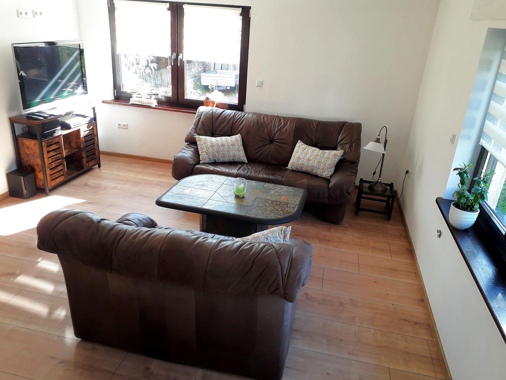 Die 2023 neu renovierte Ferienwohnung liegt im Erdgeschoss unseres Landhauses Grimburg.