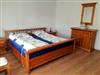 Das Schlafzimmer ist mit einem Doppelbett (200x200cm), einem Kleiderschrank und einer Kommode mit Wandspiegel ausgestattet. Die Betten sind frisch bezogen, zusätzliche Decken und Kopfkissen werden auf Wunsch bereitgestellt.
