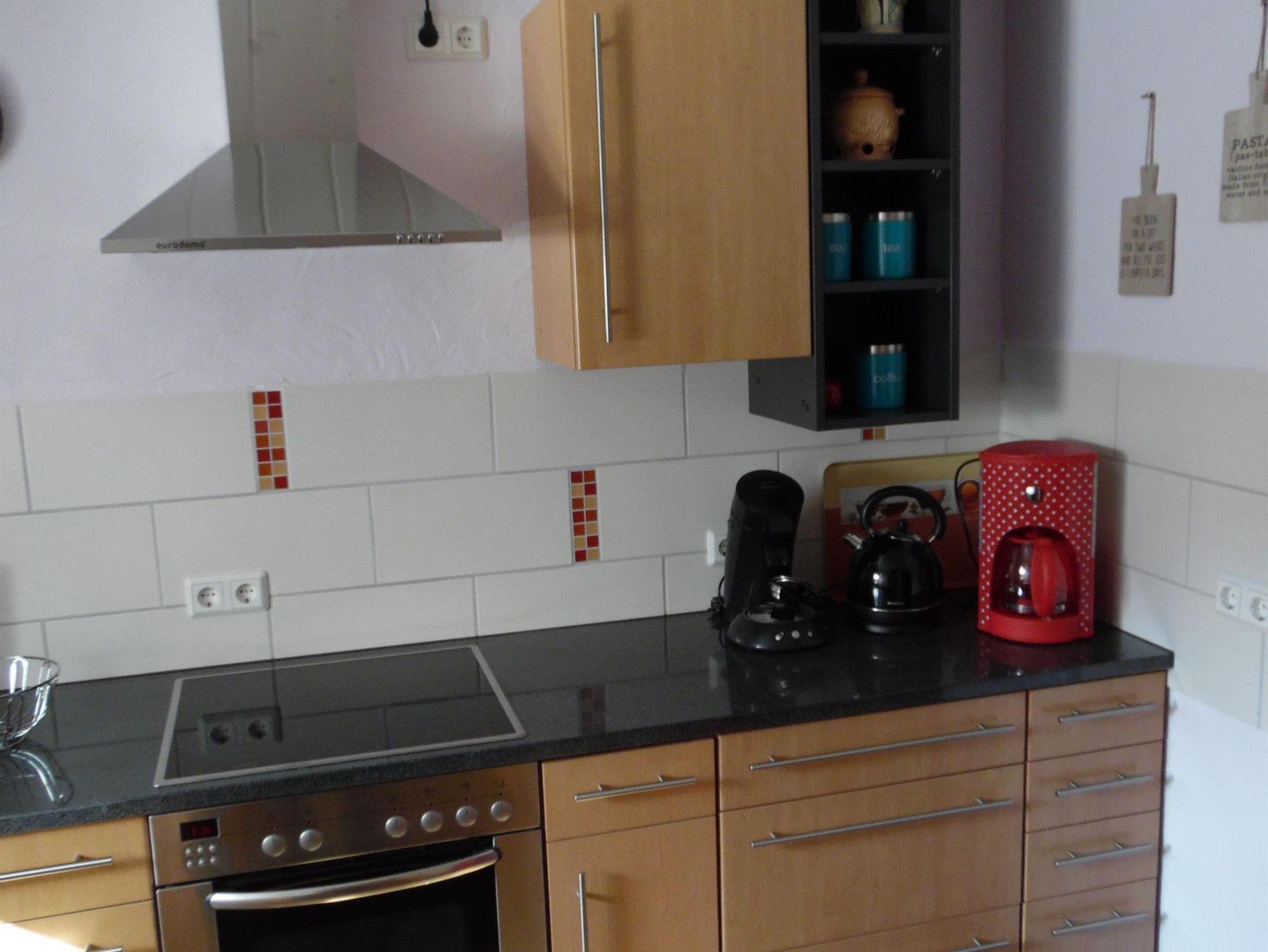 Die Küche ist vollständig ausgestattet. Im Esszimmer befindet sich ein Kachelofen, der in kalten Tagen für wohlige Wärme sorgt.
