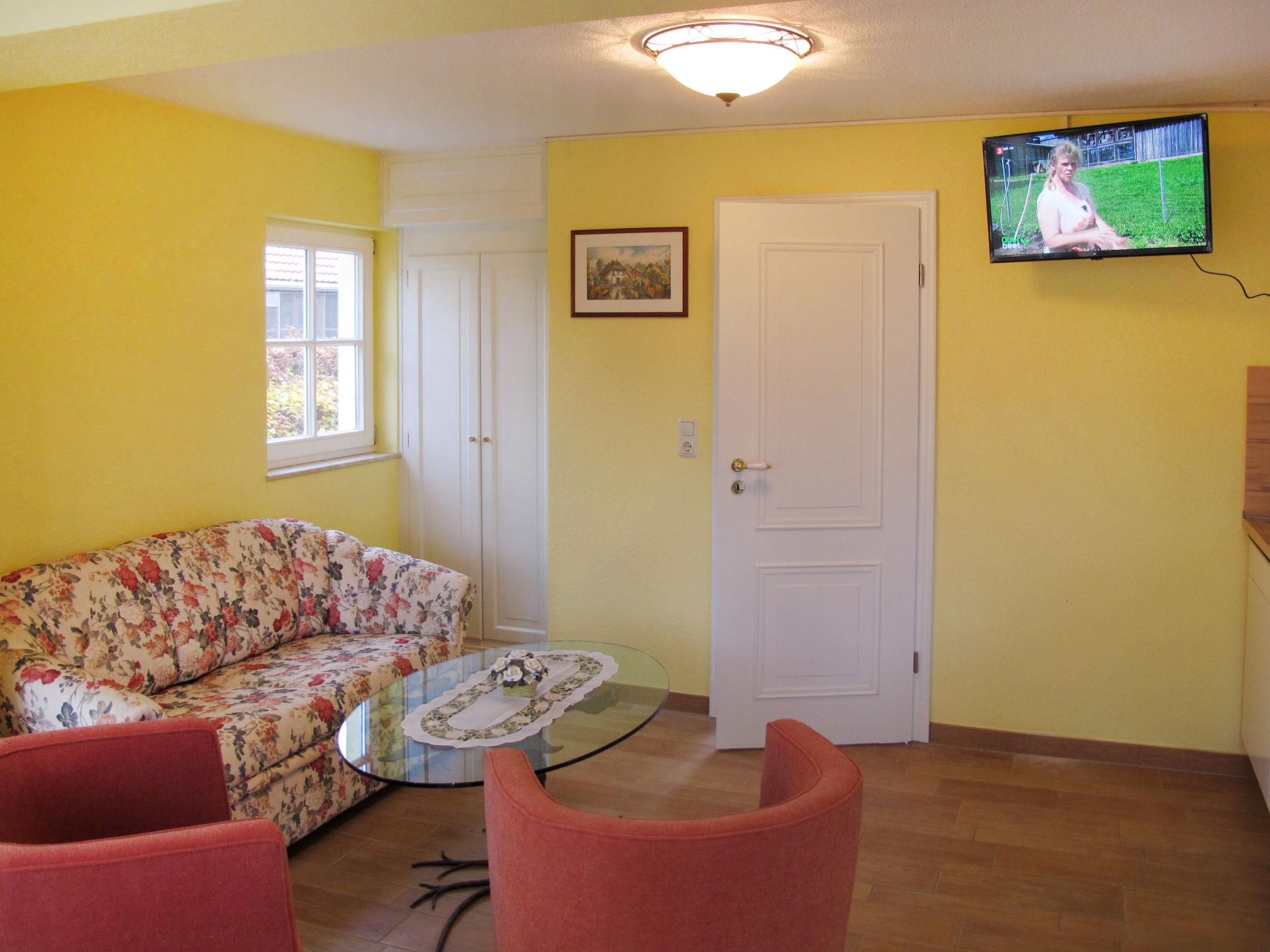 2-room house 55 m2 on 3 levels. Object suitable for 2 adults + 2 children. Modern and cosy furnishings: living/sleeping room with winter garden with 1 double sofabed (130 cm, length 180 cm), dining table and satellite TV (flat screen), radio. Exit to the terrace. Kitchenette (2 ceramic glass hob hotplates, toaster, kettle, microwave, electric coffee machine). Shower/WC. Upper floor: (steep stair), 1 double bedroom. Top floor: (steep stair) open, with sloping ceilings, ceiling height 110 cm with 2 sleeping facilities (75 cm, length 200 cm). Electric heating. Terrace 10 m2. Terrace furniture, barbecue (portable). Facilities: Internet (WiFi, free). Please note: non-smoking house. 1 small pet/ dog allowed. Smoke alarm. Please note: allowed only 2 adults + 2 children. Bed layout is flexible. There are more sleeping options available than the maximum number of people allowed which may, however, not be exceeded.