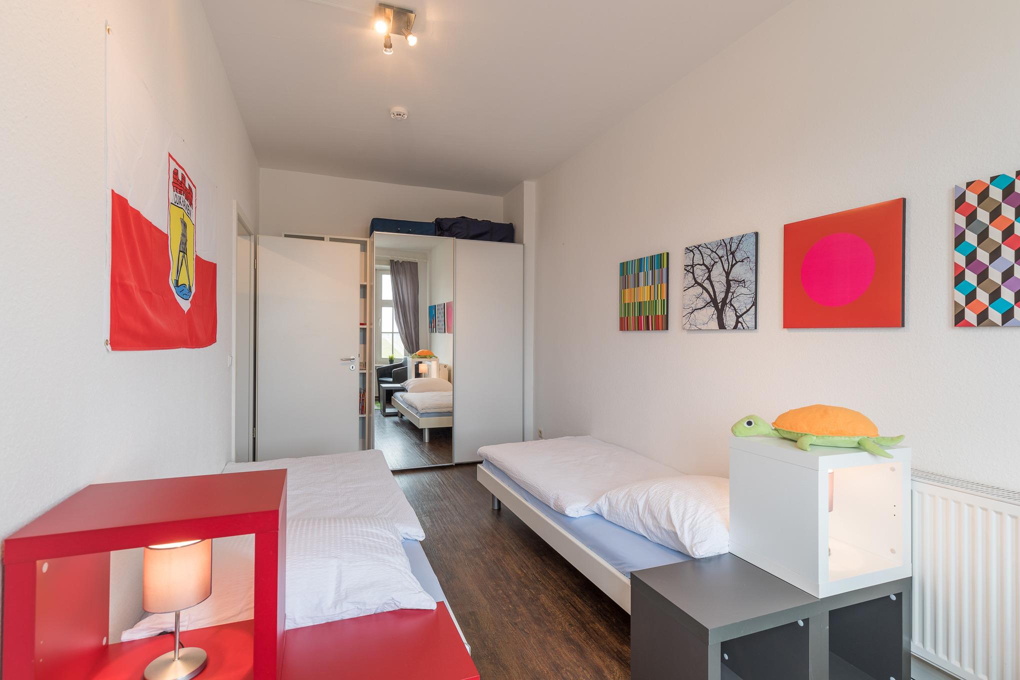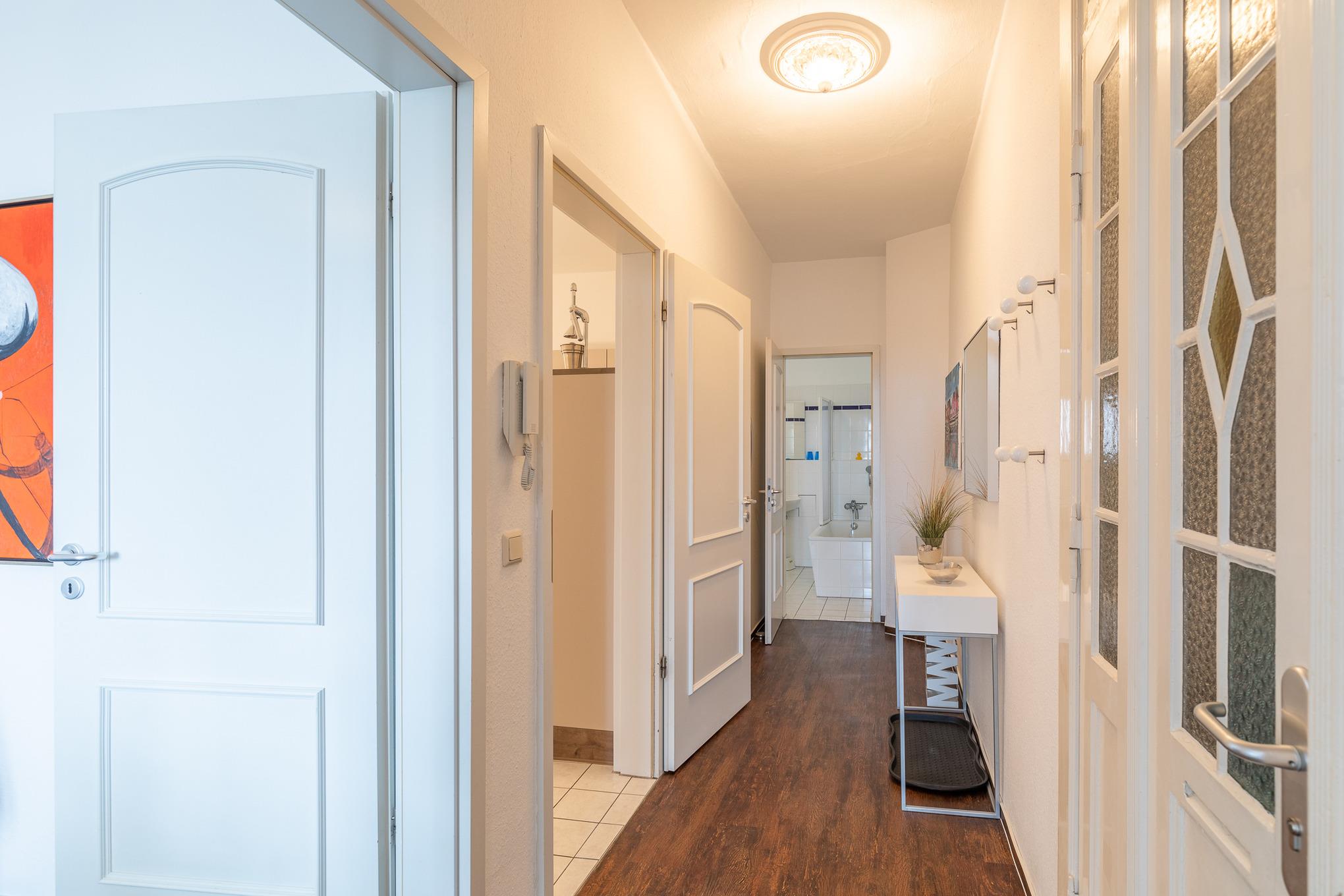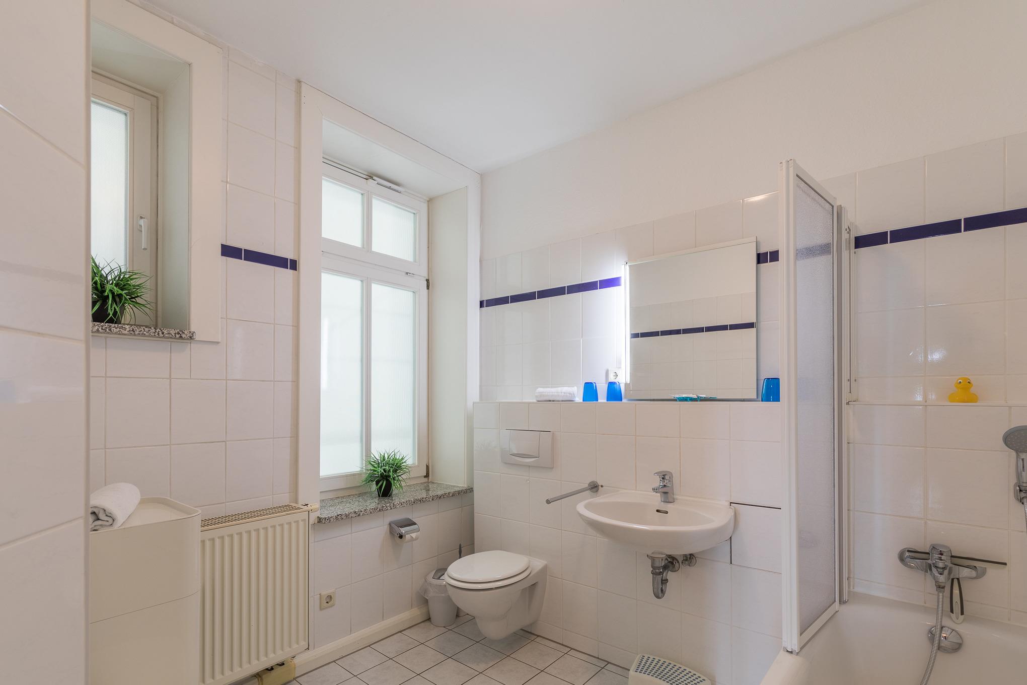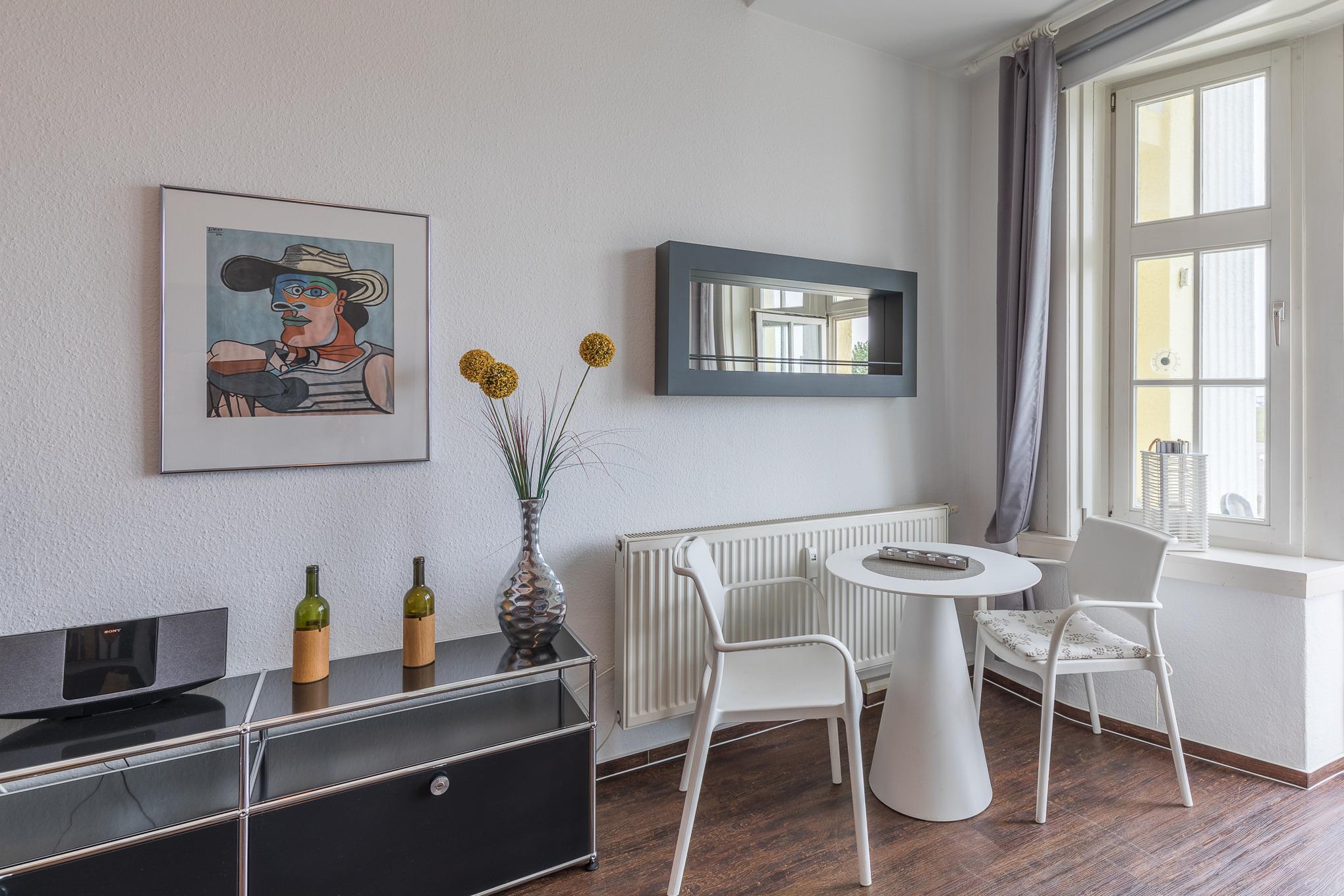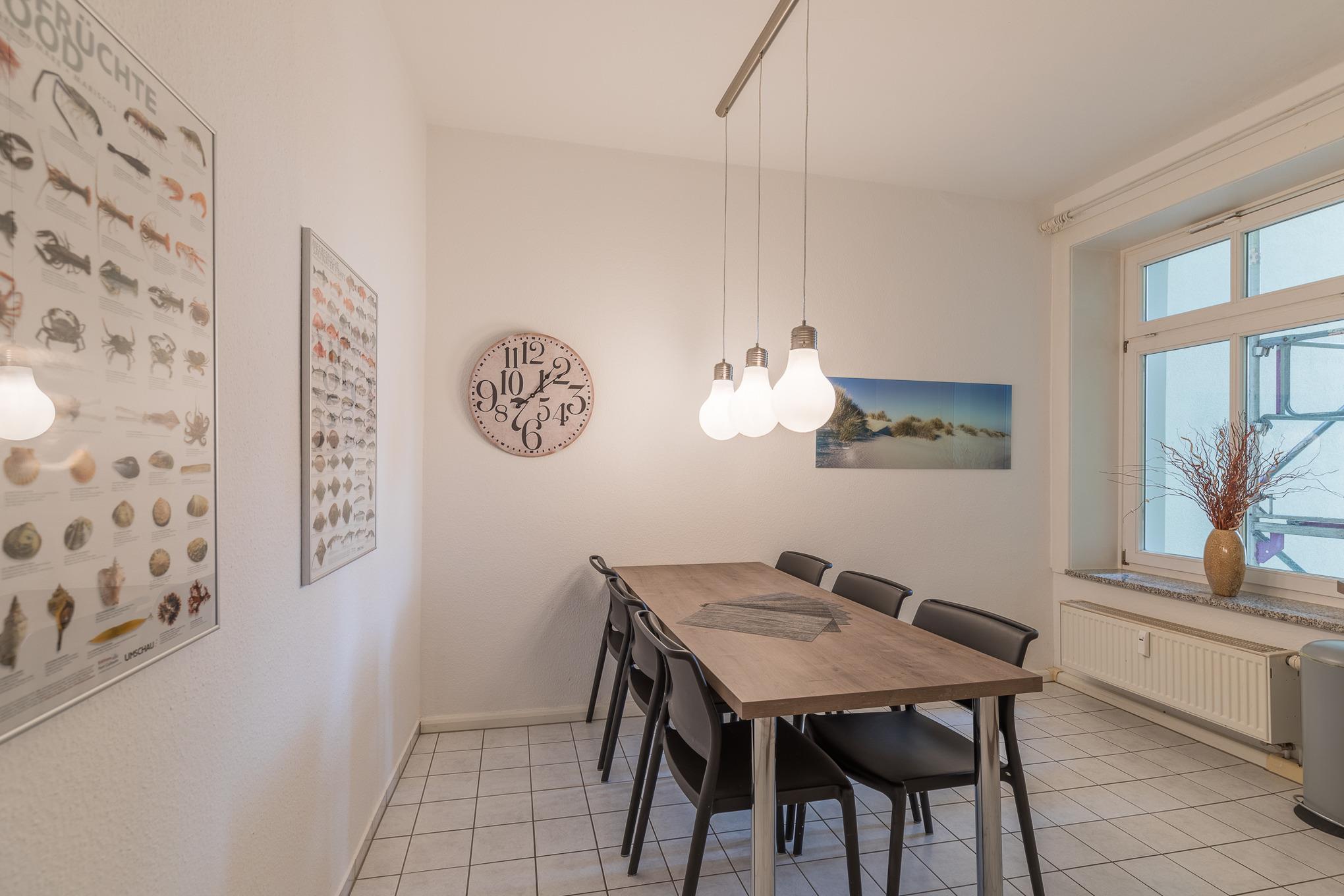 Die modern eingerichtete 3-Raum Wohnung (mit Teilseesicht und kleinem Balkon) mit einer Größe von ca. 80 m² Wohnfläche ist komplett bis zu 4 Personen ausgestattet. 1 Wohnzimmer[nbsp][nbsp]mit Essplatz, gemütlichem Sofa, TV, Stereoanlage und Zugang zum kleinen Balkon zur Seeseite, 1 Schlafzimmer mit Doppelbett und TV, 1 Schlafzimmer mit 2 Einzelbetten, separate große Küche (Cerankochfeld, Backofen, Mikrowelle, Kaffeemaschine und Wasserkocher) mit Essplatz, 1 Bad mit Badewanne und WC, Nichtraucherwohnung, keine Haustiere, PKW-Stellplatz direkt am Haus.