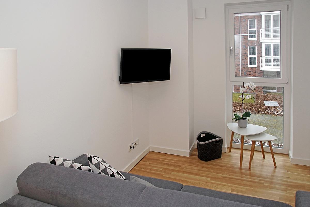 Die modern eingerichtete Wohnung mit einer Größe von ca. 68 m² Wohnfläche ist komplett bis zu 4 Personen ausgestattet. 1 Schlafzimmer mit Doppelbett, Schrank, TV, 1 Schlafzimmer mit Schlafsofa und Zugang zur verglasten Loggia (die komplett geöffnet werden kann) und TV, Wohnzimmer mit kompletter Einbauküche (Backofen, Cerankochfeld, Geschirrspüler, Toaster, Kaffeemaschine, Wasserkocher), Essplatz, Sofa-Ecke und direktem Zugang zur verglasten Loggia (die Fensterelemente in der Loggia können komplett geöffnet werden) , 1xDusche mit WC, Waschmaschine, Nichtraucherwohnung, keine Haustiere, PKW-Stellplatz direkt am Haus.