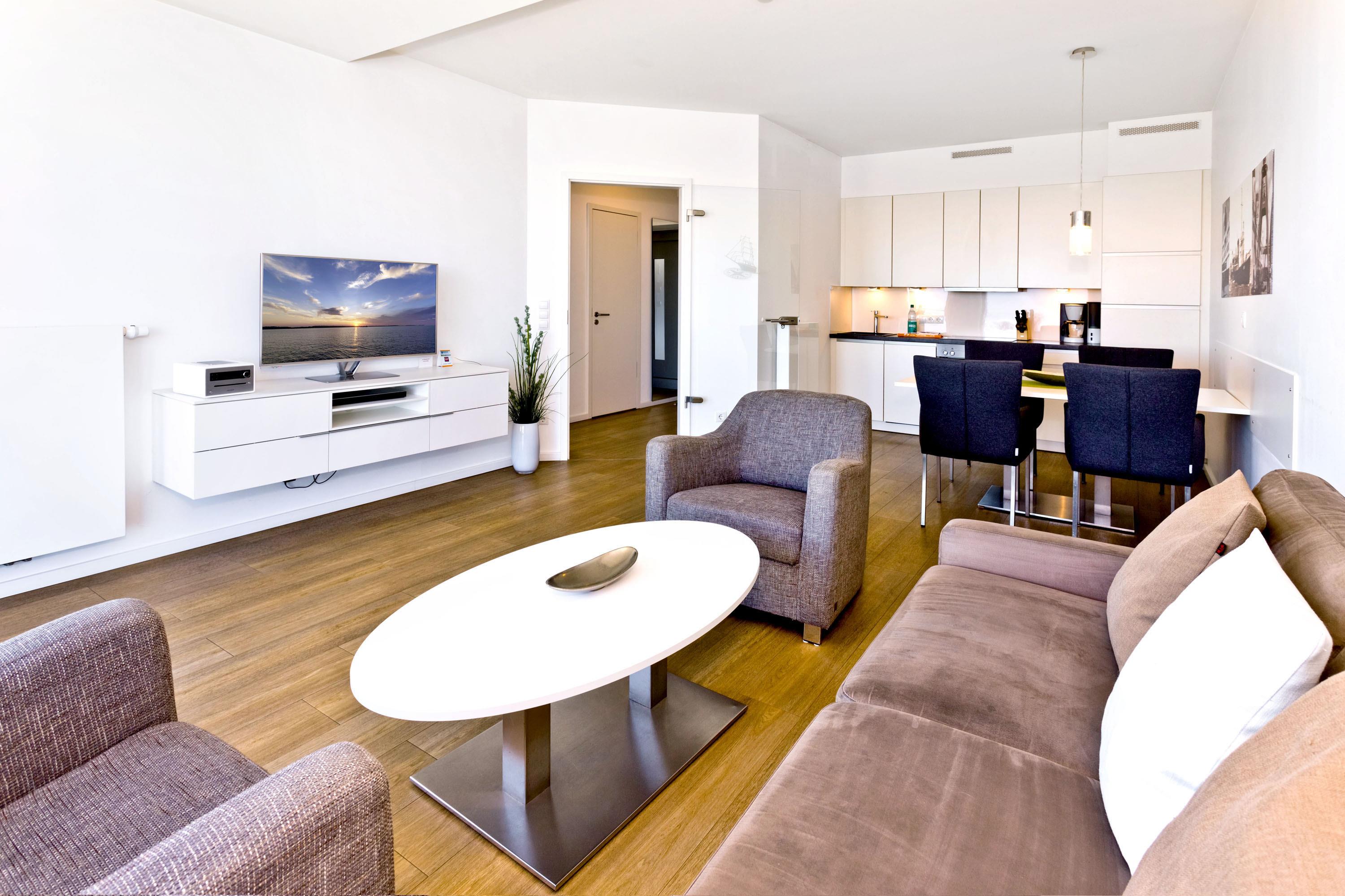 Tolle Seesicht-2-Raum-Wohnung in der 2.Etage mit großem Balkon zur Wasserseite. Die vollständige Küchenzeile mit Mikro, Back., Geschirrsp. etc. garantiert höchsten Komfort. 3D-SAT-TV, Blue-Ray-DVD, CD-Kompaktanlage, kostenloses W-Lan-Internet, separates Schlafzimmer mit hochwertigem Doppelbett u. Außenjalousie, allergikerfreundlich, ebenerdige Dusche/WC, Föhn, freie Saunanutzung, Tiefgaragenstellplatz, keine Haustiere und natürlich Nichtraucher.