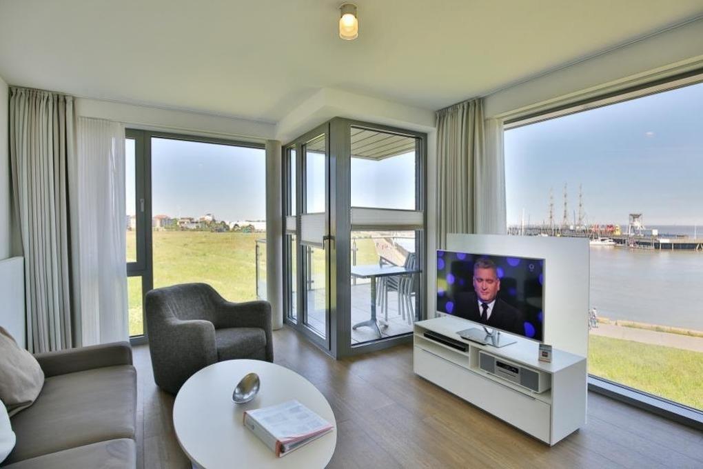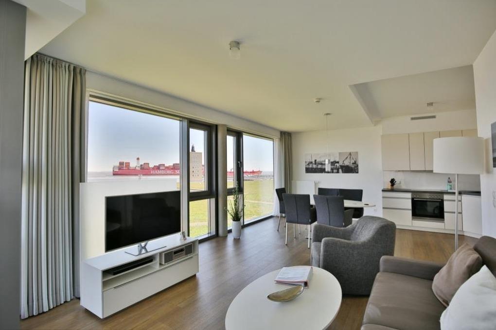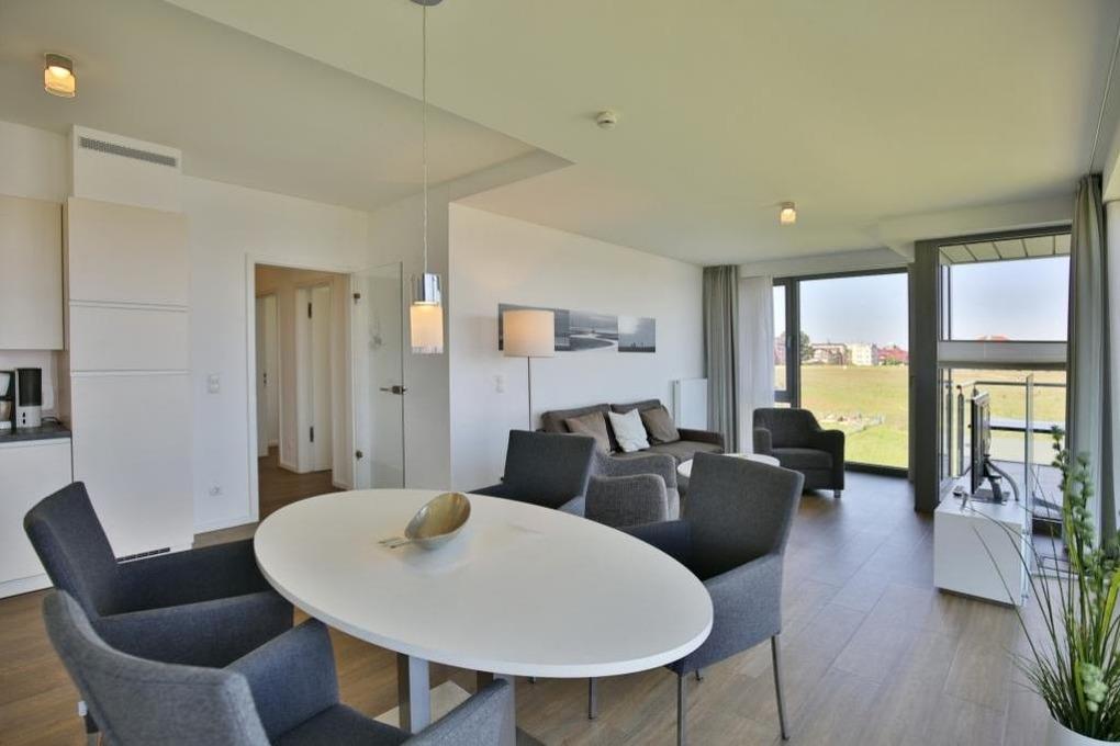 Luxus Seesicht-3-Raum-Wohnung in der 2.Etage mit großem Balkon zur Wasserseite (nord/west). Die vollständige Küchenzeile mit Mikrow., Back., Geschirrsp. etc. garantiert höchsten Komfort. 2x SAT-TV, Blue-Ray-DVD, CD-Kompaktanlage, kostenloses W-Lan, 2 separate Schlafzimmer mit hochwertigen Doppelbetten (alle mit Außenjalousien), allergikerfreundlich, ebenerdige Dusche/WC, Föhn, freie Saunanutzung, breiter Tiefgaragenstellplatz, keine Haustiere und natürlich Nichtraucher.