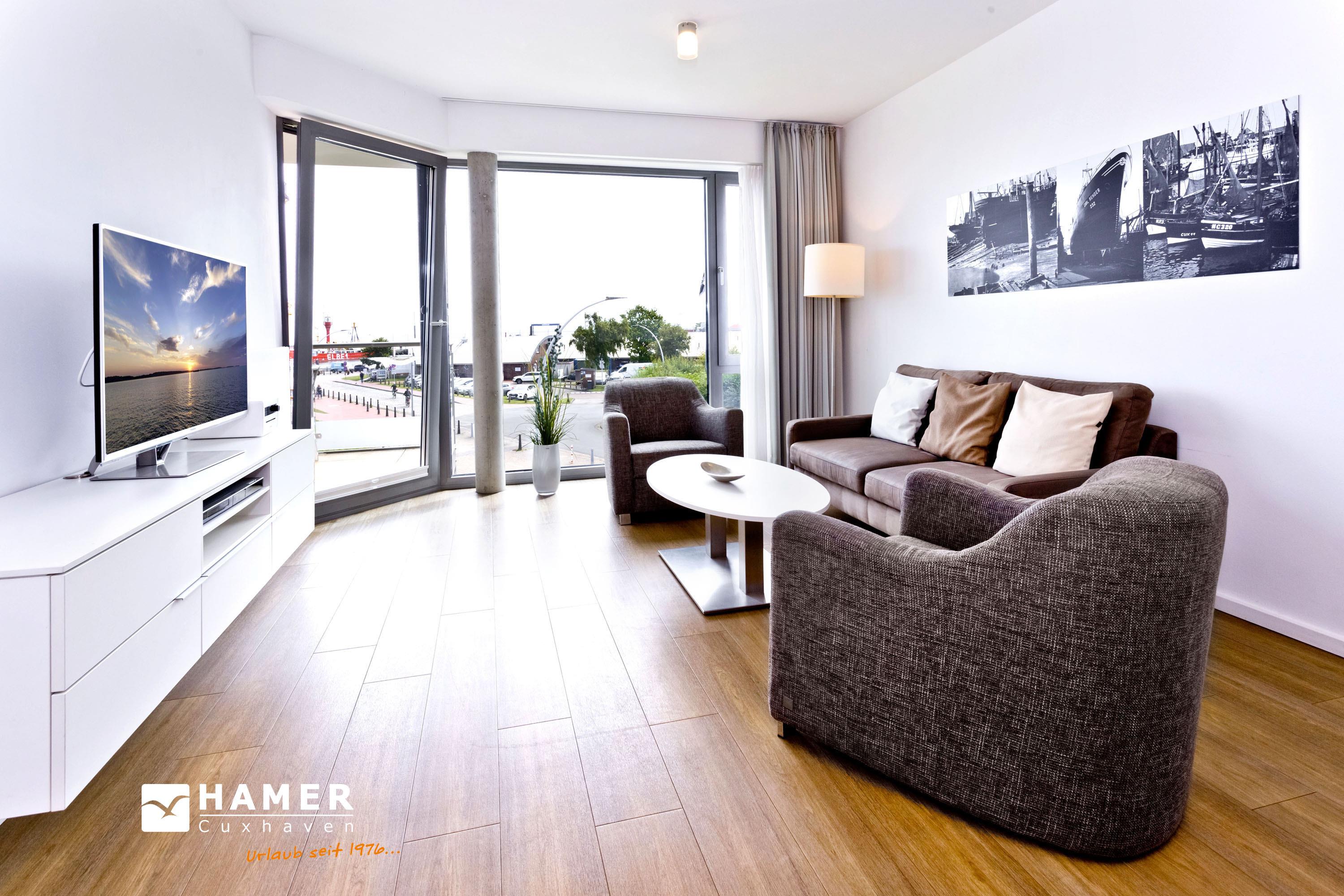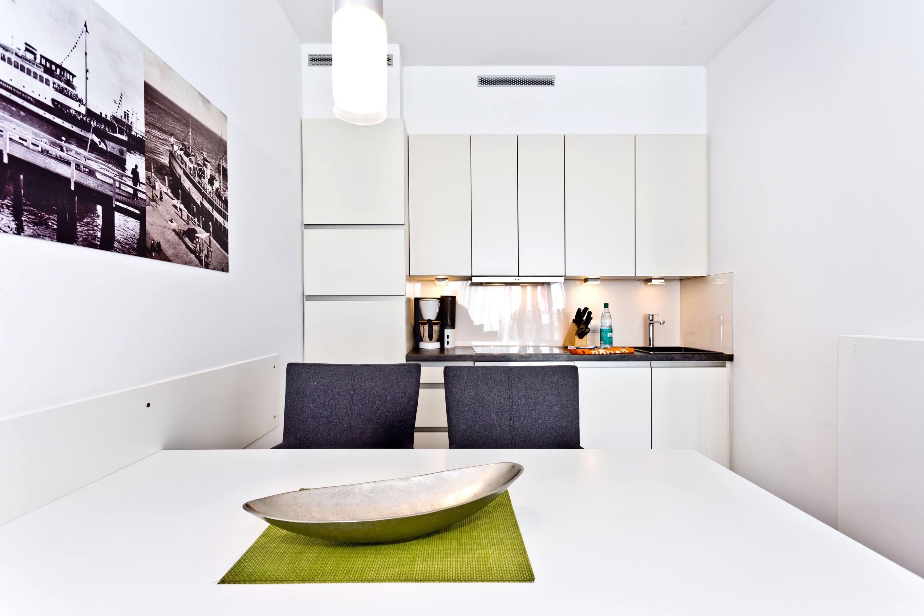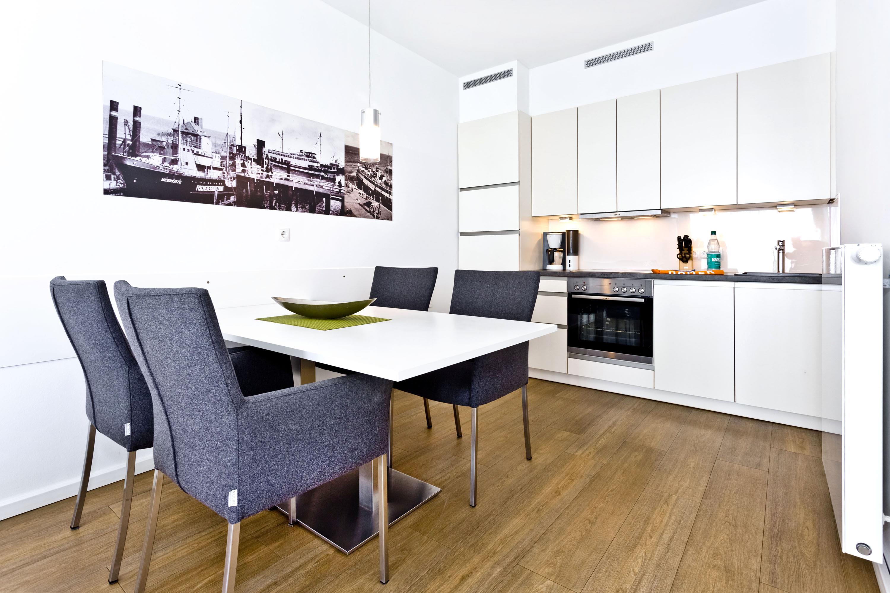 Blick auf die "Alte Liebe"! Schöne 2-Raum-Wohnung in der 2.Etage mit großem Balkon (ost). Die vollständige Küchenzeile mit Mikro, Back., Geschirrsp. etc. garantiert höchsten Komfort. 3D-SAT-TV, Blue-Ray-DVD, Kompaktanlage, kostenloses W-Lan-Internet, separates Schlafzimmer mit Außenjalousien und hochwertigem Doppelbett, allergikerfreundlich, ebenerdige Dusche/WC, Föhn, freie Saunanutzung, breiter Tiefgaragenstellplatz, keine Haustiere und natürlich Nichtraucher.