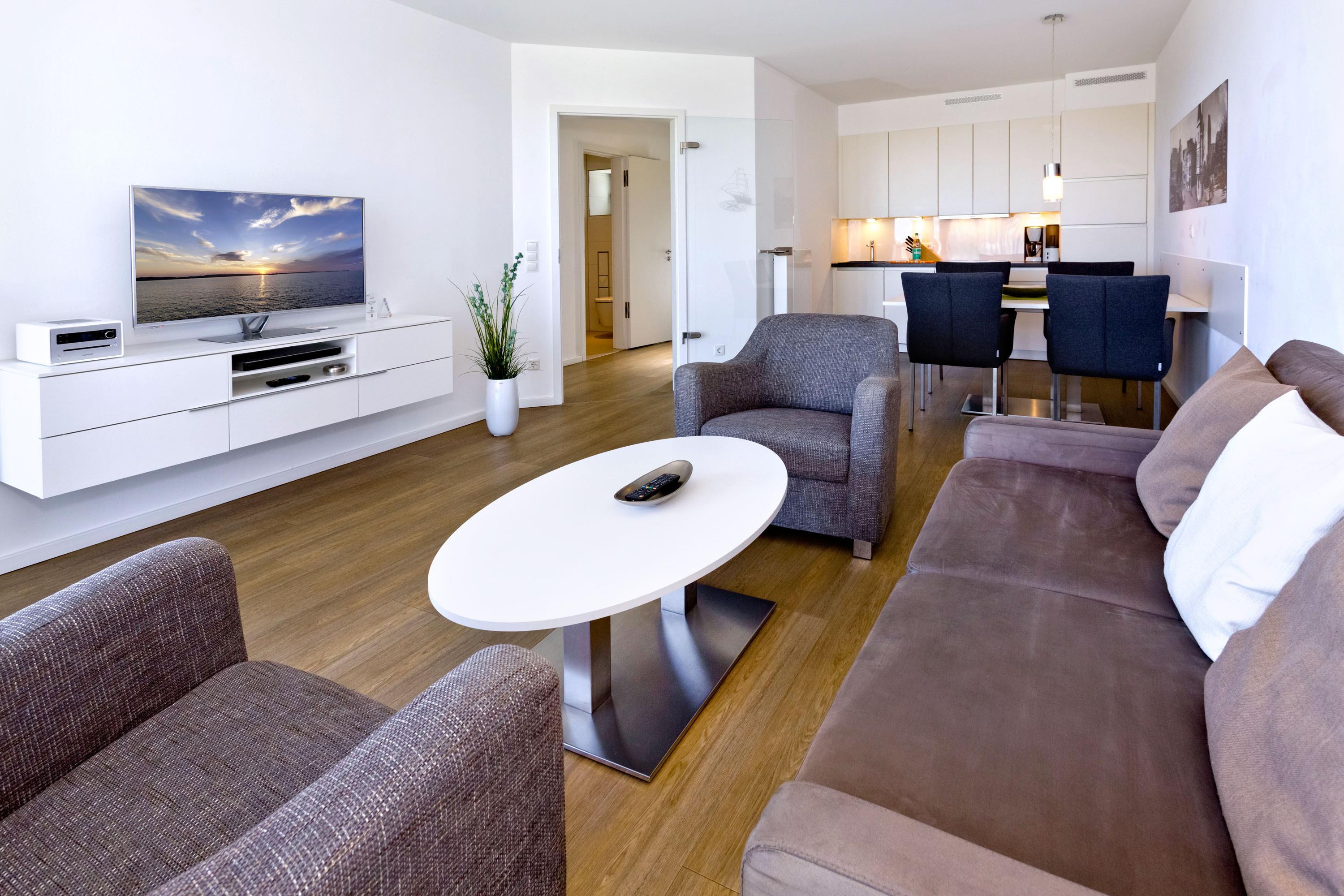 Seesicht pur! Schöne 2-Raum-Wohnung in der 3.Etage mit großem Balkon (west). Die vollständige Küchenzeile mit Mikro, Back., Geschirrsp. etc. garantiert höchsten Komfort. 3D-SAT-TV, Blue-Ray-DVD, Kompaktanlage, kostenloses W-Lan, separates Schlafzimmer mit hochwertigem Doppelbett, allergikerfreundlich, ebenerdige Dusche/WC, Föhn, Tiefgaragenstellplatz, keine Haustiere und natürlich Nichtraucher.