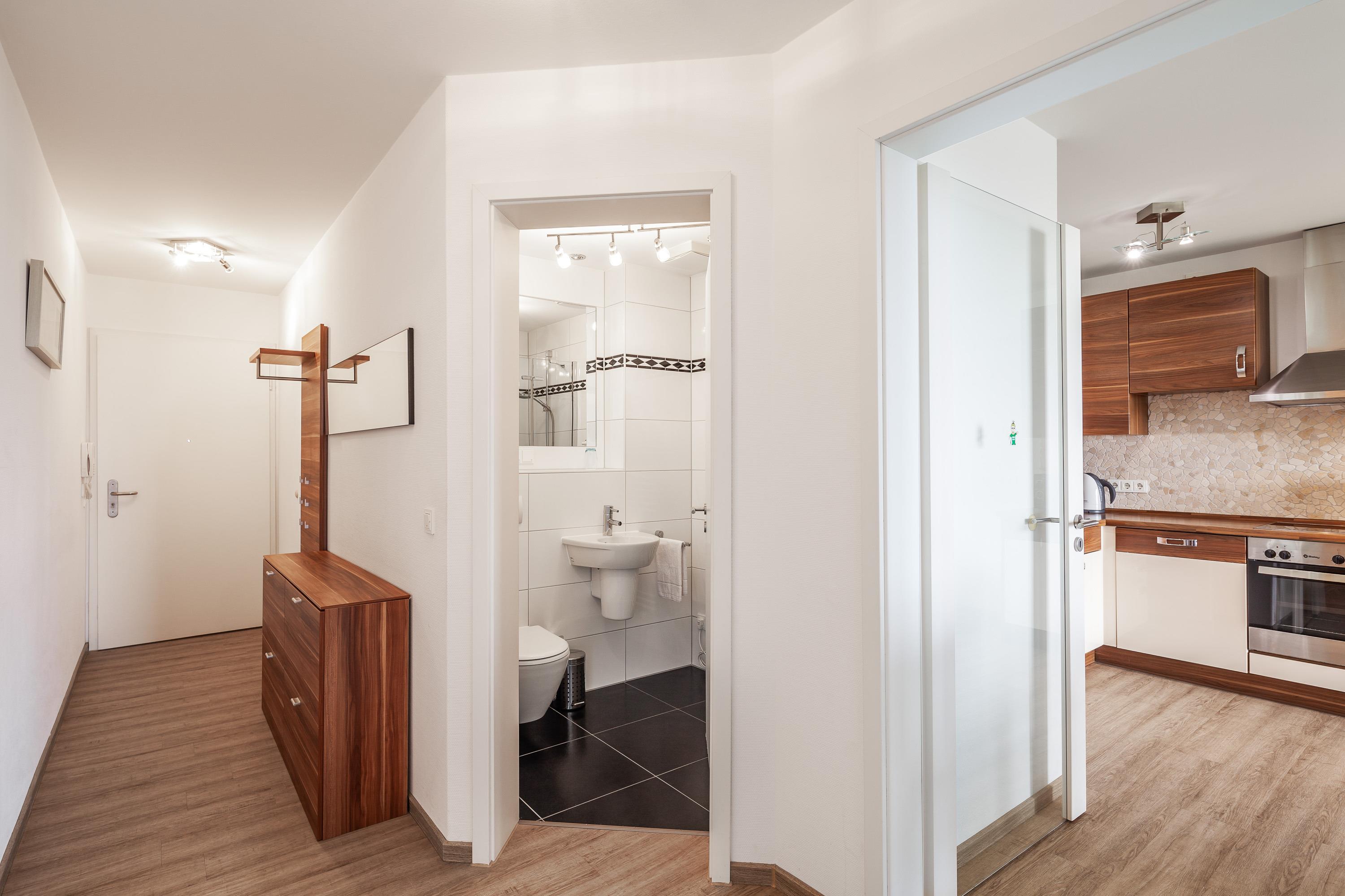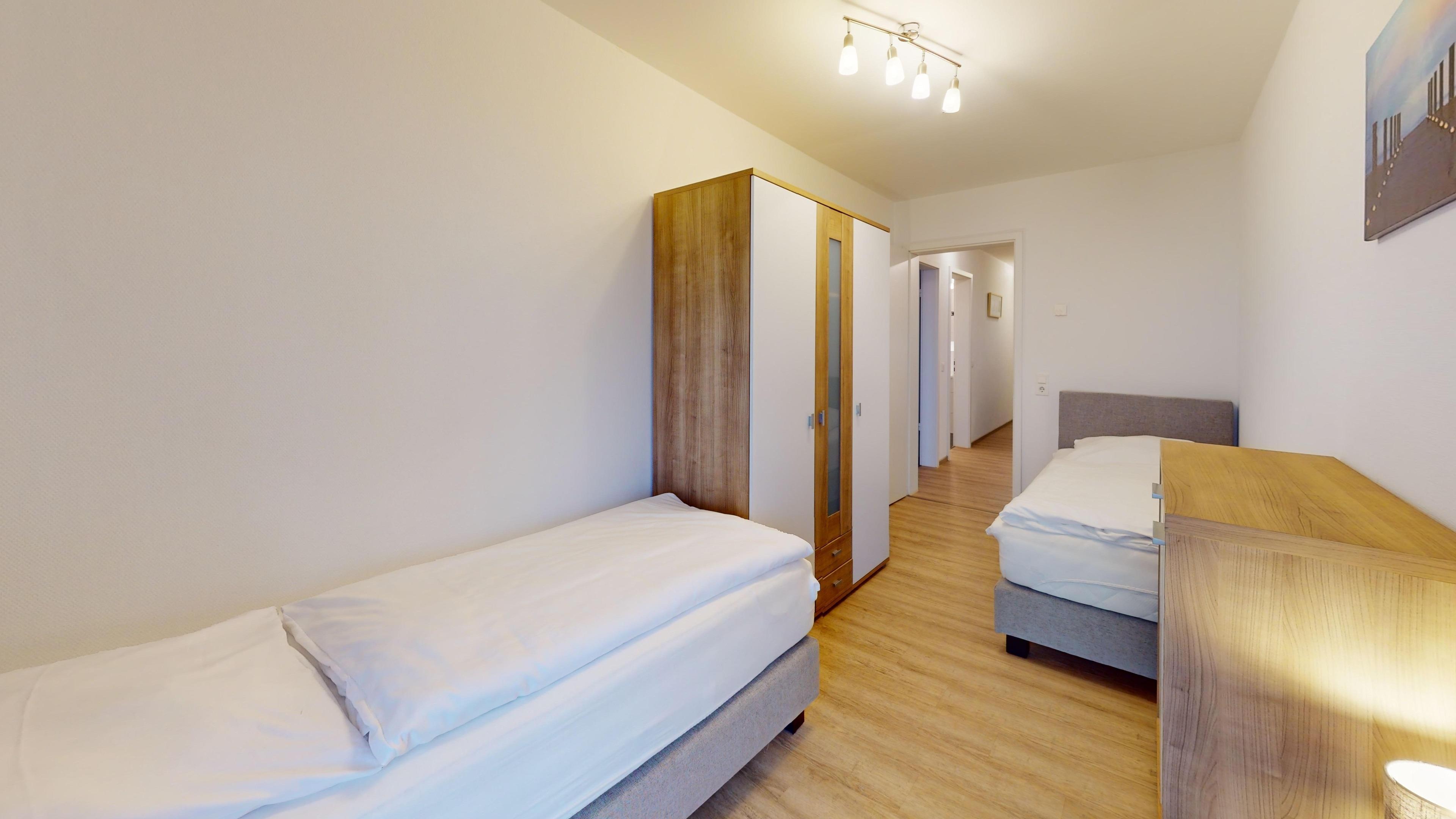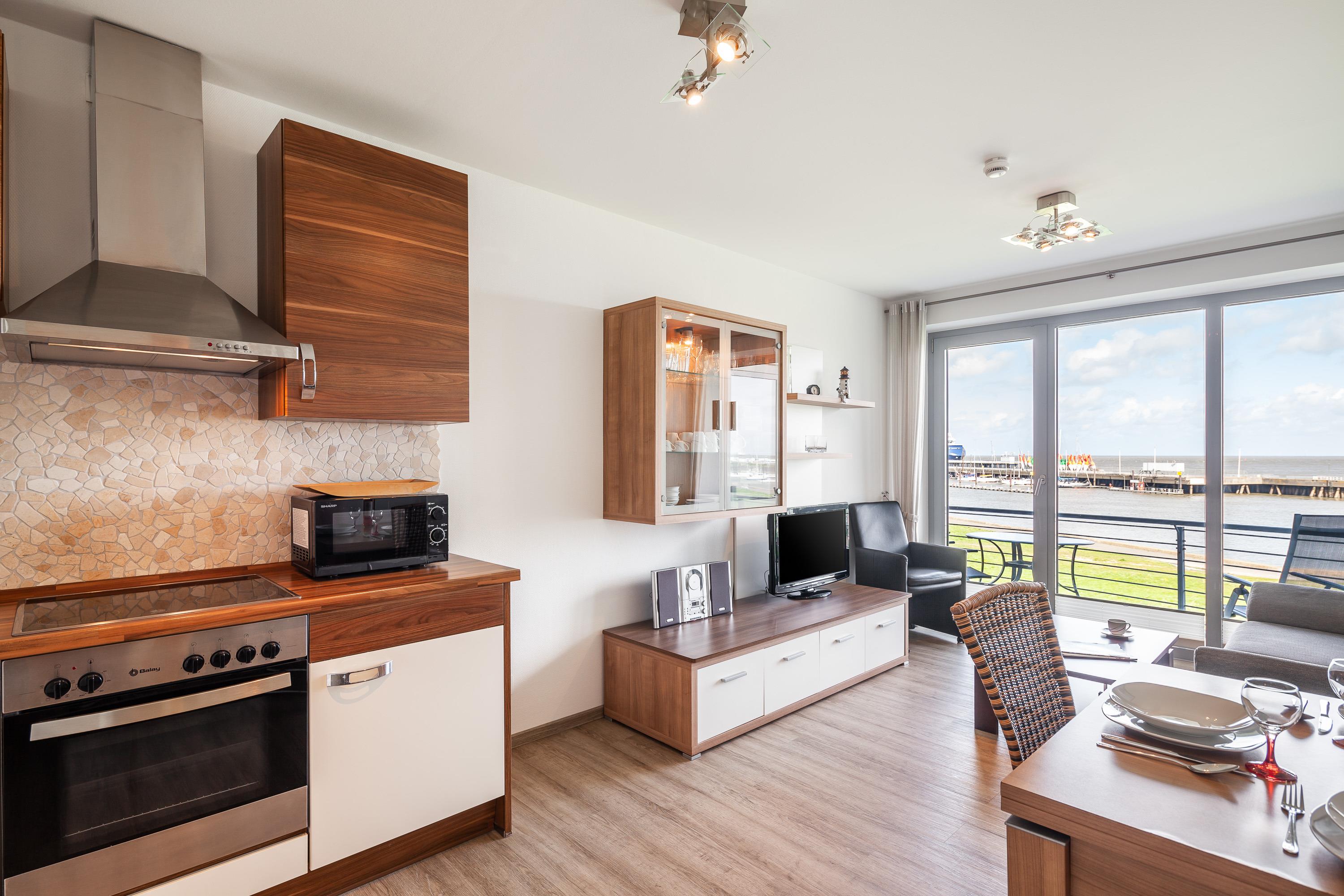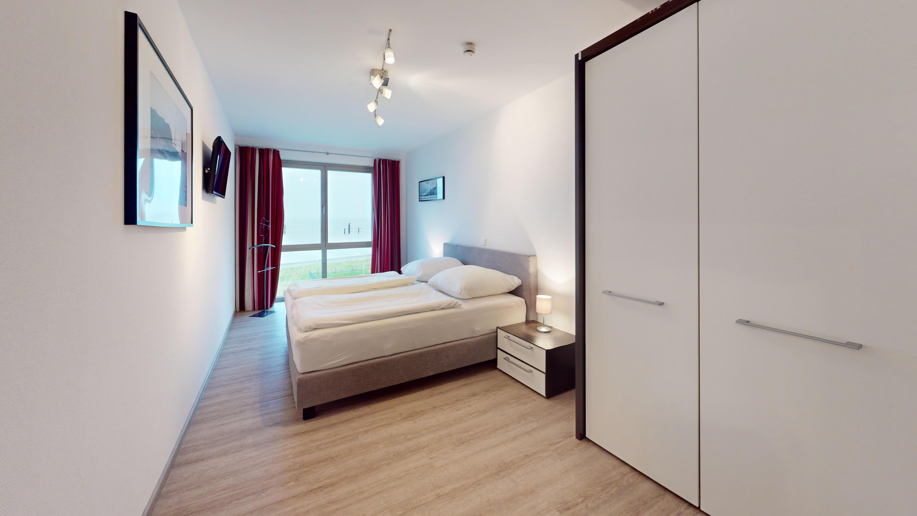Sehr geschmackvolle 3 Zi.-Wohnung in der 1.Etage über 75m². Traumhafter Seeblick auf den Weltschifffahrtsweg, 1 Schlafzimmer mit Doppelbett (Boxspringbett), 1 Schlafzimmer mit 2 Einzelbetten (Boxspring), 1x Badewanne/WC und 1x Dusche/WC, Wohnzimmer mit komplett ausgestatteter Küchenzeile, schöner Balkon zur Wasserseite. Reservierter Pkw-Stellplatz in der Tiefgarage, Nichtraucher, keine Haustiere erlaubt.