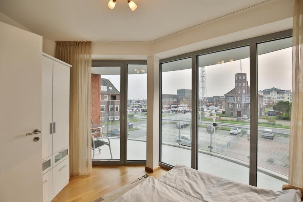 Großzügige 102m² Wohnung in der 1.Etage. Hier haben Sie die Traumseesicht auf den Weltschifffahrtsweg und die Hafenanlagen. 1 Schlafzimmer mit Doppelbett und TV, 1 Schlafzimmer mit Schlafsofa, 1 Bad/Du/Wc und 1 Gäste-Wc, sehr großes Wohnzimmer mit komplett ausgestatteter Küchenzeile, TV u. BlueRay DVD, Radio mit Dockingstation, 2 große, windgeschützte Balkone (nord+süd). Alle Räume sind mit Parkett gestaltet und verfügen über Rollläden. Zur Wohnung gehört ein reservierter Pkw-Stellplatz in der Tiefgarage. Keine Haustiere. Nichtraucher.