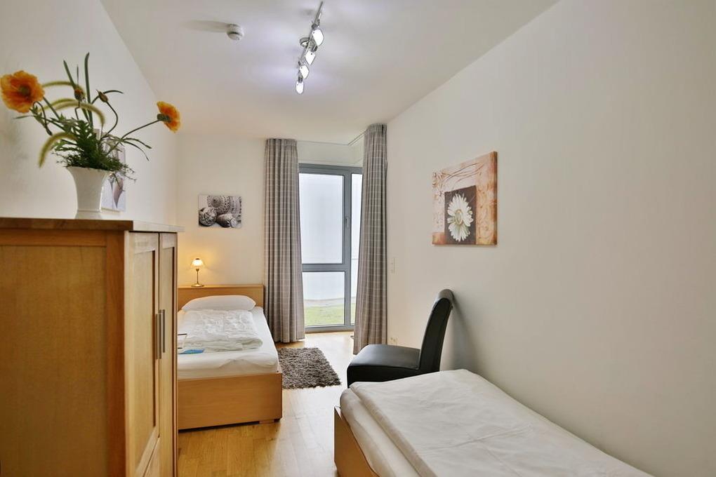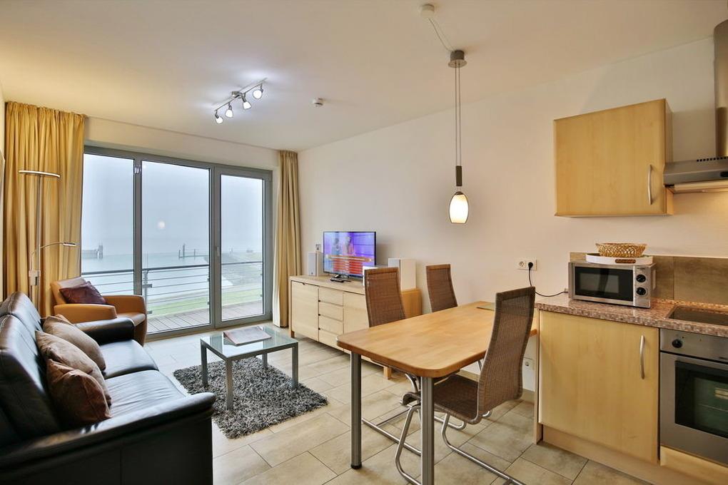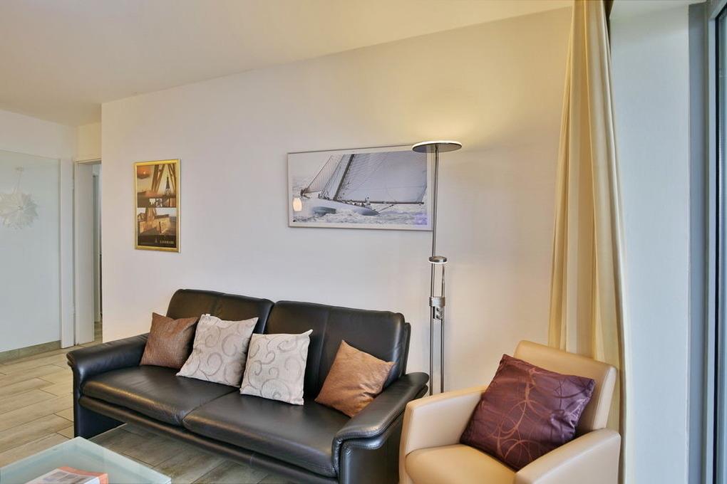 Schöne 3 Zi.-Wohnung in der 2.Etage über 75m². Traumhafter Seeblick auf den Weltschifffahrtsweg, 1 Schlafzimmer mit Boxspringdoppelbett, 1 Schlafzimmer mit zwei Einzelbetten, 1 Bad/Wc und 1 Du/Wc, Föhn, Wohnzimmer mit komplett ausgestatteter Küchenzeile, 2x Kabel-TV, Stereoanlage, schöner Balkon zur Wasserseite mit Bankirai-Dielen. Alle Räume sind mit Fliesen und Parkett gestaltet. Reservierter Pkw-Stellplatz in der Tiefgarage. Nichtraucher, keine Haustiere erlaubt.